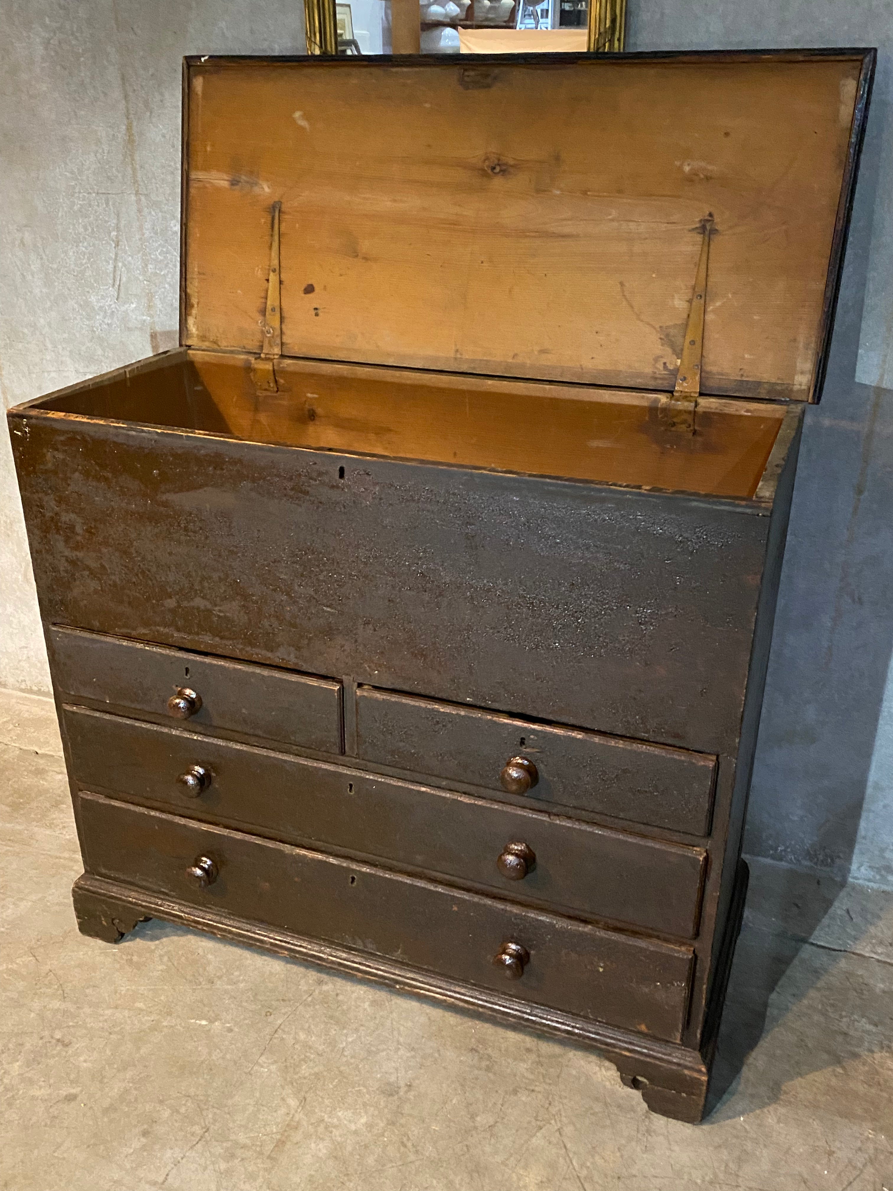 Typical Nova Scotia style this very well built , stylish piece is indicative of the FORM of hi-country formal furnishings found in the EAST COAST. This hits all the spots , overlapping drawers, forged hardware , beautiful bracket base, and incredible condition for a 200 year old Canadian. Piece.