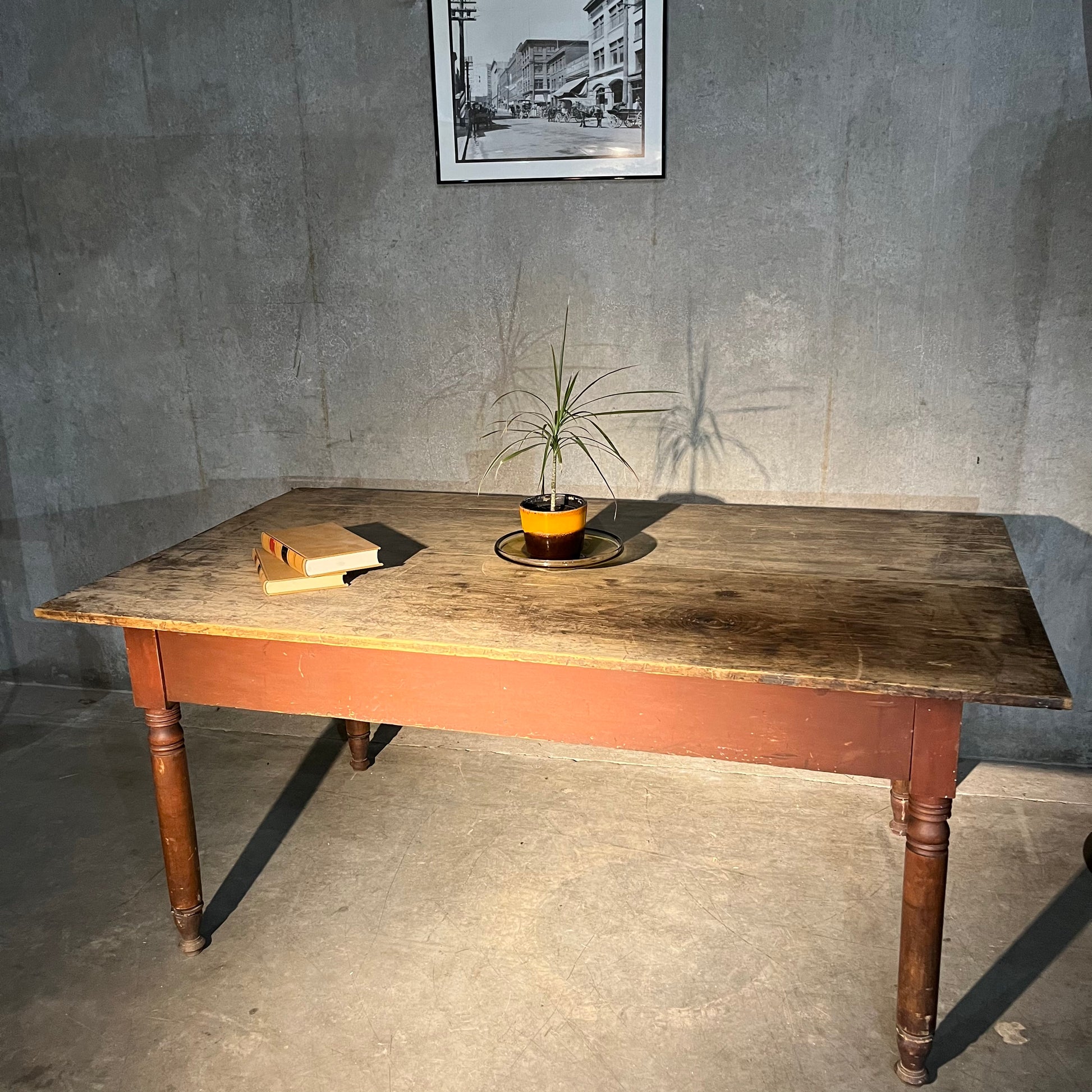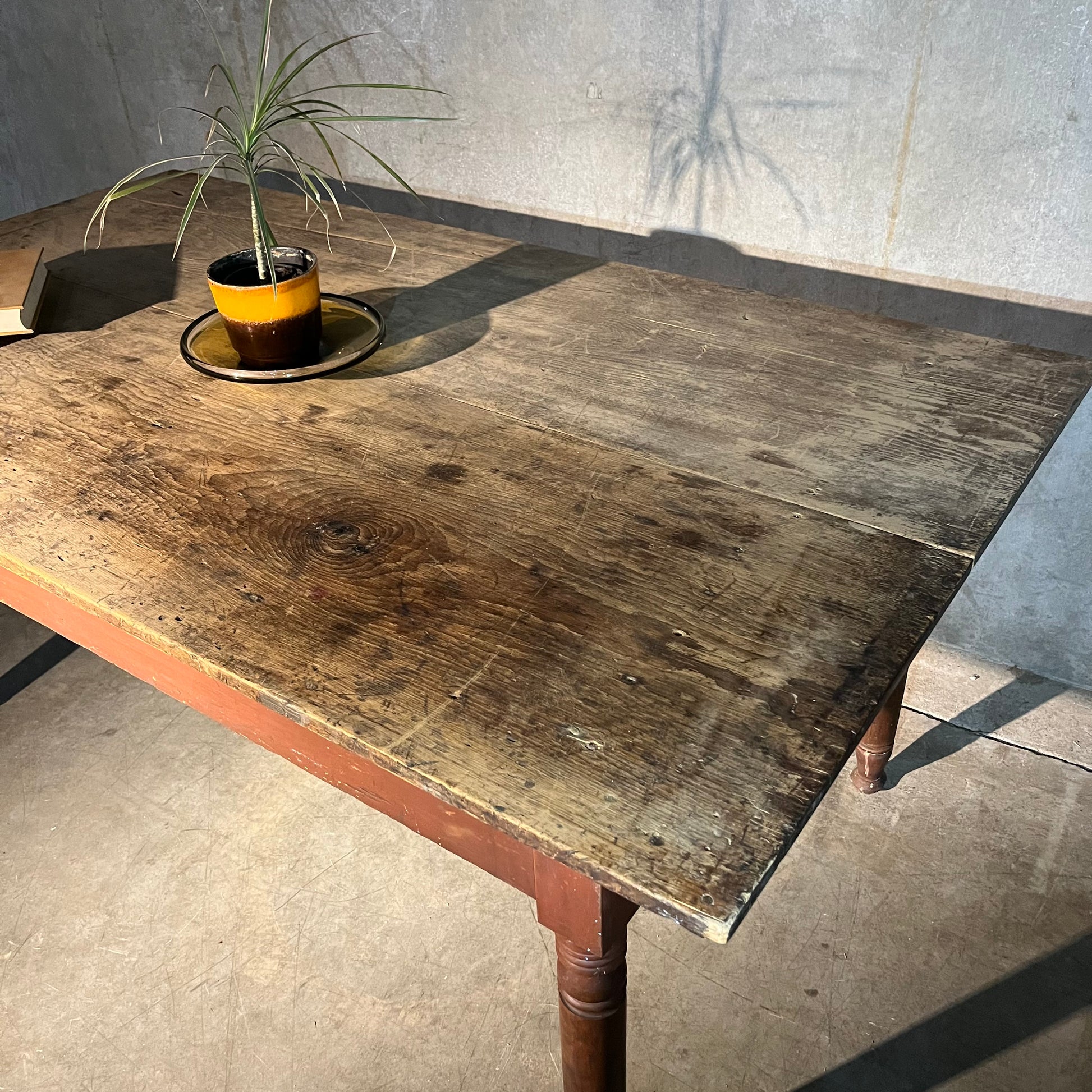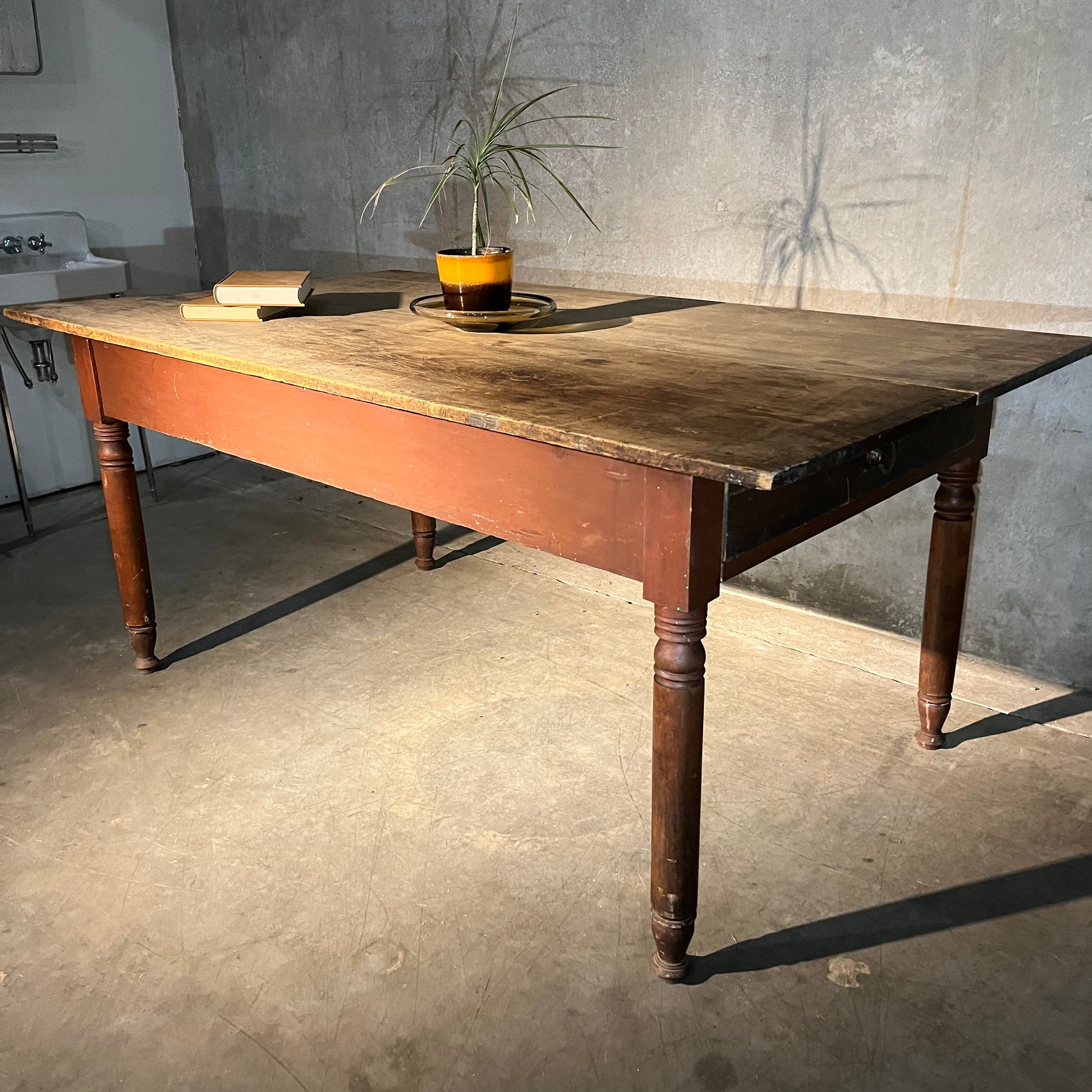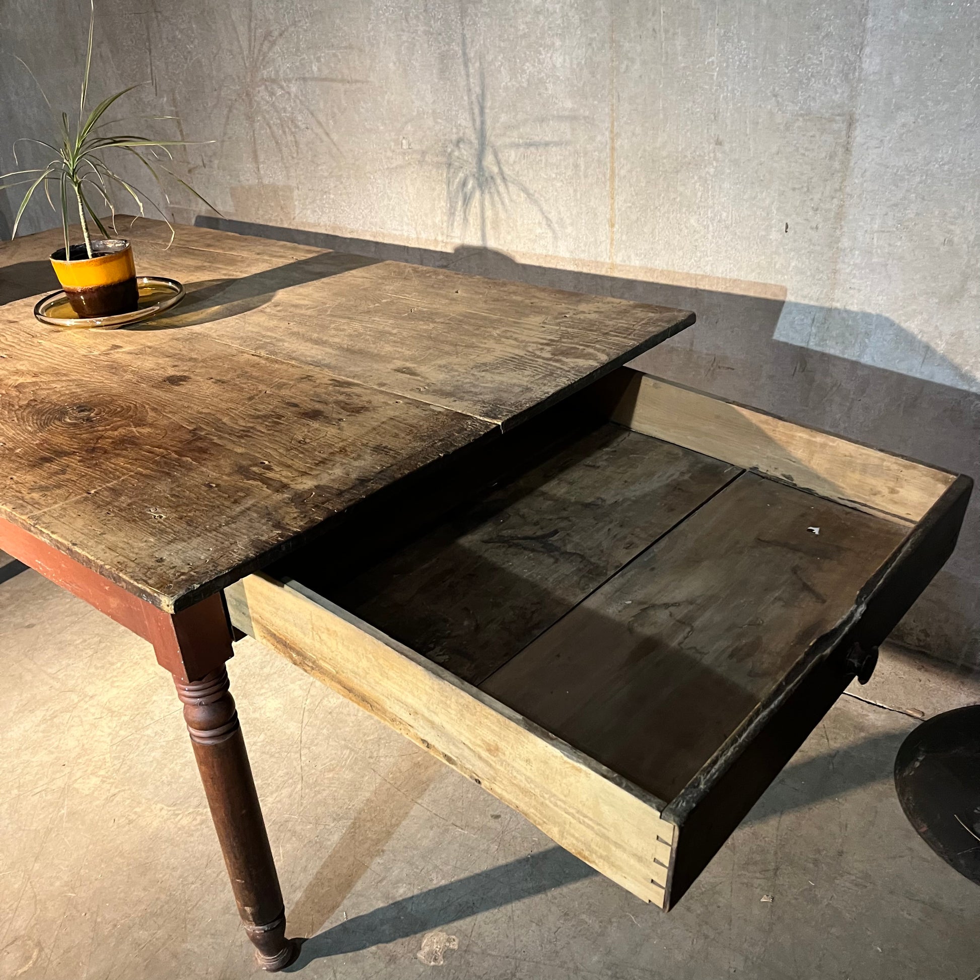 A very nice original table with rare two board pine top , two working drawers , all in original finish. A fine example of a true country antique. Found in the Russian river VALLEY.