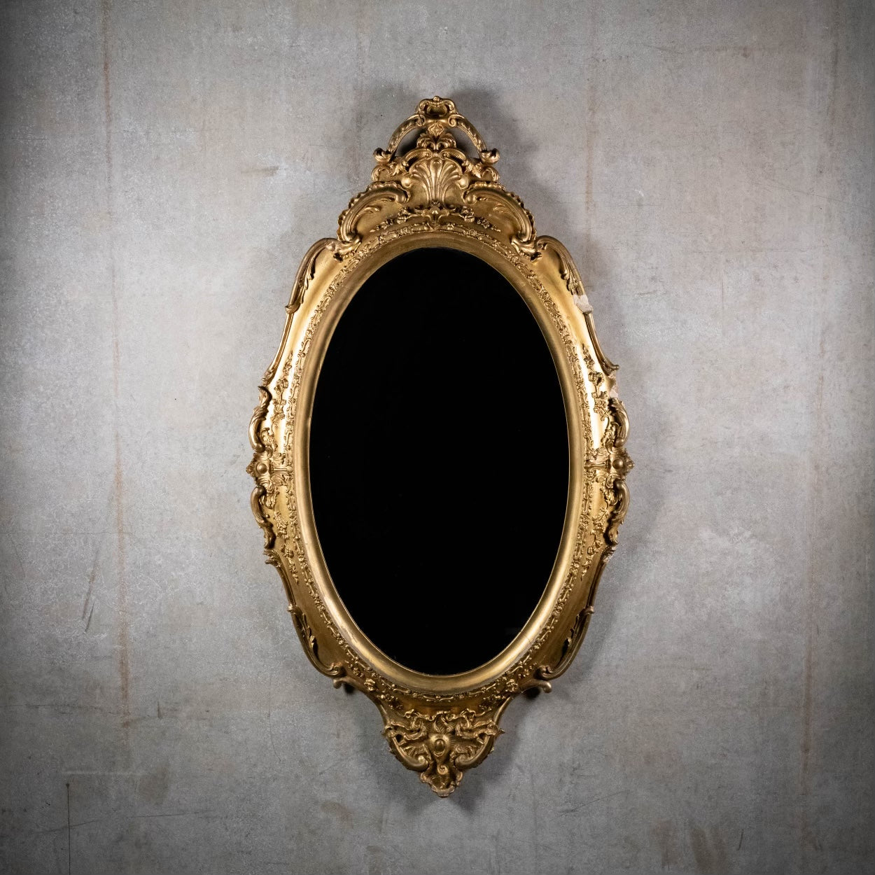 A very nice detailed mirror from a prominent collection in Montreal.. shows excellent condition nice gilded original surface , with a decent size . A rare form. .