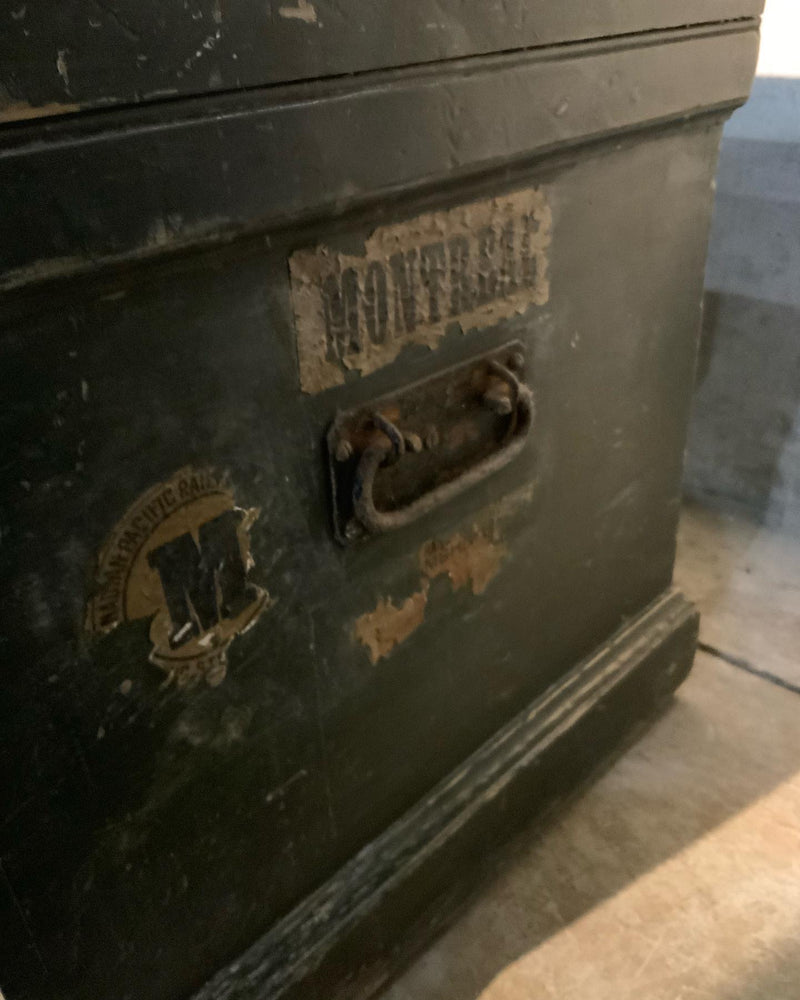 Greta 19th c box with strong original paint, showing great looking tags from MONTREAL & most likely cp rail west. Box is 100% original and most likely east coast, possibly USA.