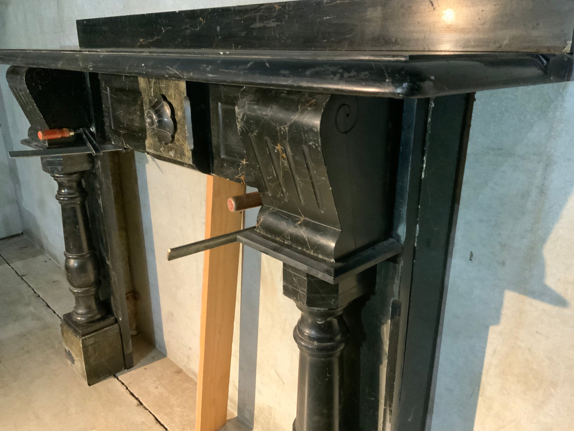 1880 slate EASTLAKE fireplace surround in faux black marble finish