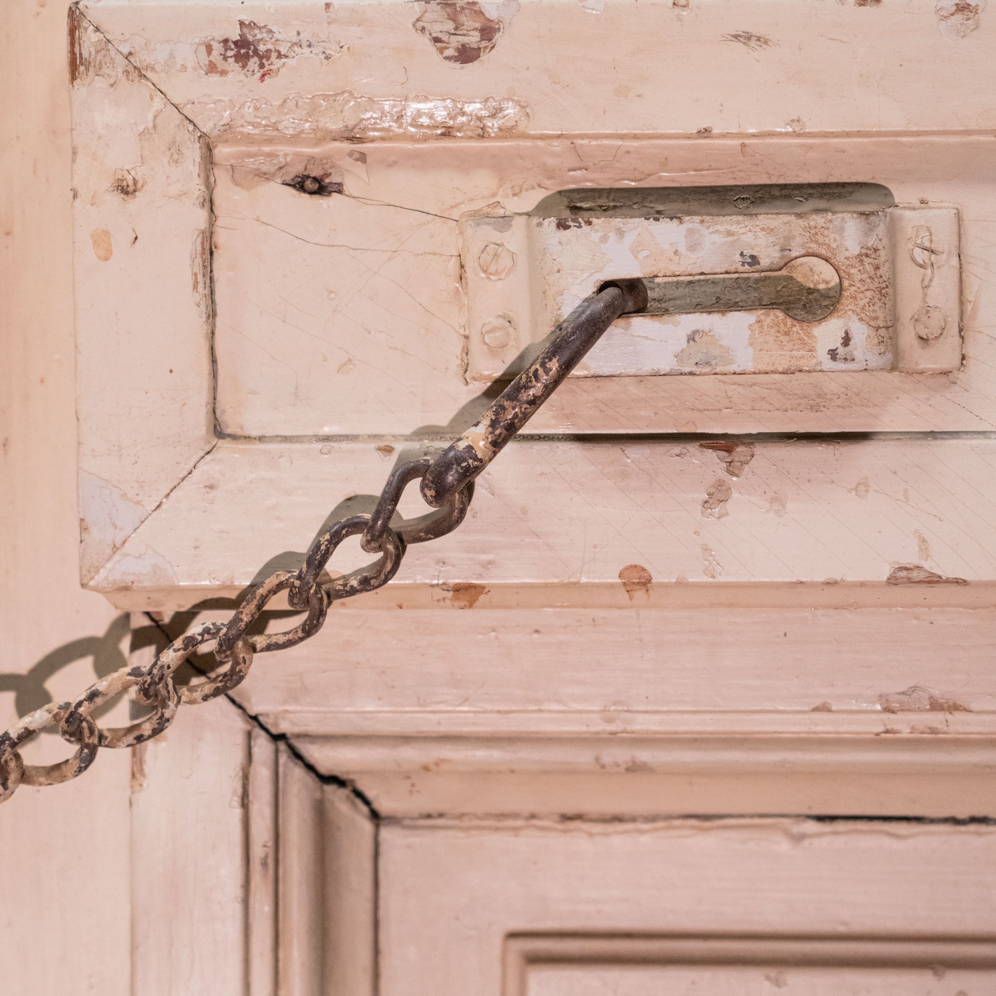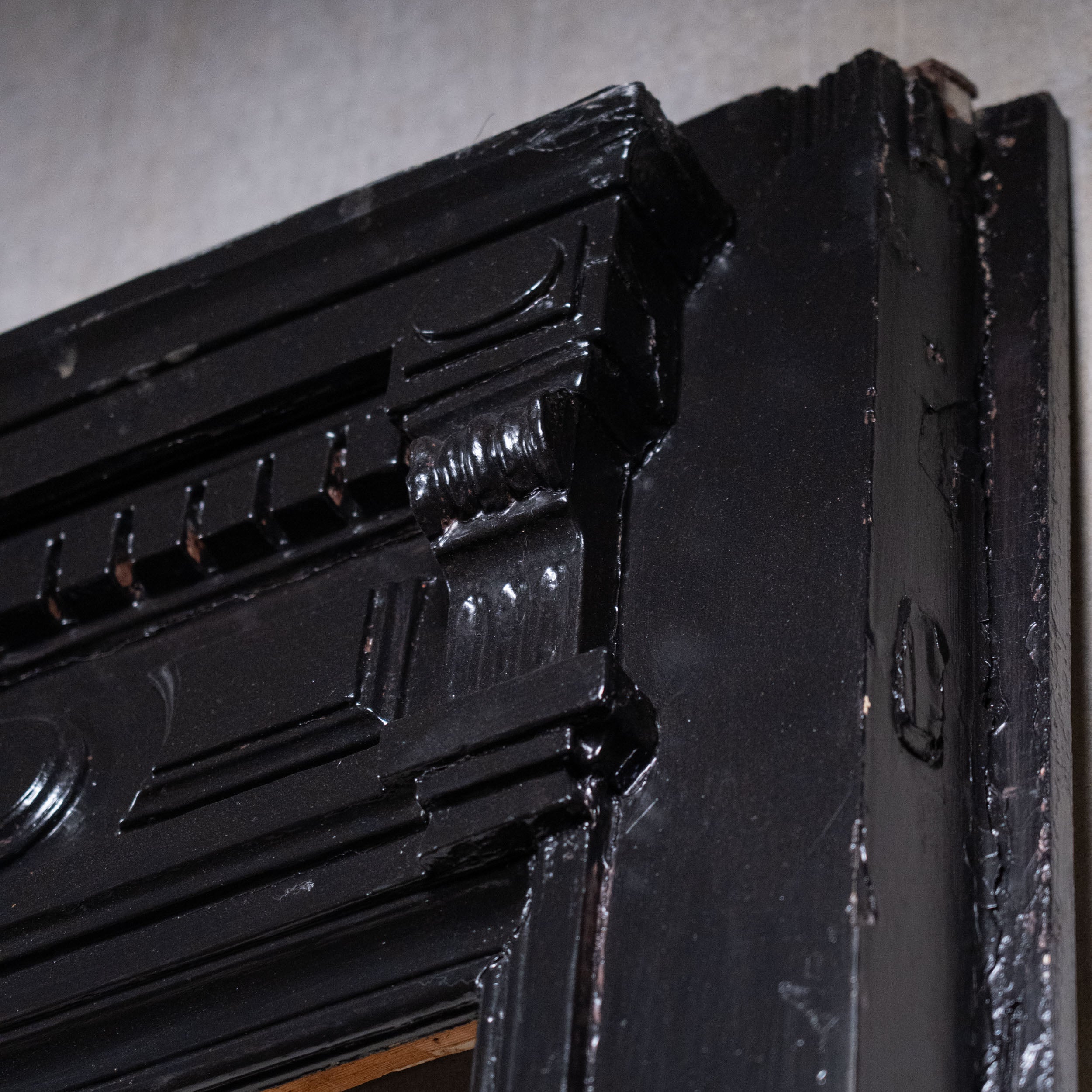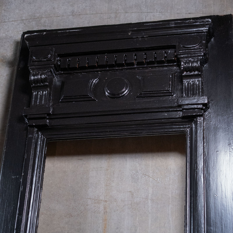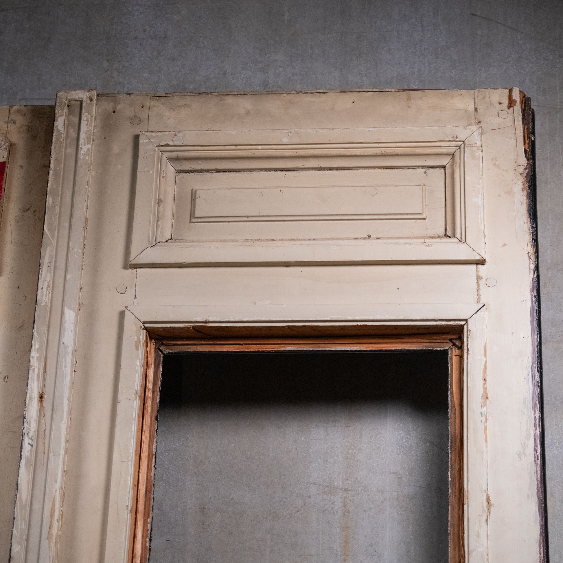 A matched pair of tall (10-foot high) doors salvaged from a commercial building in PNW. Dating from the 1880s, these solid wood doors retain their original paint. Nice hand-carved details in the wood; ready for your choice of glass.