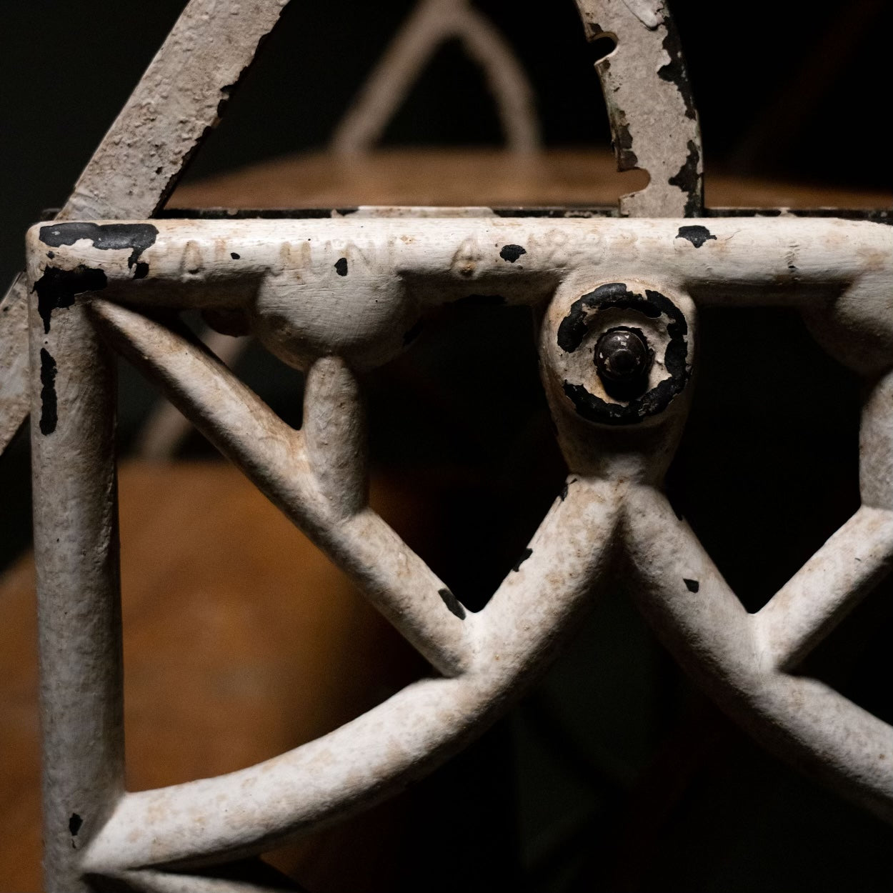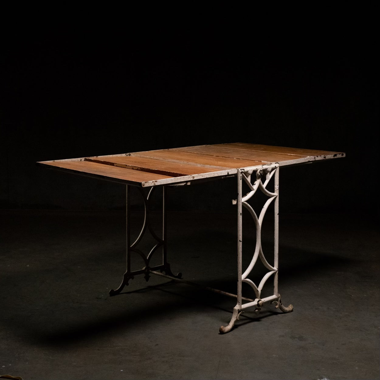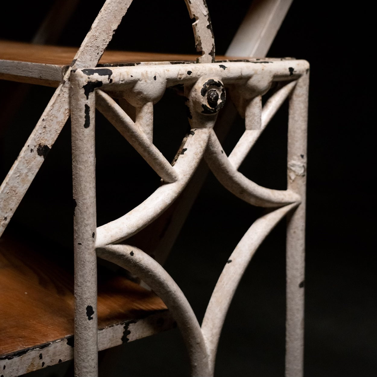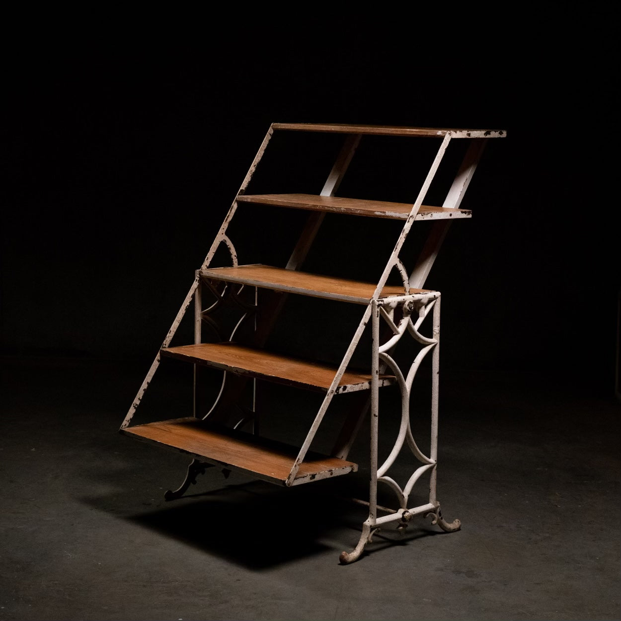 Antique folding shelf / table. Cast iron frame and oak shelves. Patented by Boeckh Brothers in Canada. This shelf / table were used to prepare and arrange the brushes and pigments.