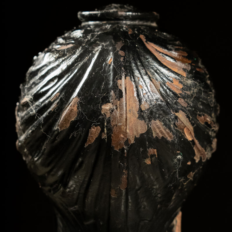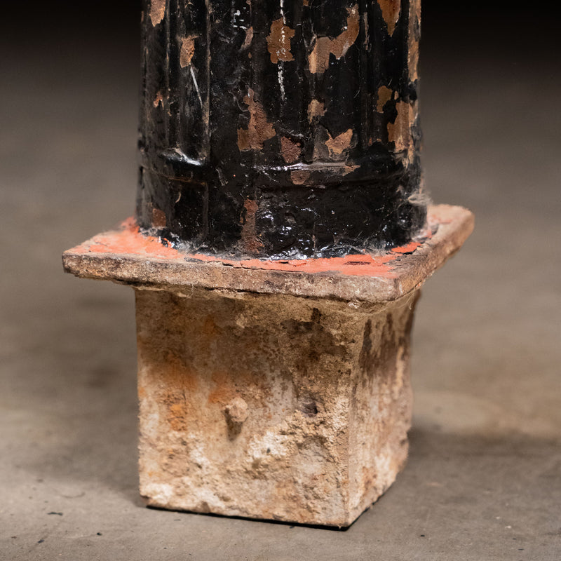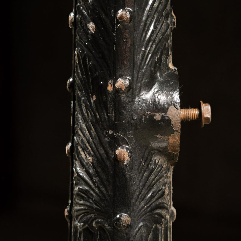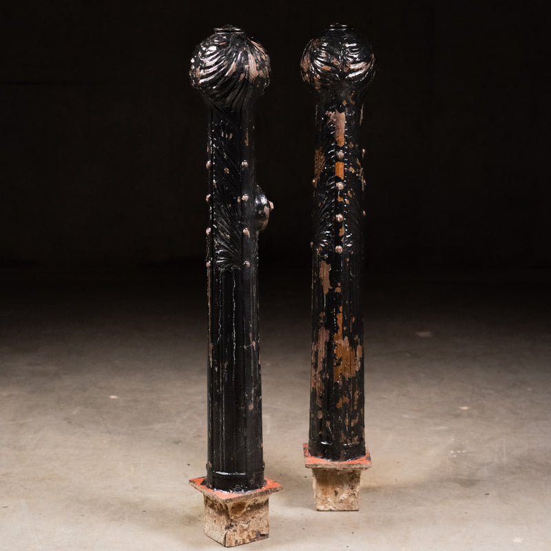 Found in Detroit, these are a very high quality set of newel post used at the bottom of a three step entry. We have the two iron panels. Sold as a set.