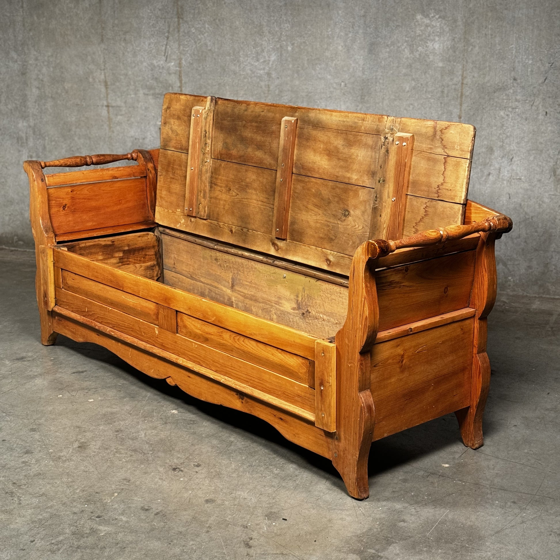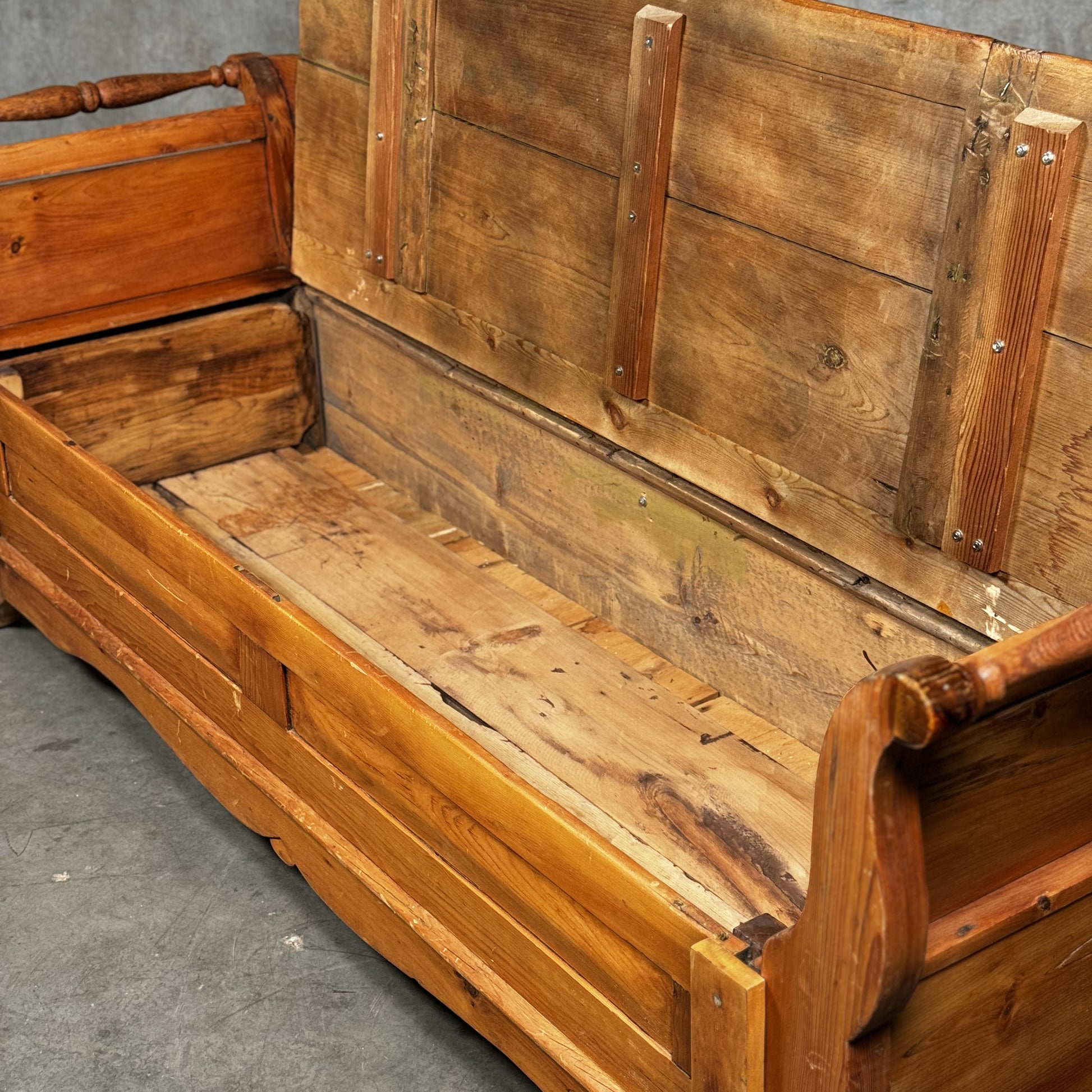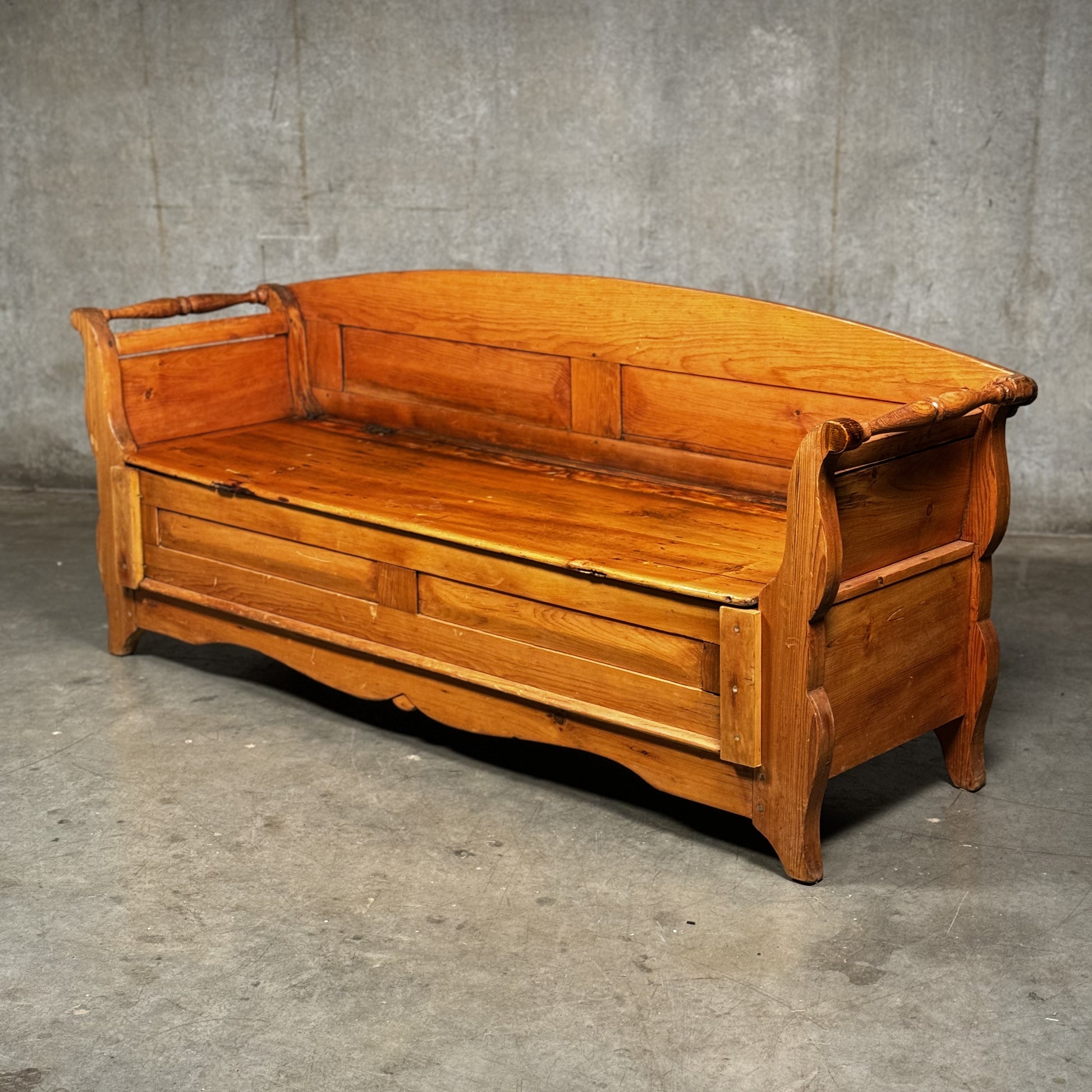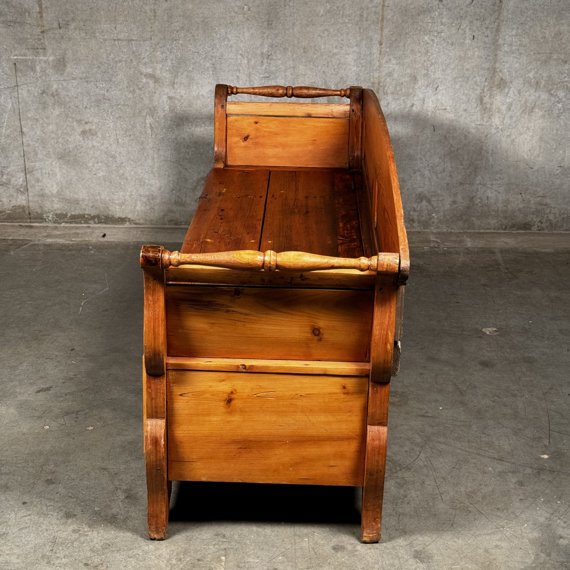 A staple in prairie furniture throughout Western Canada based on styles found in Europe, these were fabricated by talented settlers in The late 19th c early 20th. An ideal piece for your mud room, entrance way or commercial project.