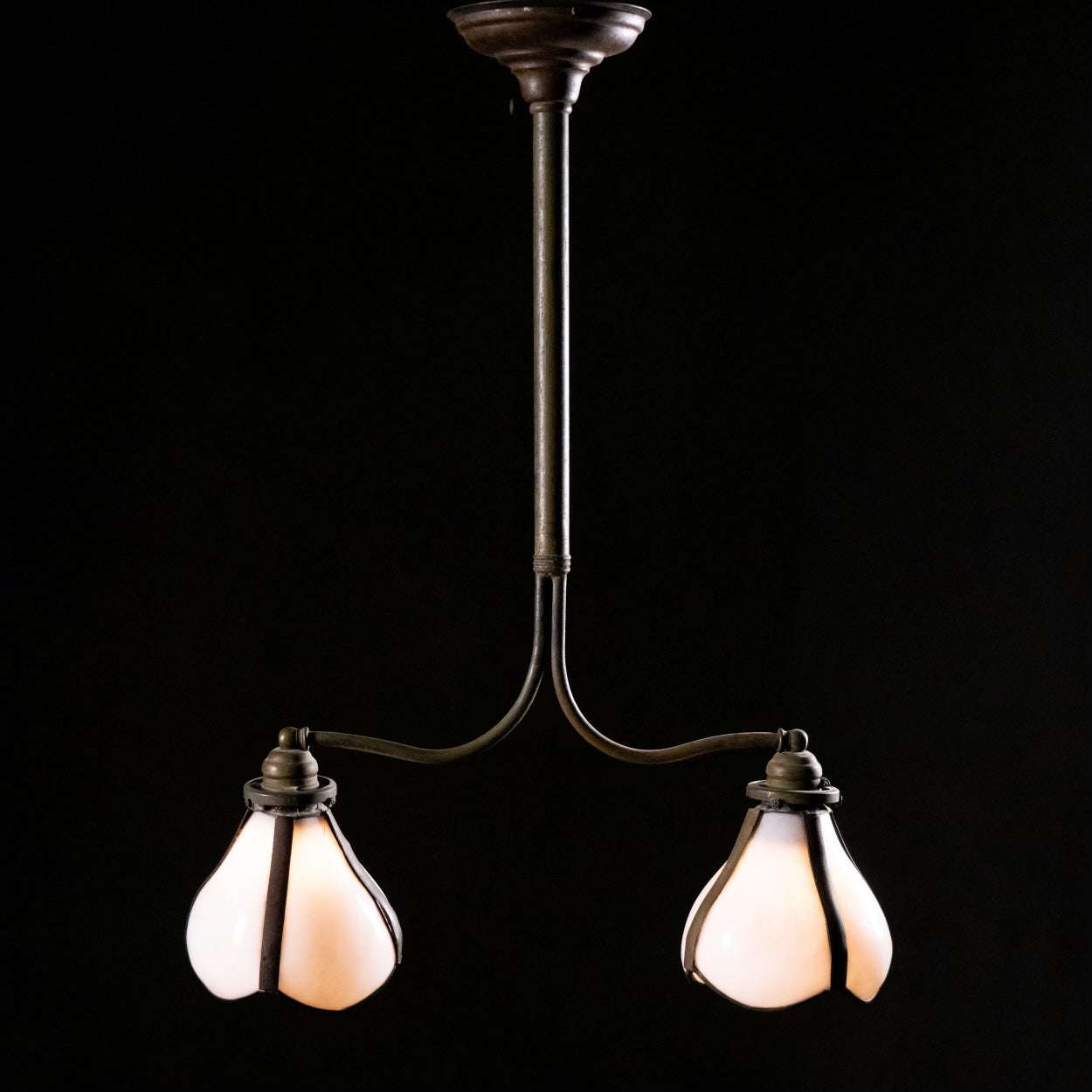 A beauty acquired from a private collection . This unusual two armed light is rewired and CSA approved .