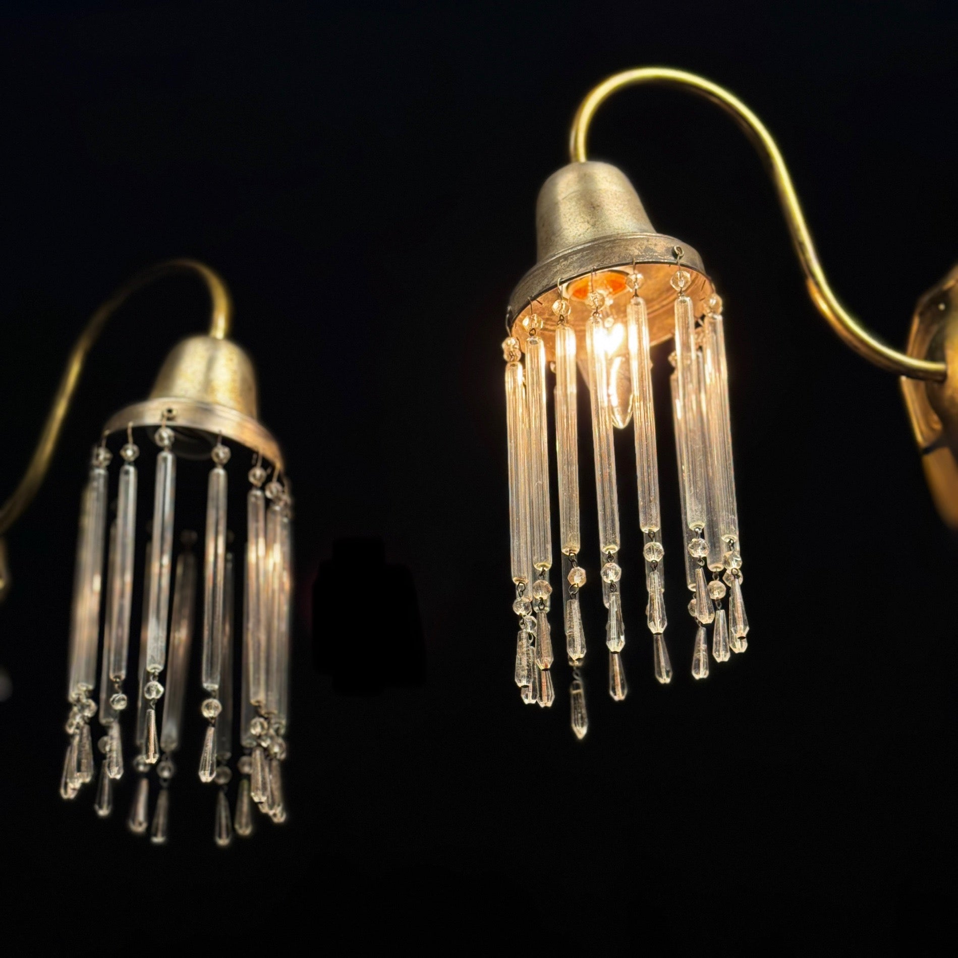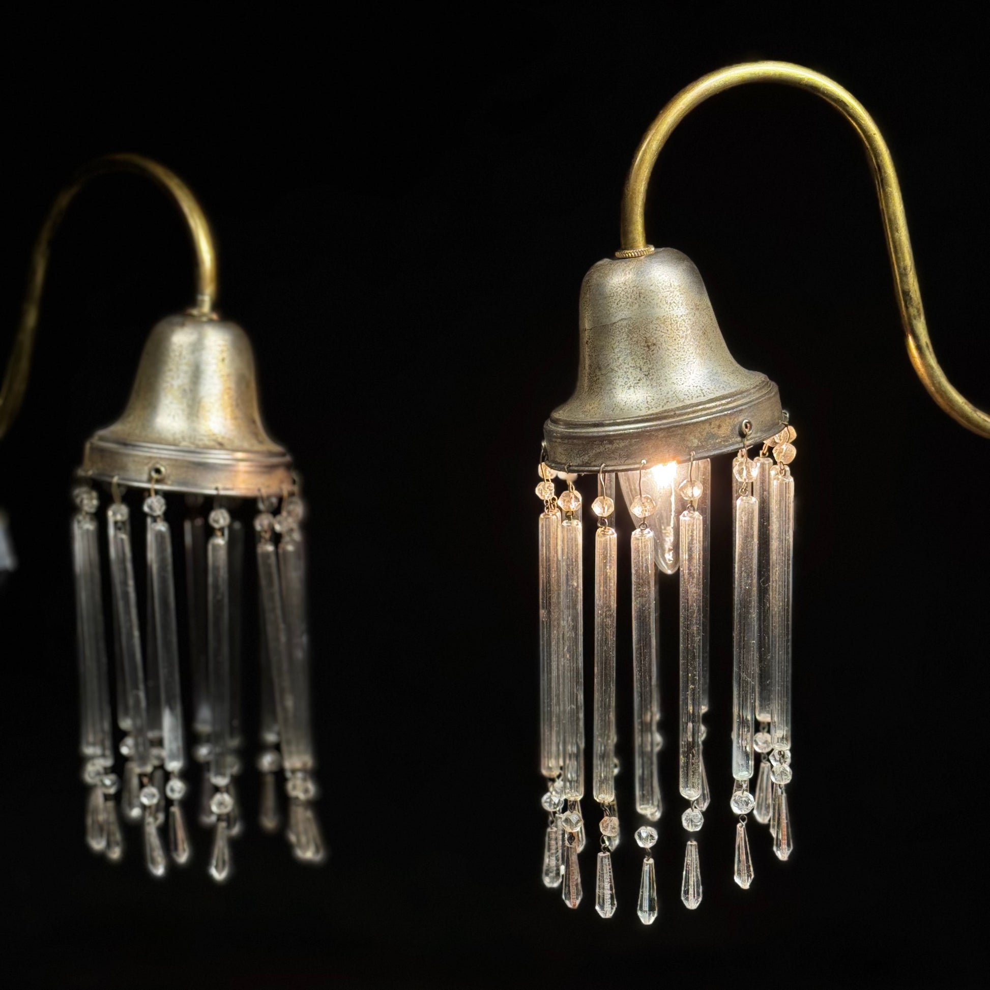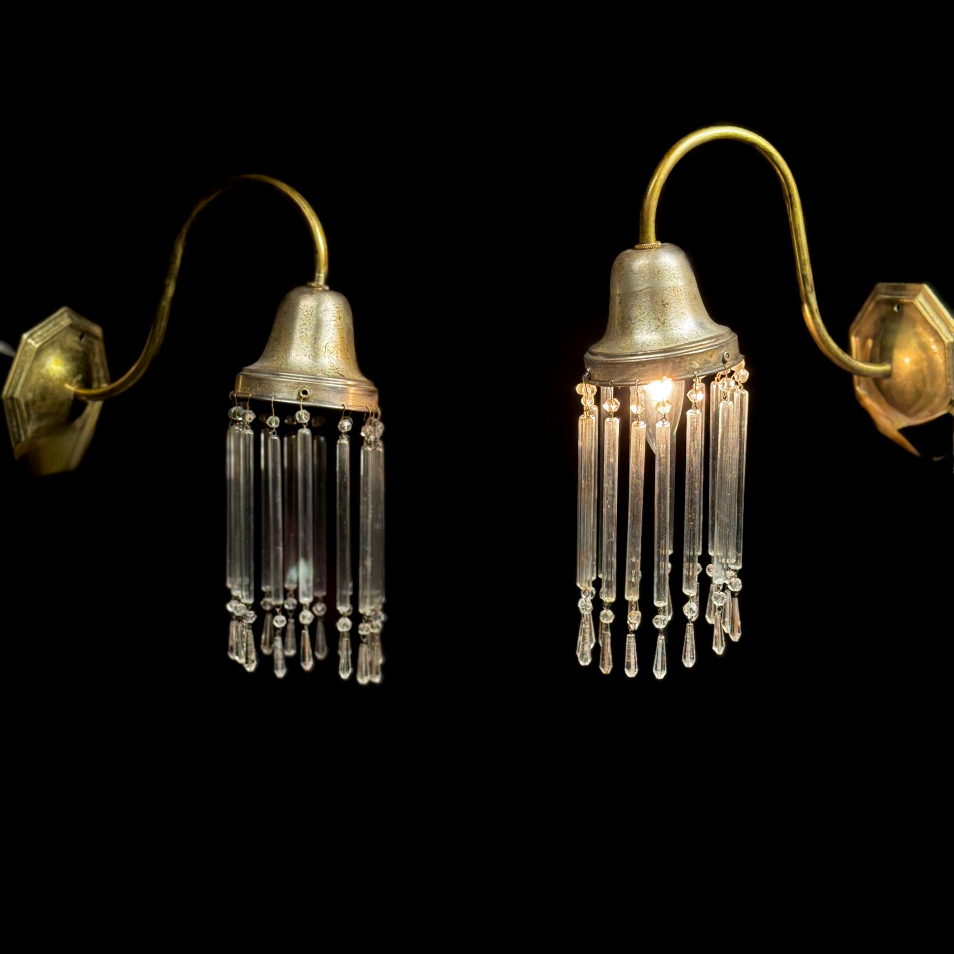 1910 Brass & Crystal Glass Wall Sconce Lights