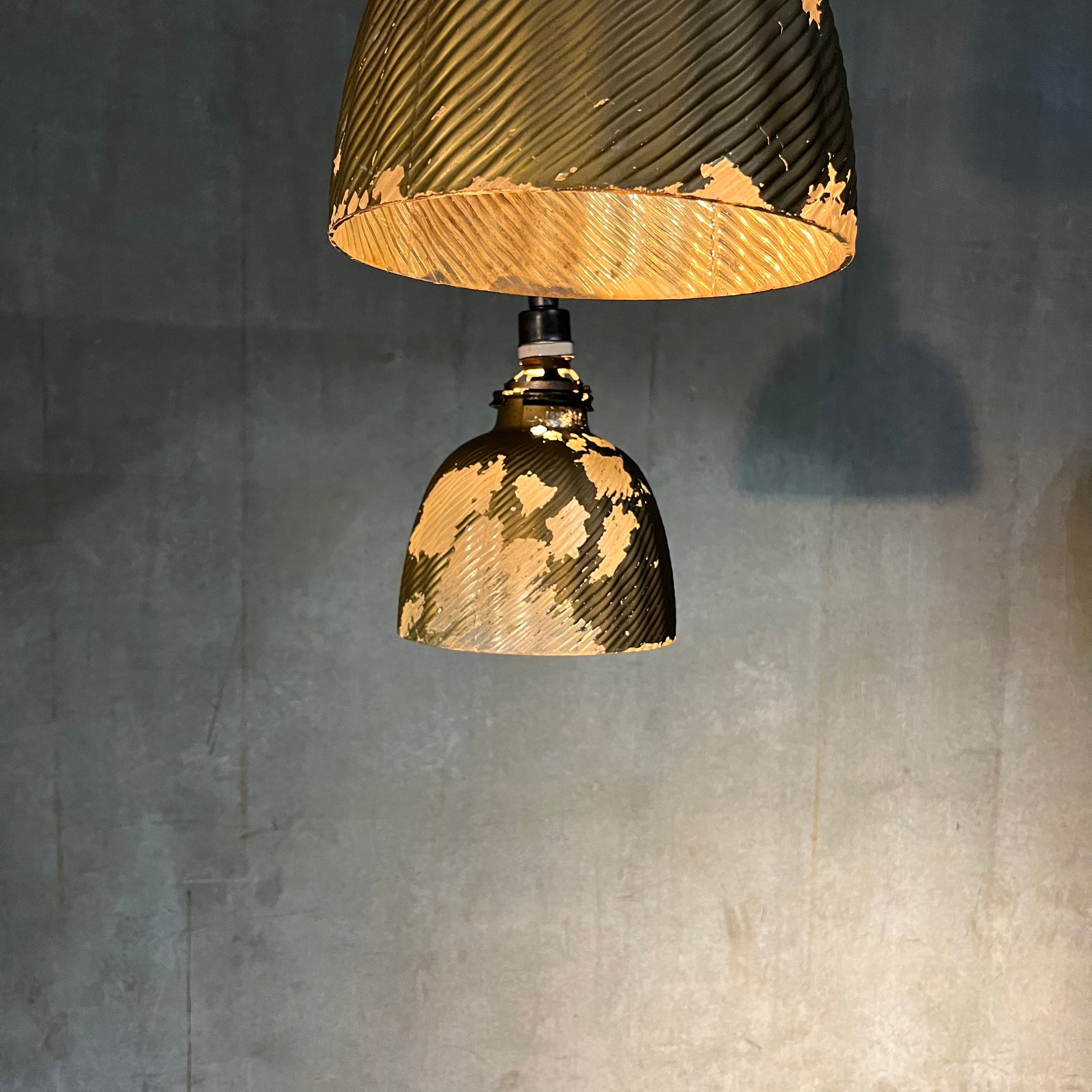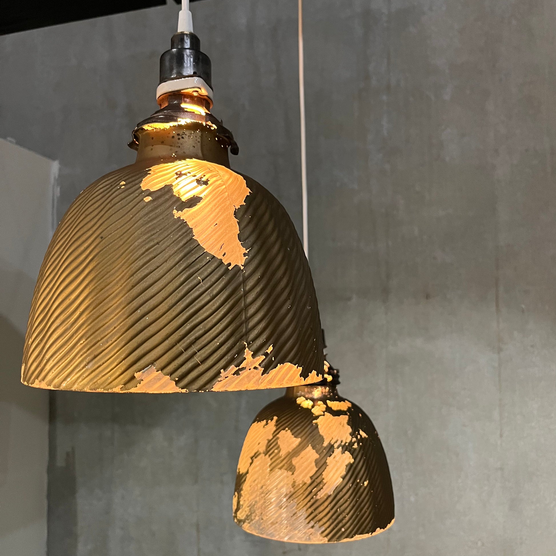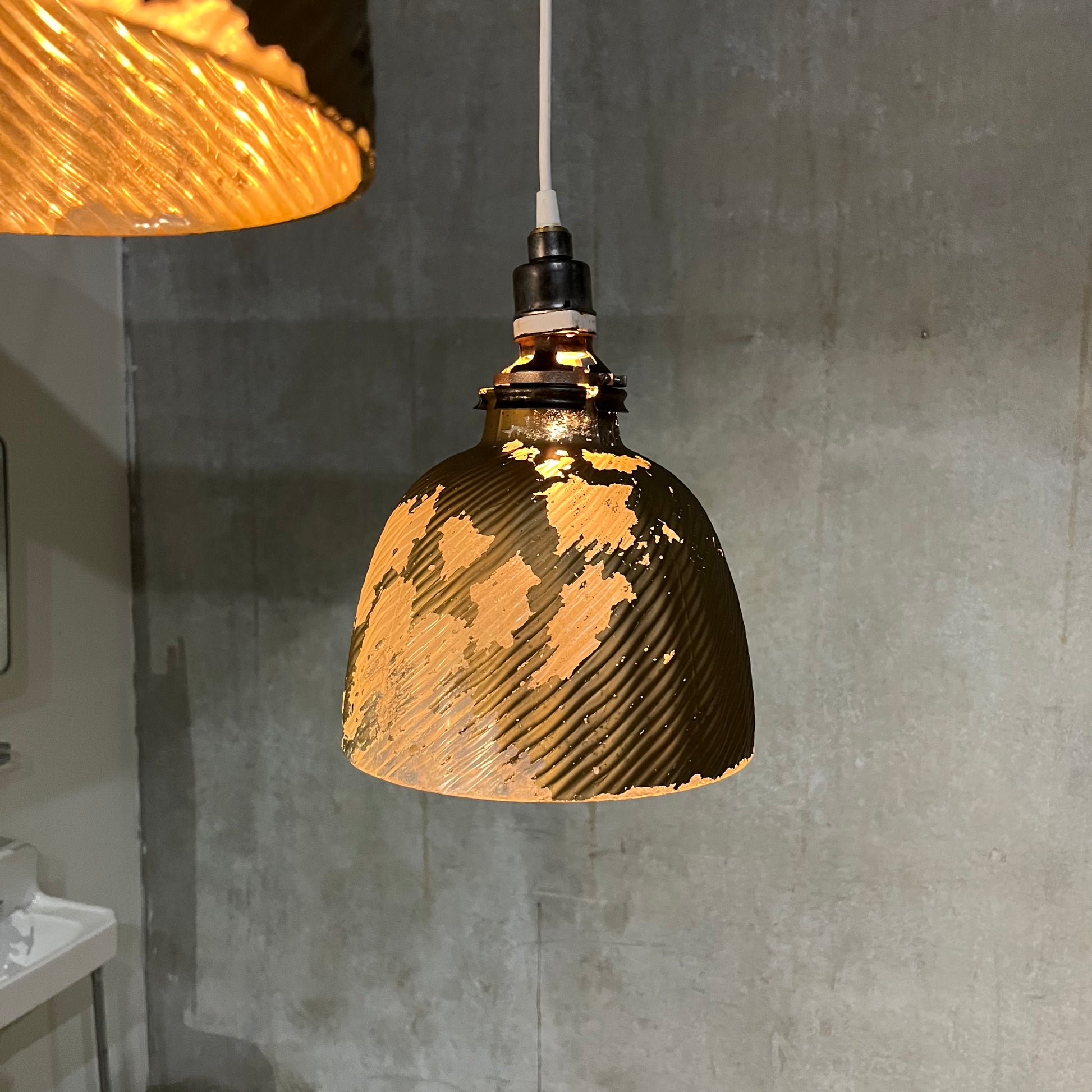 We have 3 of these with a fourth with less texture remaining on the glass …these rare lights have been rewired and CSA completed . We left them as is showing 100 years of use and aging . PRICE PER LIGHT