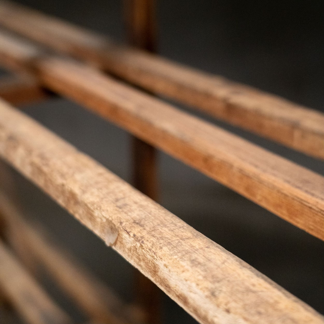 Found in France storage rack used in basement of chateau . A little quirky but solid enough ….nice patina .