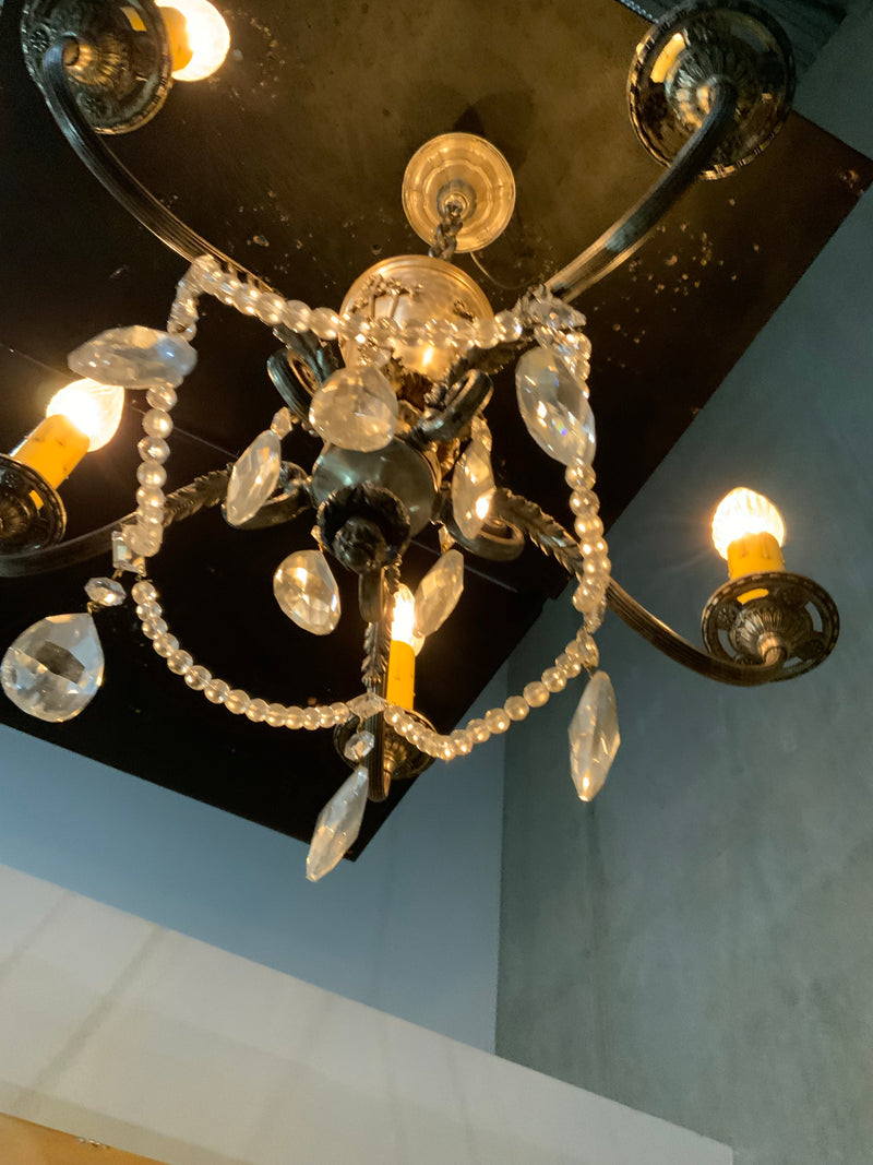 1920 5 light silver plated CHANDELIER with Foliate castings