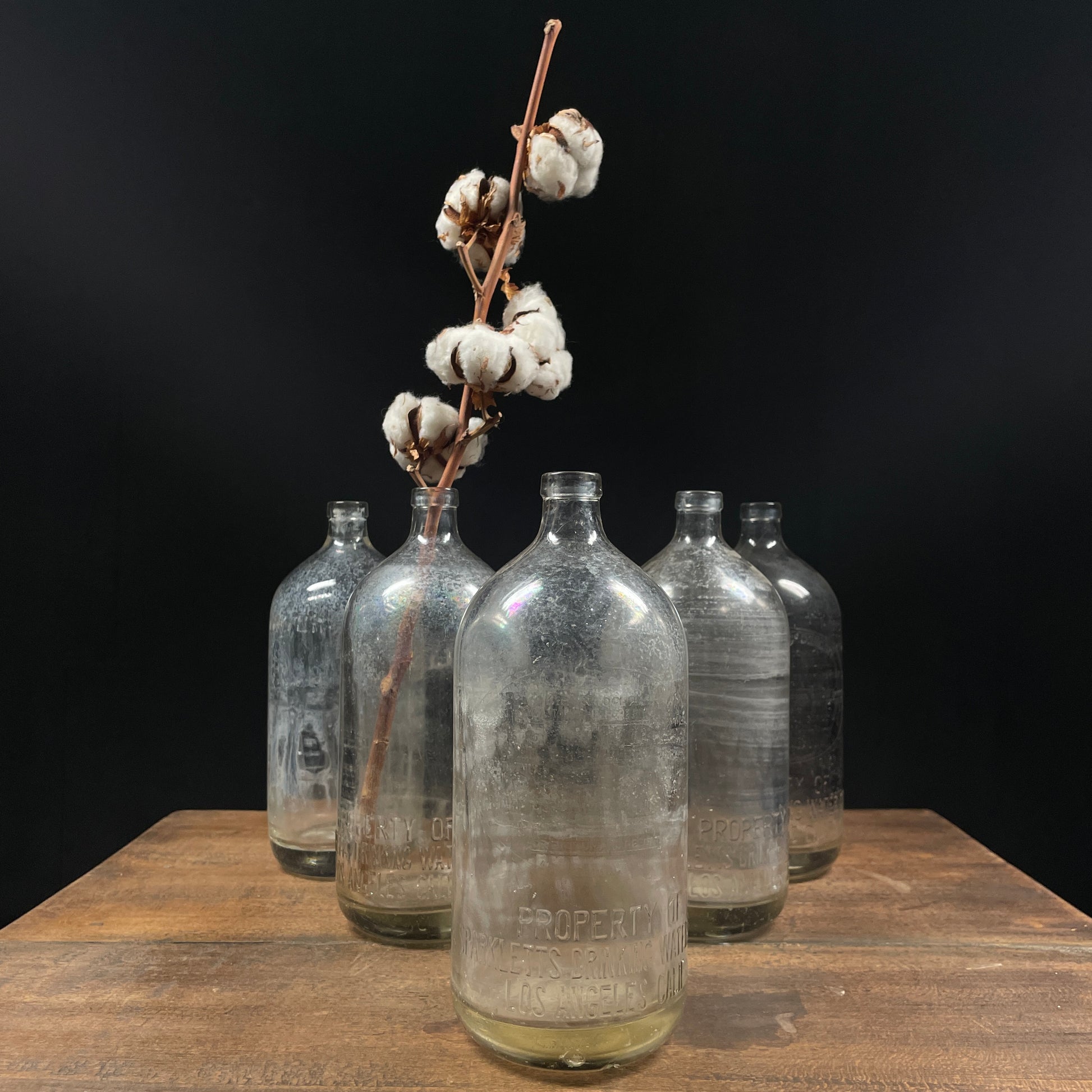 Rare beauties from the 1920’s. These Shasta Water bottles are made of very thick, heavy glass, some printed, some printed and embossed, each unique with their own history and wear. Add your favorite greenery, our preserved florals, or weekly cuttings. These are embossed and are just cool.