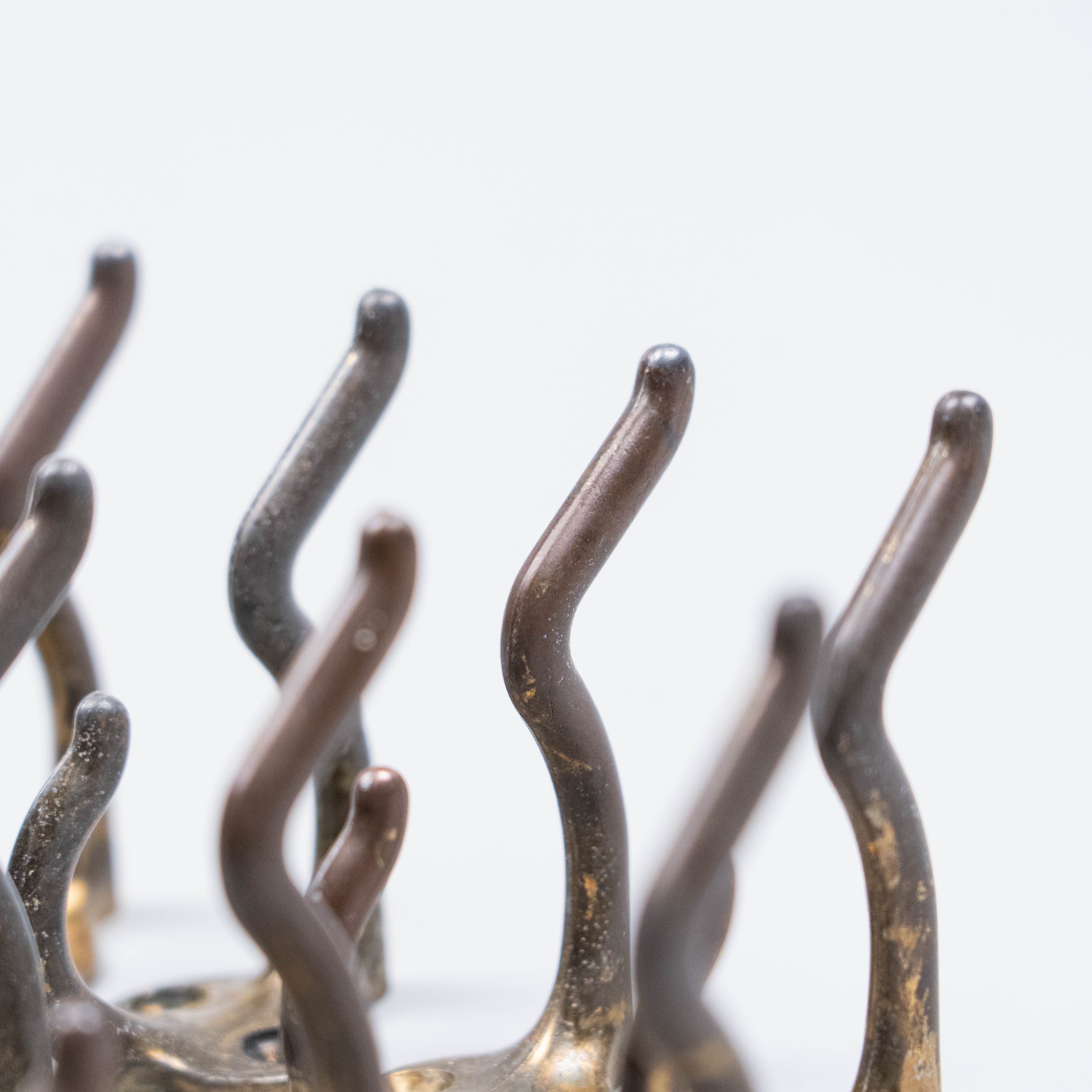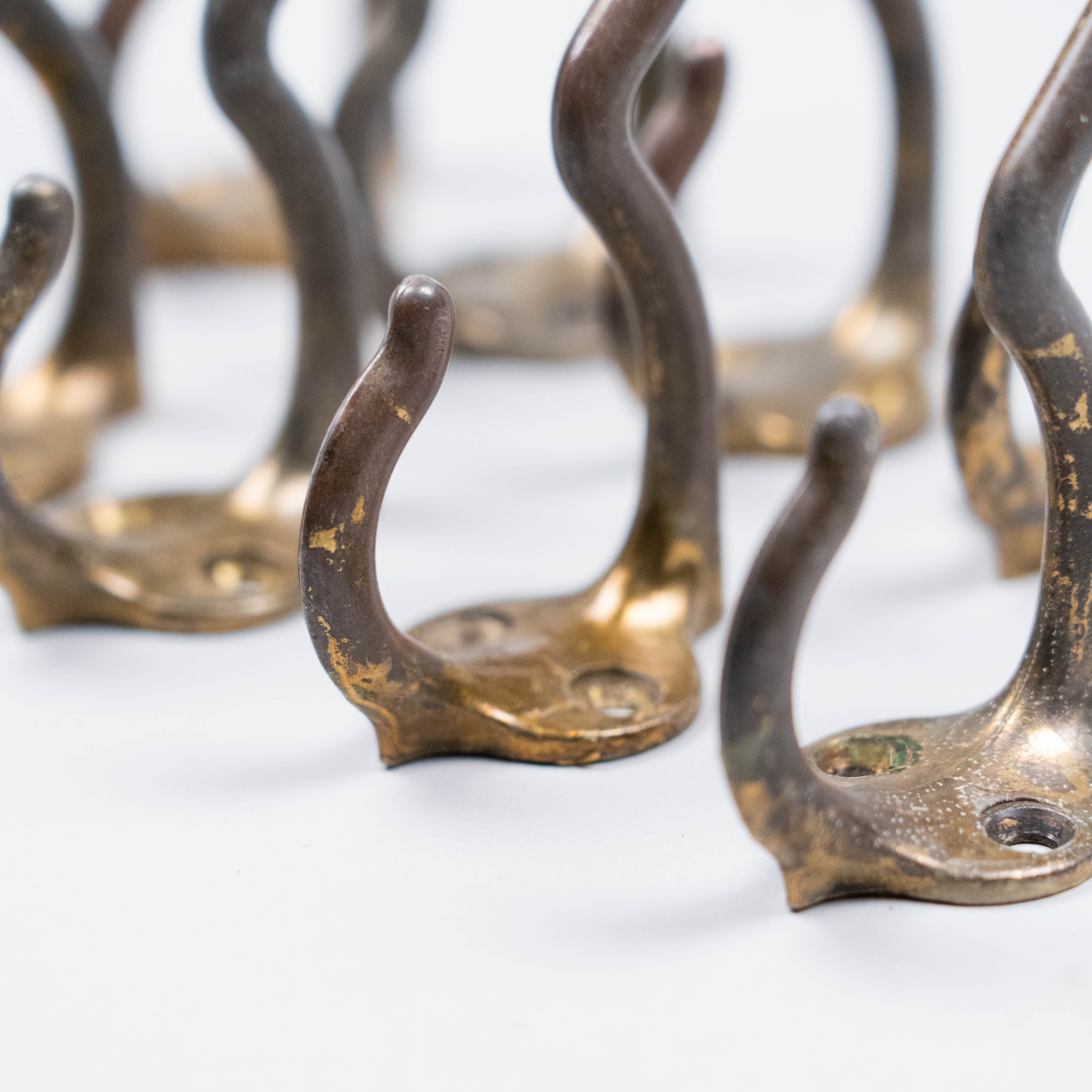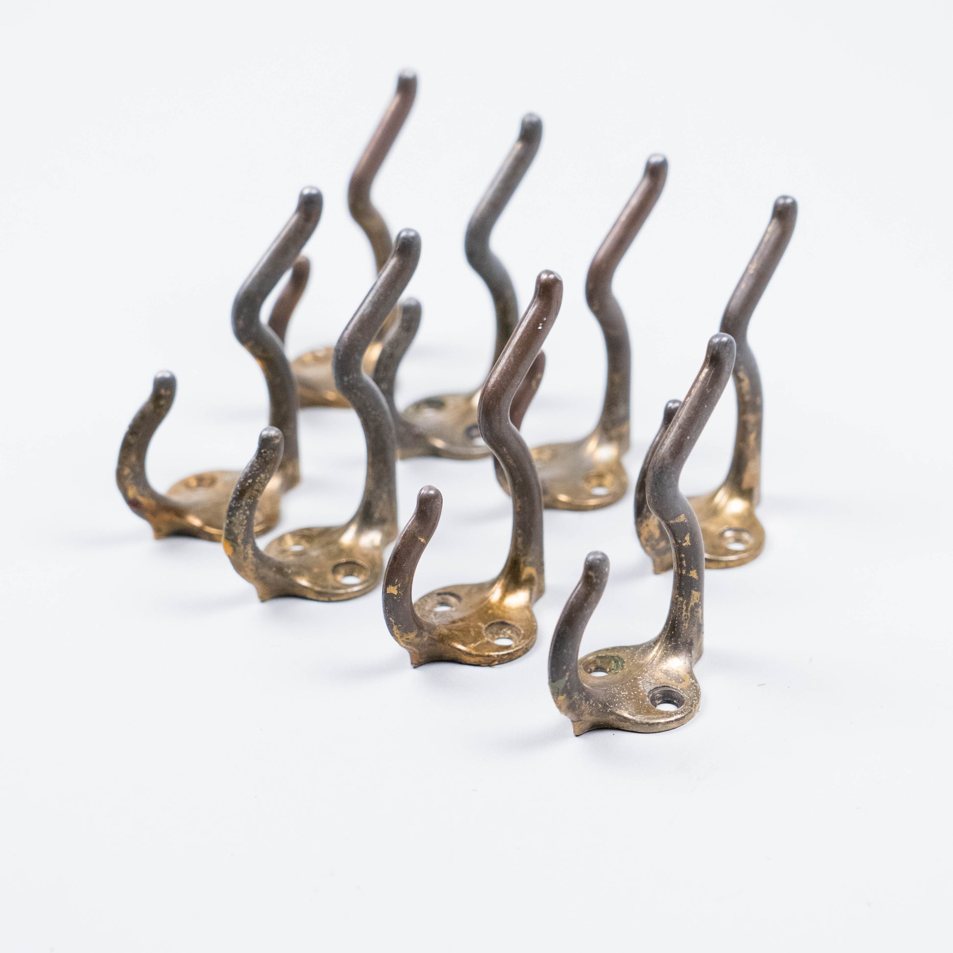 Solid brass coat hooks salvaged from an elementary school demolition.