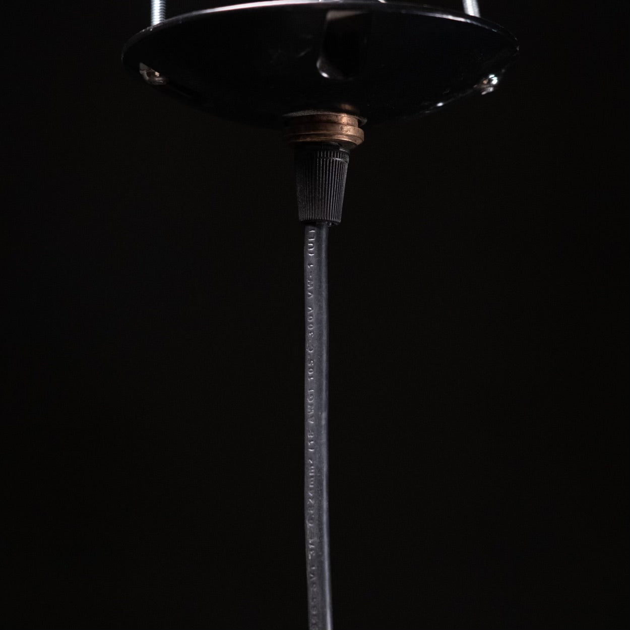 An unusual pendant light with aluminum shade, brass parts, on cable for easy install. Light has been rewired and CSA approved.