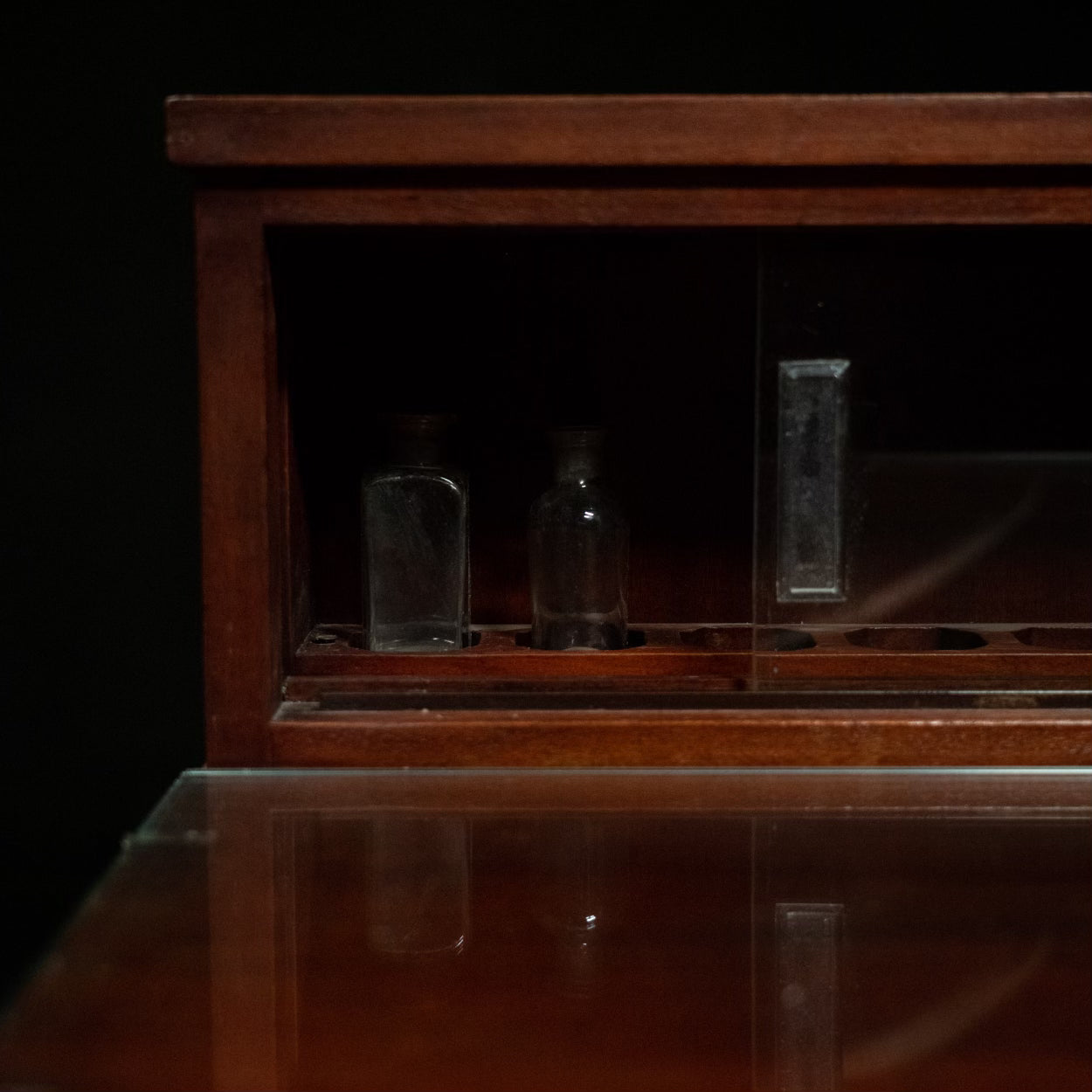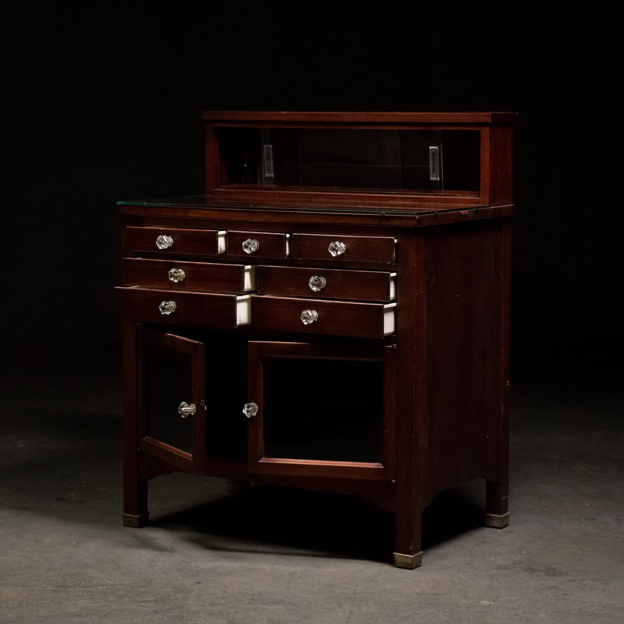 A rare small dental cabinet manufactured in 1920 in the USA. It’s made from mahogany, and the interiors of its drawers are lined with metal. It was found in original condition in western Ontario.