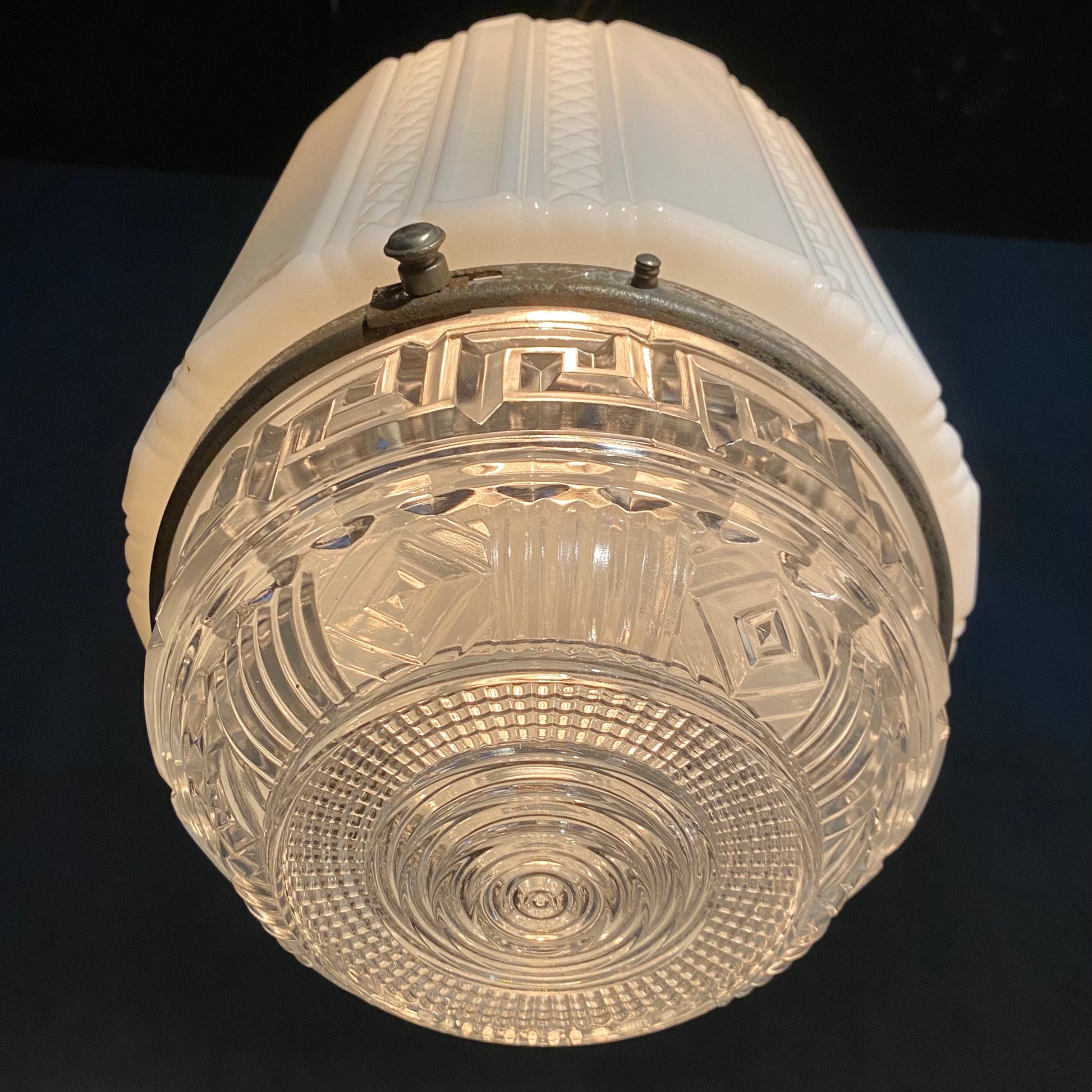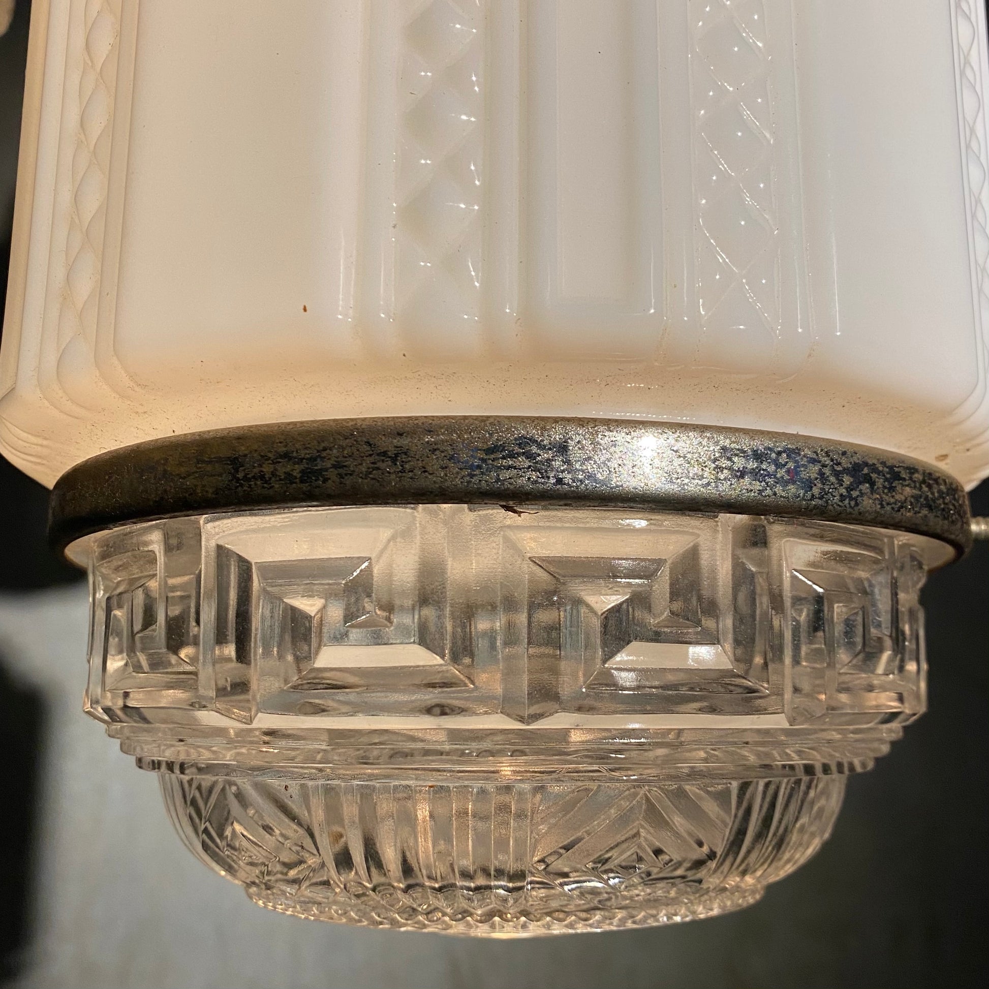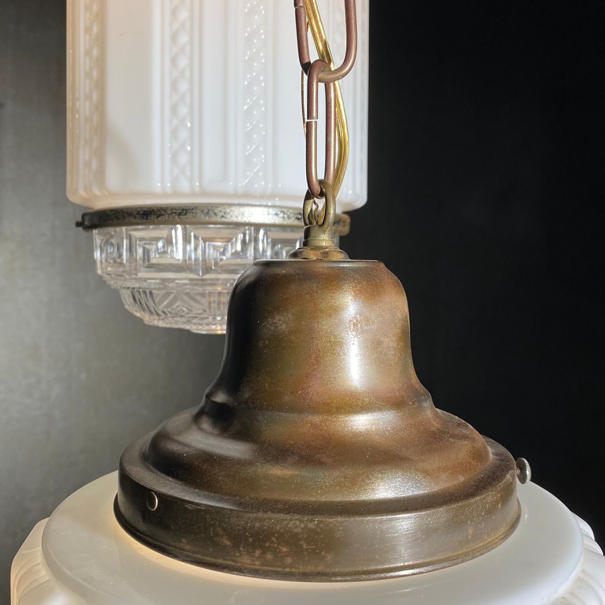 Set of 3 Original Skyscraper Pendant Lights salvaged from a bank in St. Louis.