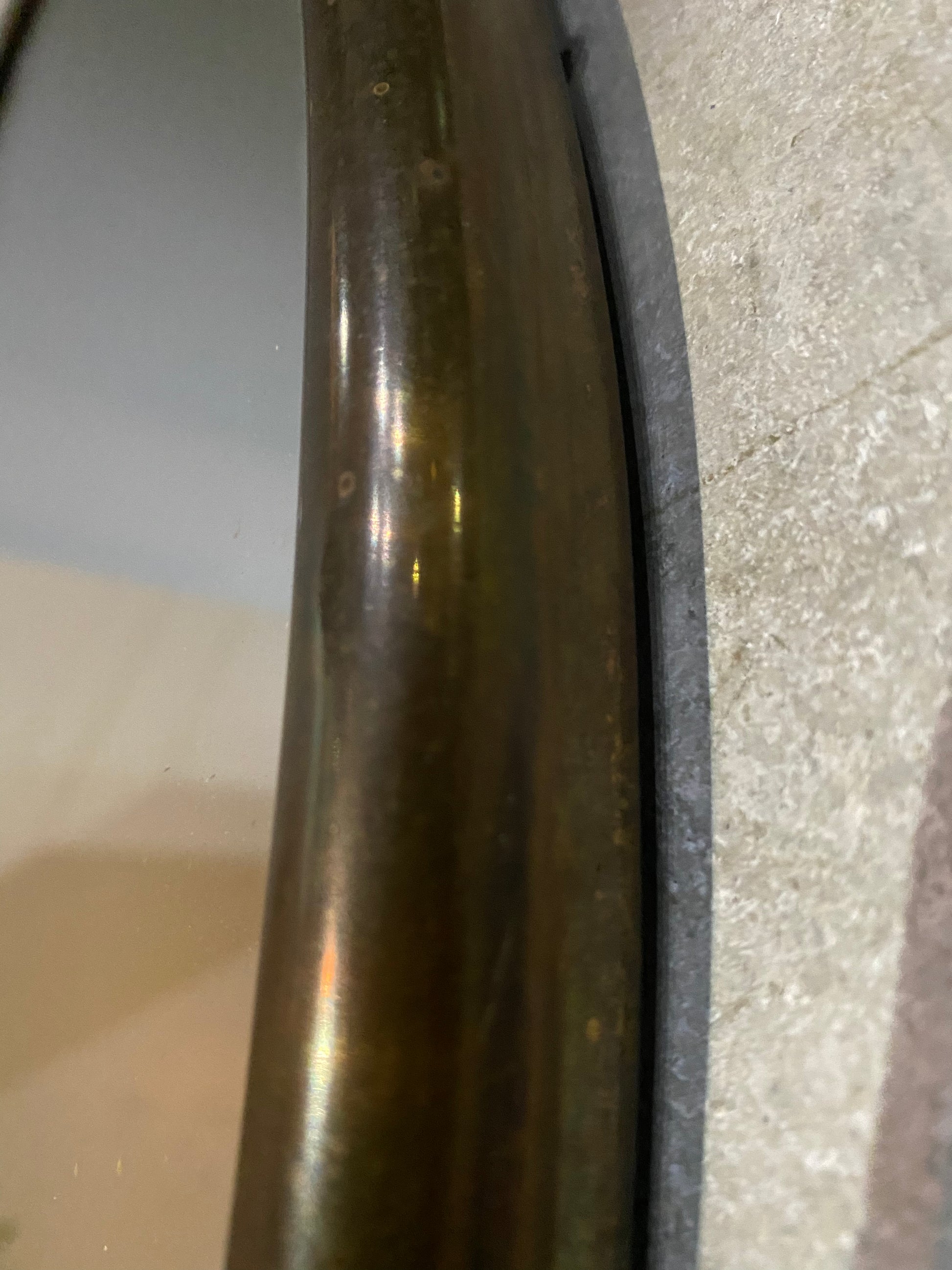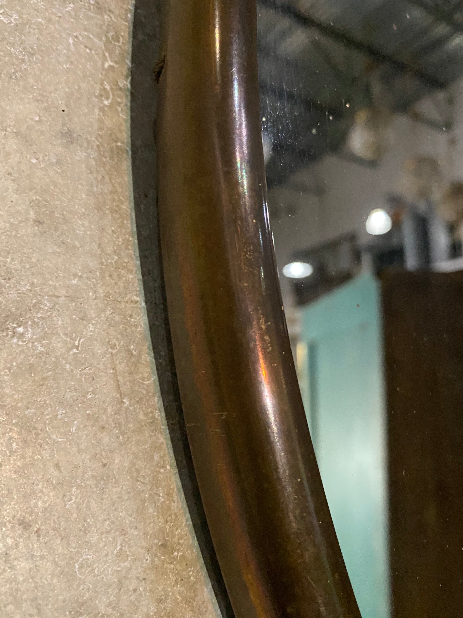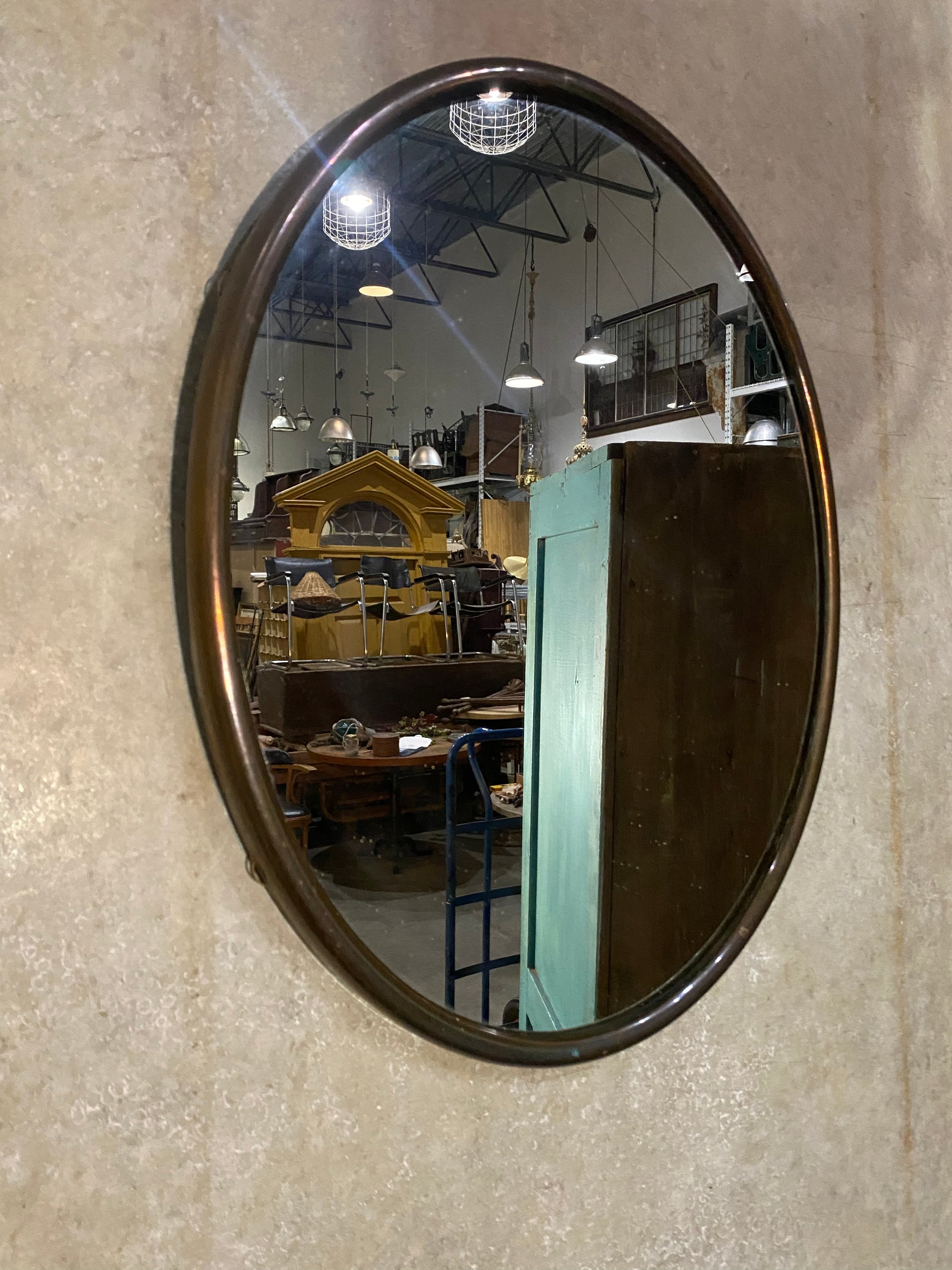 Nice oxidized brass mirror , oval shape, easy to hang with great patina . Found in a VANCOUVER Collection.