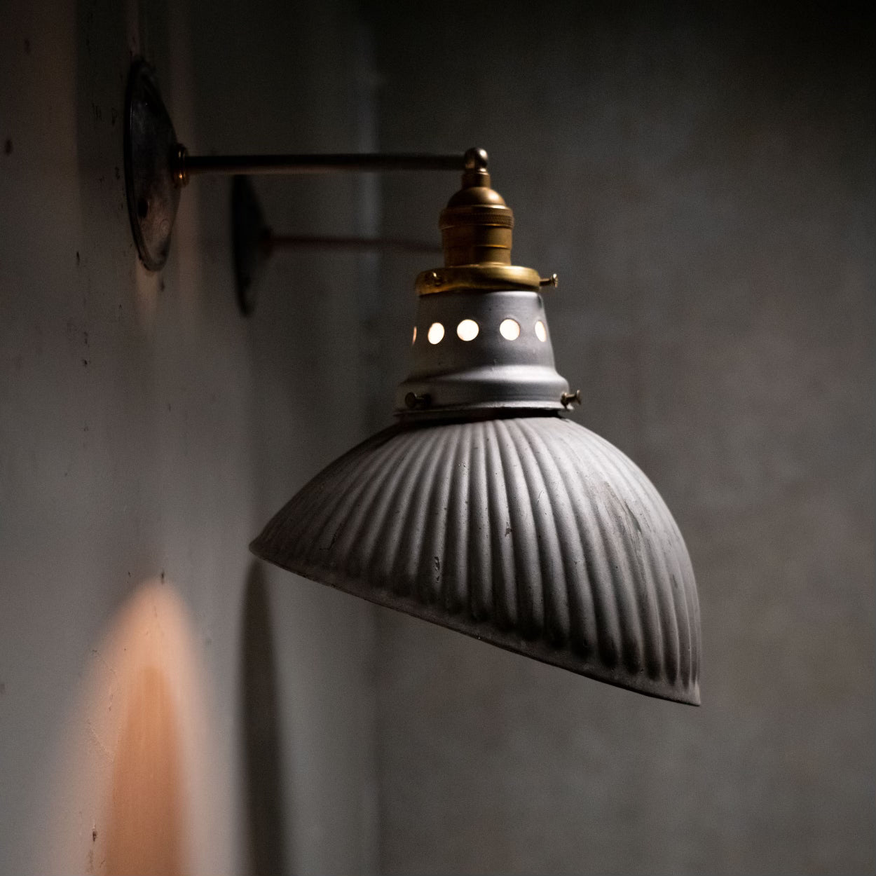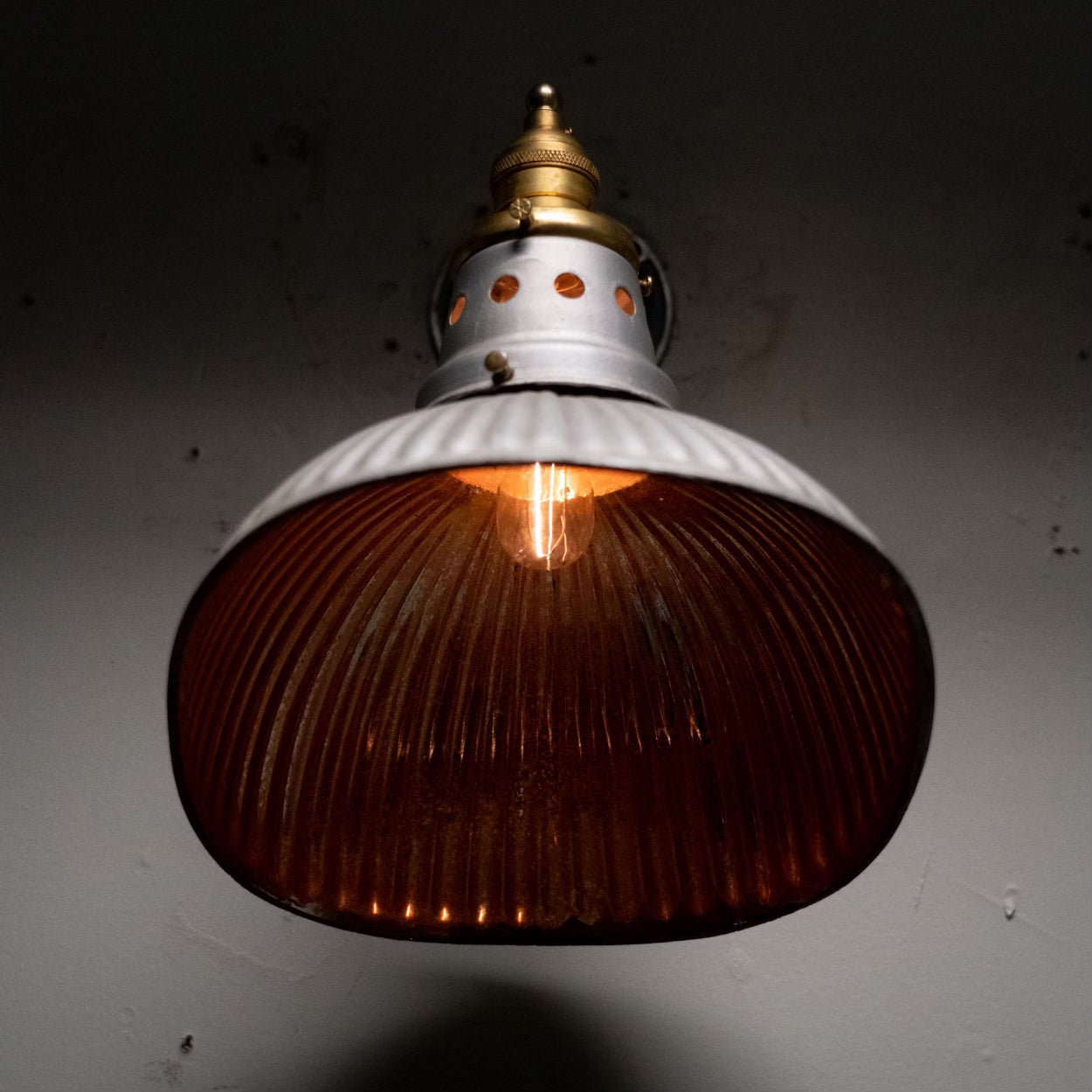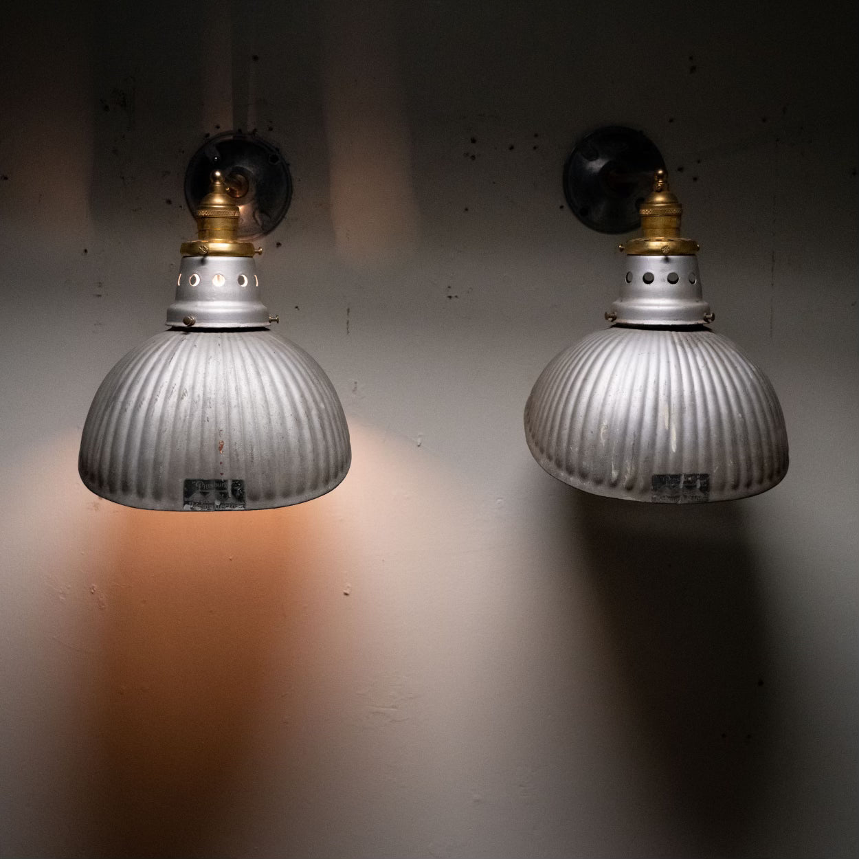 Beautiful rare 1930 mercury shades from Pittsburgh Permaflector Co. Restored with brass accents to make for a nice, two-tone, quality sconce.