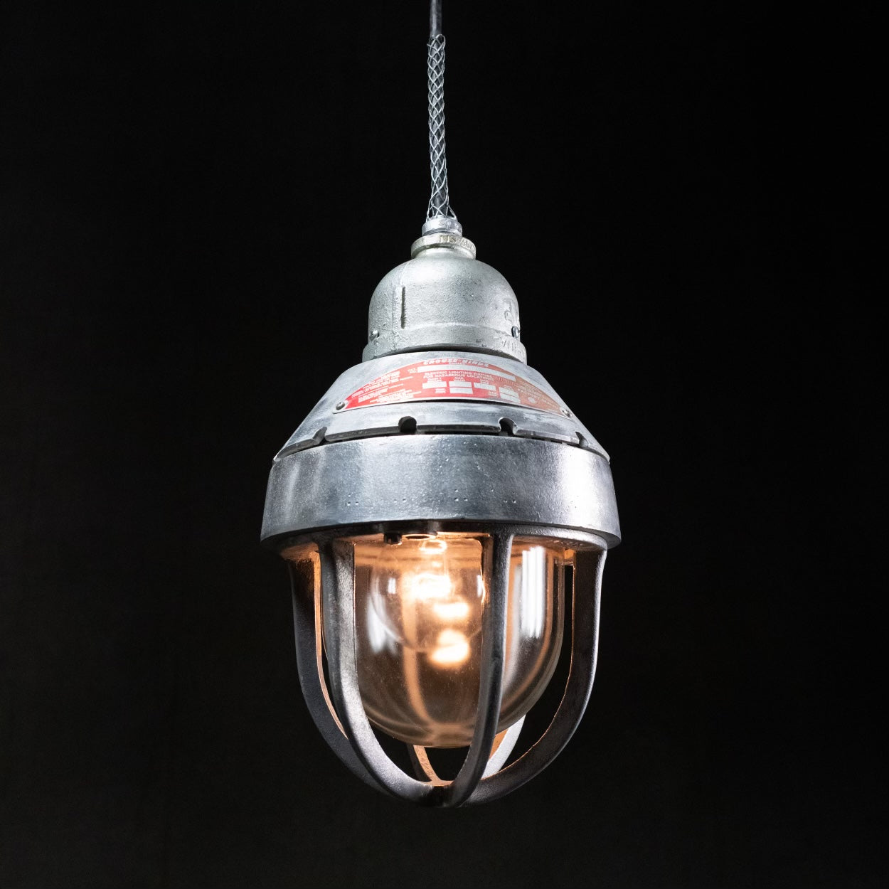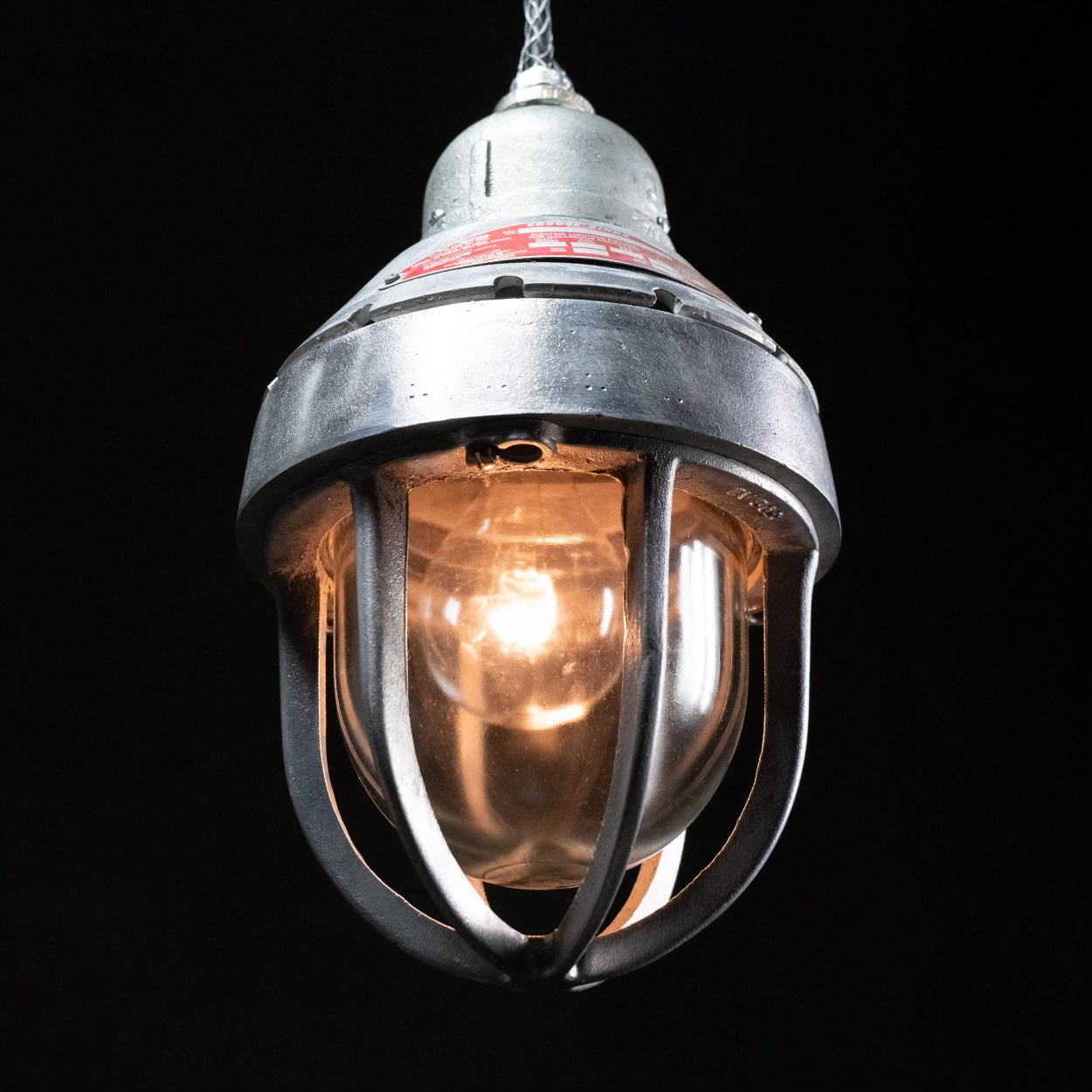 1940 Industrial Vapour Proof Glass Pendant Light by Crouse-Hinds