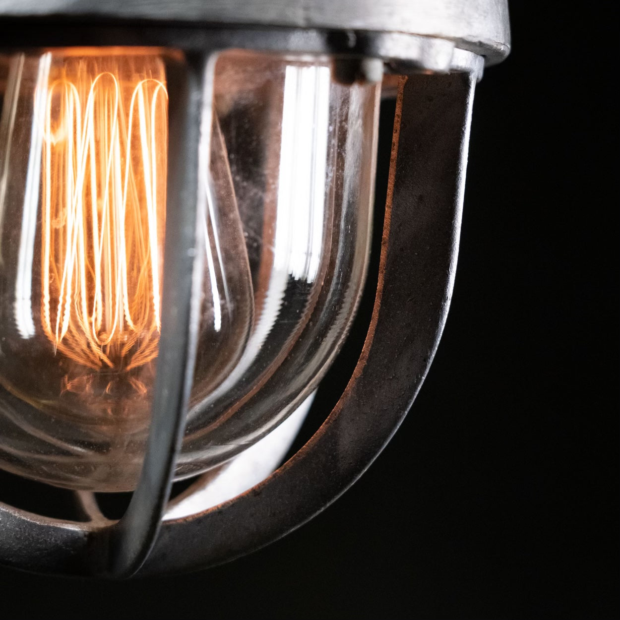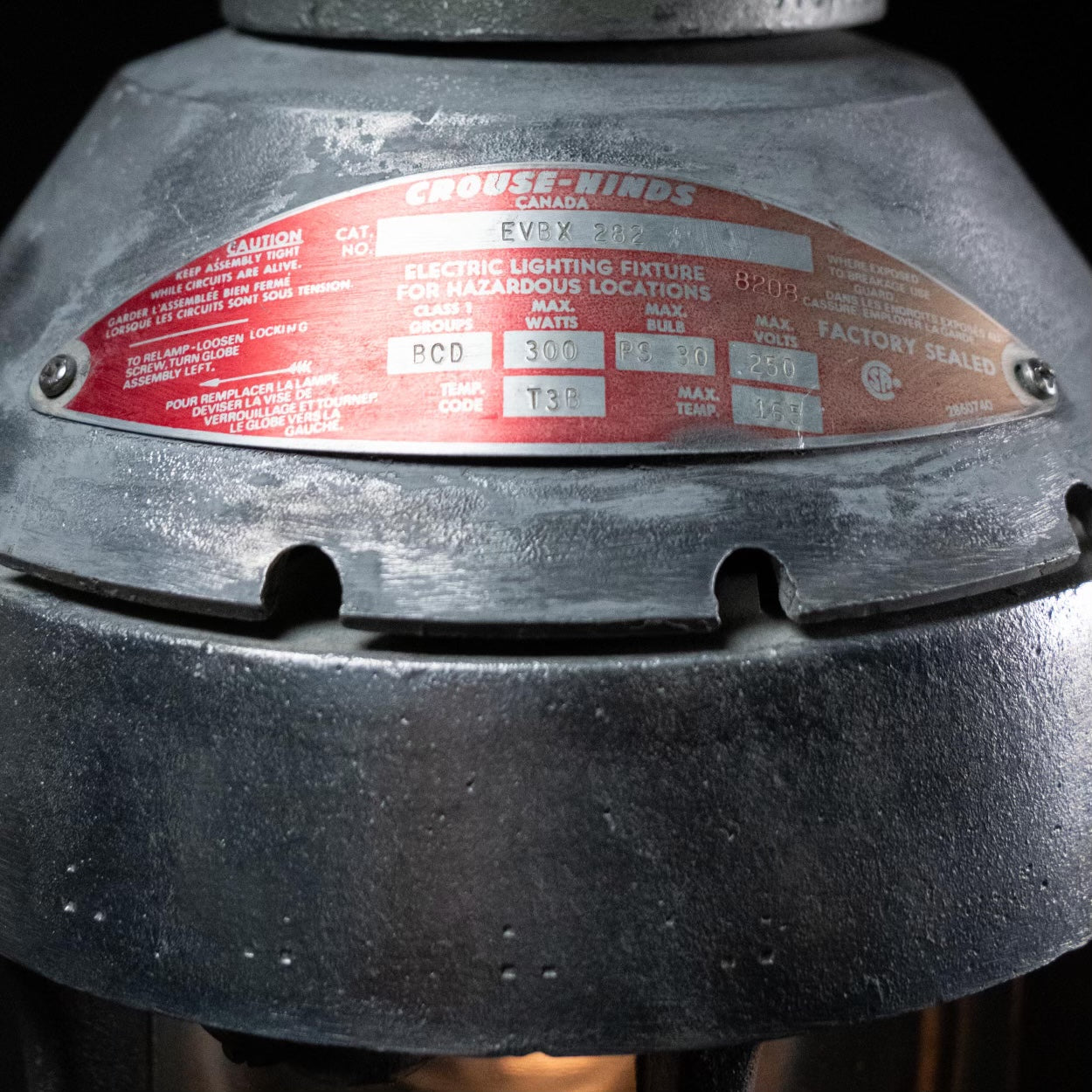 We have a group of 6 lights salvaged from an old machine shop in bc. Lights are the famous Crouse hinds make with a nicely polished surface with thick glass globes. Any led or incandescent bulb will work. CSA complete ready for install