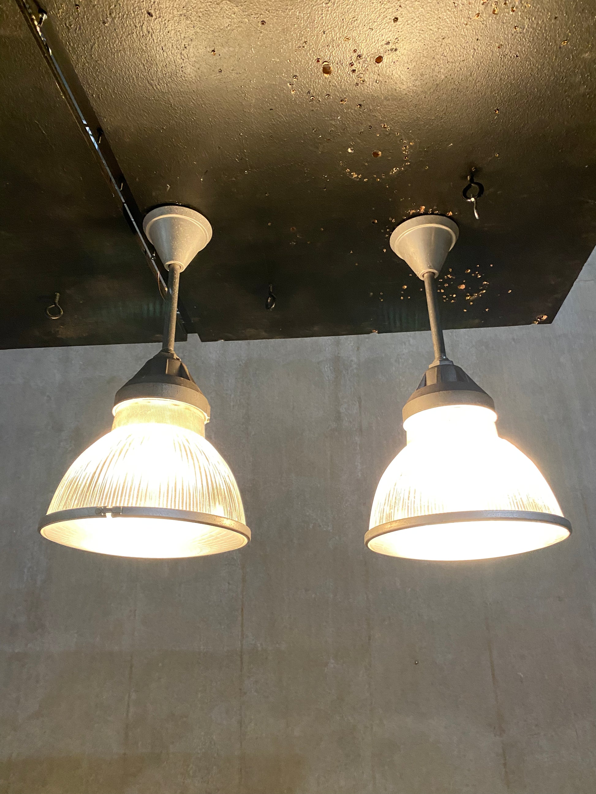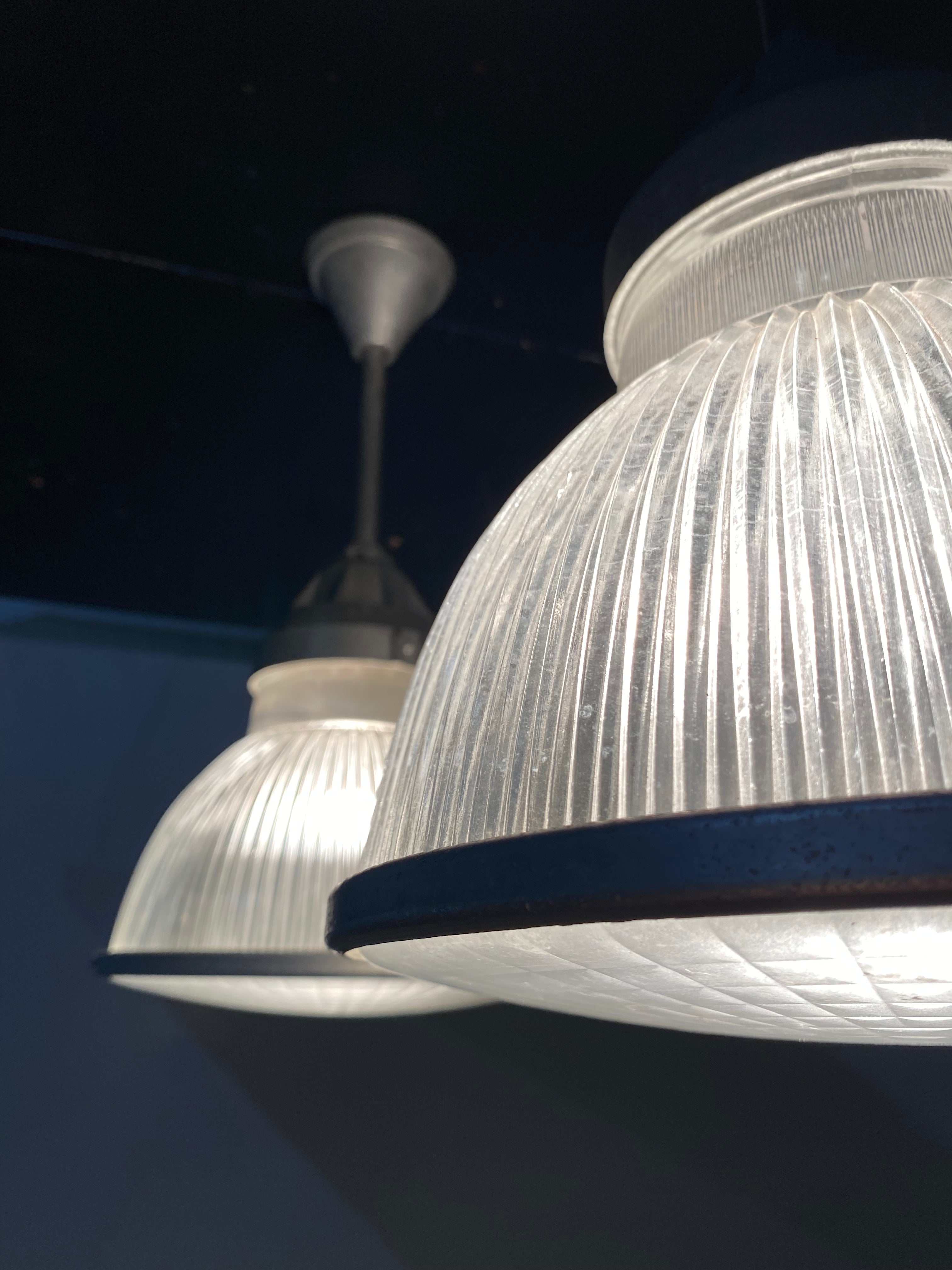 1940 Rare Set of Holophane Industrial Pendant Lights