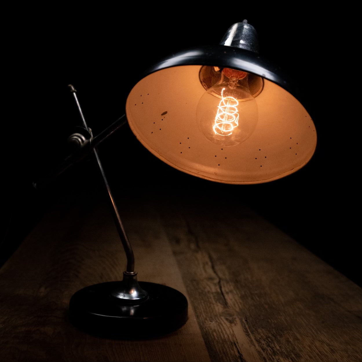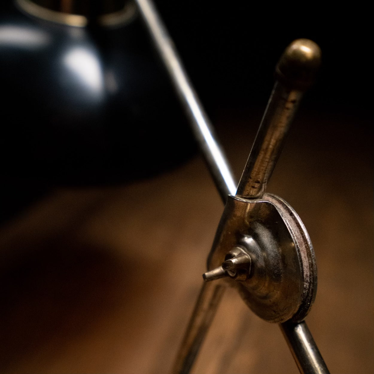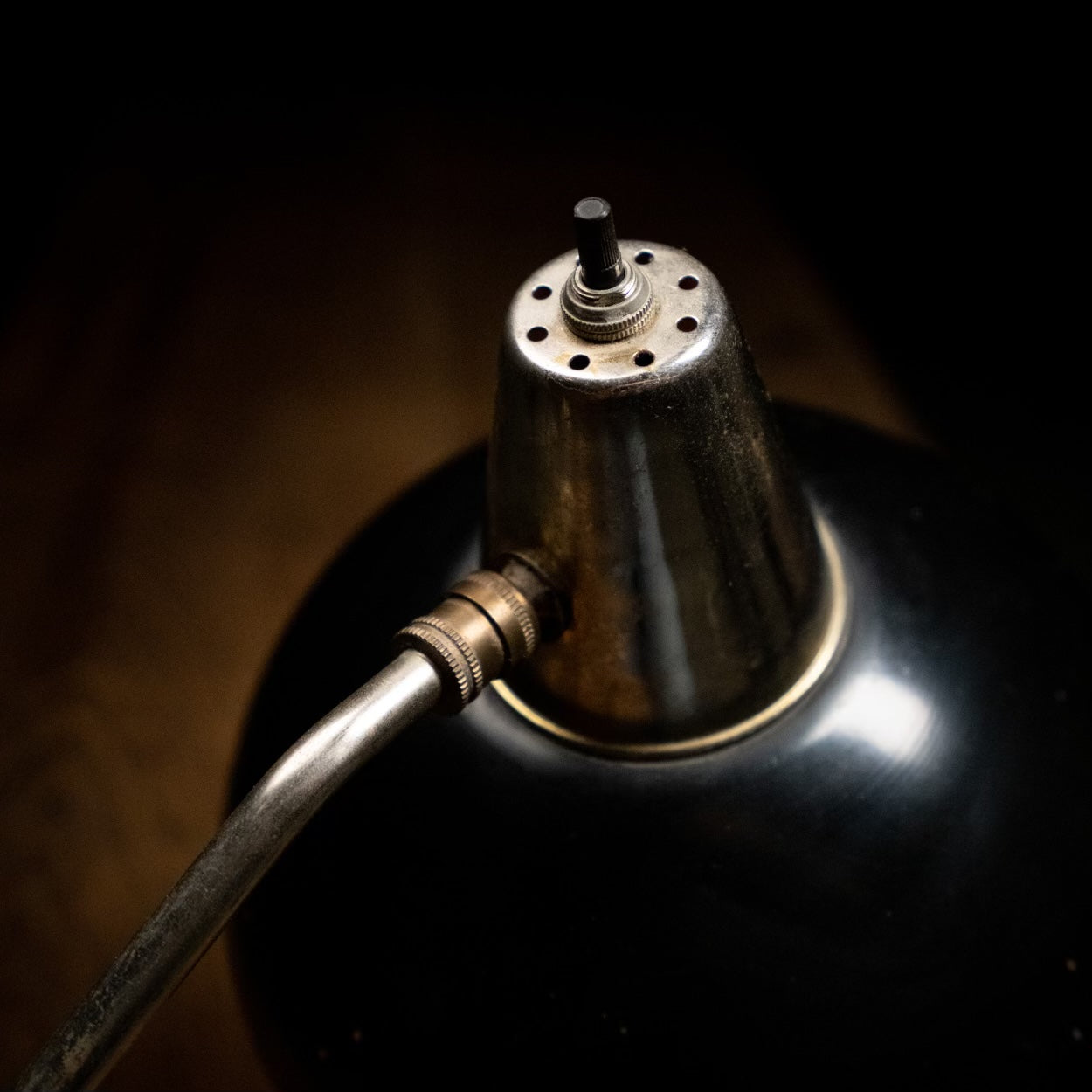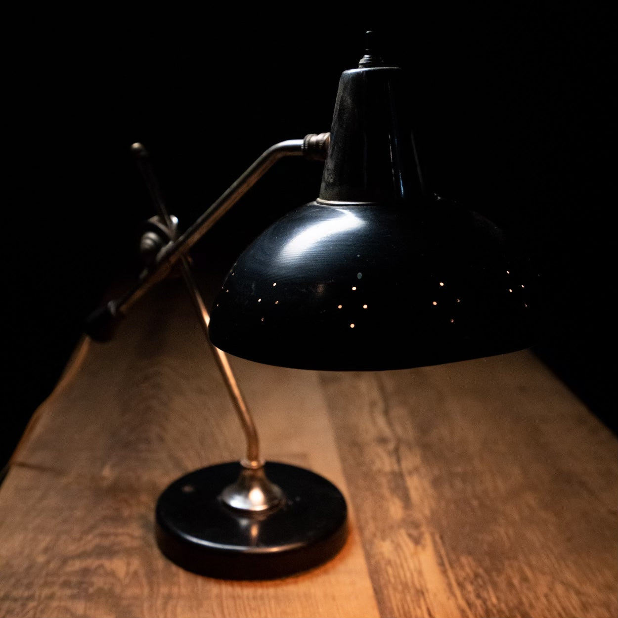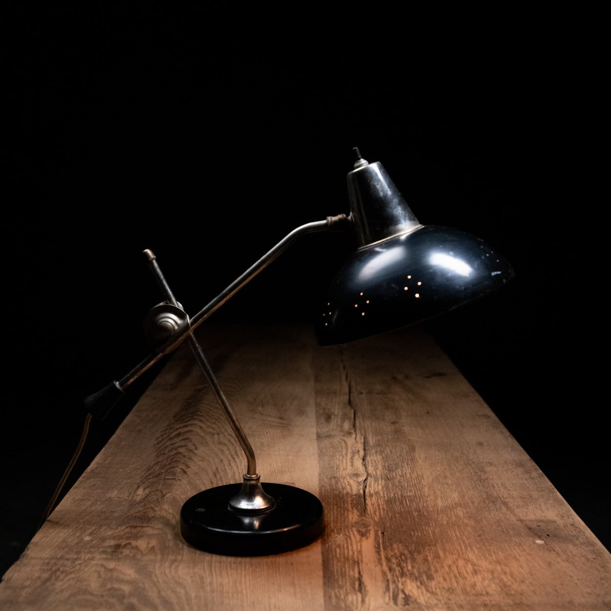 A find rare example , featuring pierced shade , articulating arm with mechanical swivel. Lamp is BTB of European origin . Designer unknown . Acquired from s private collection .