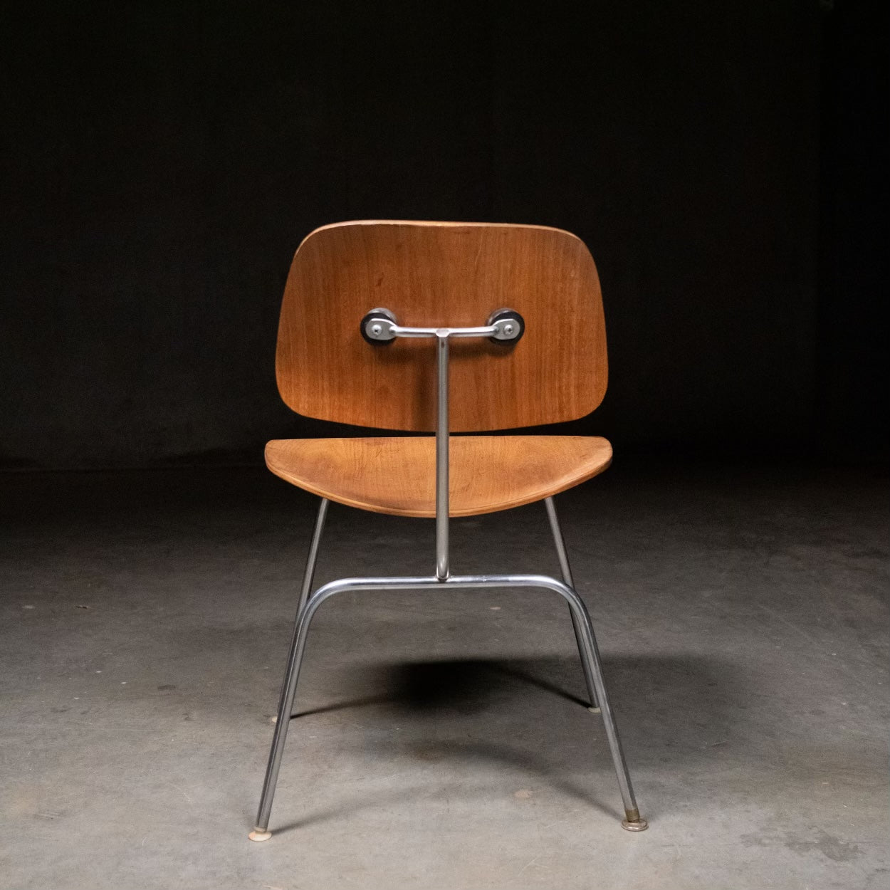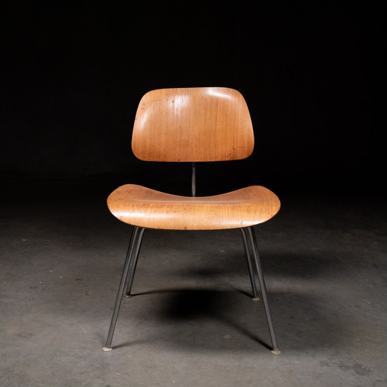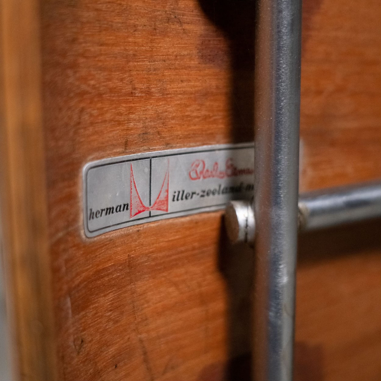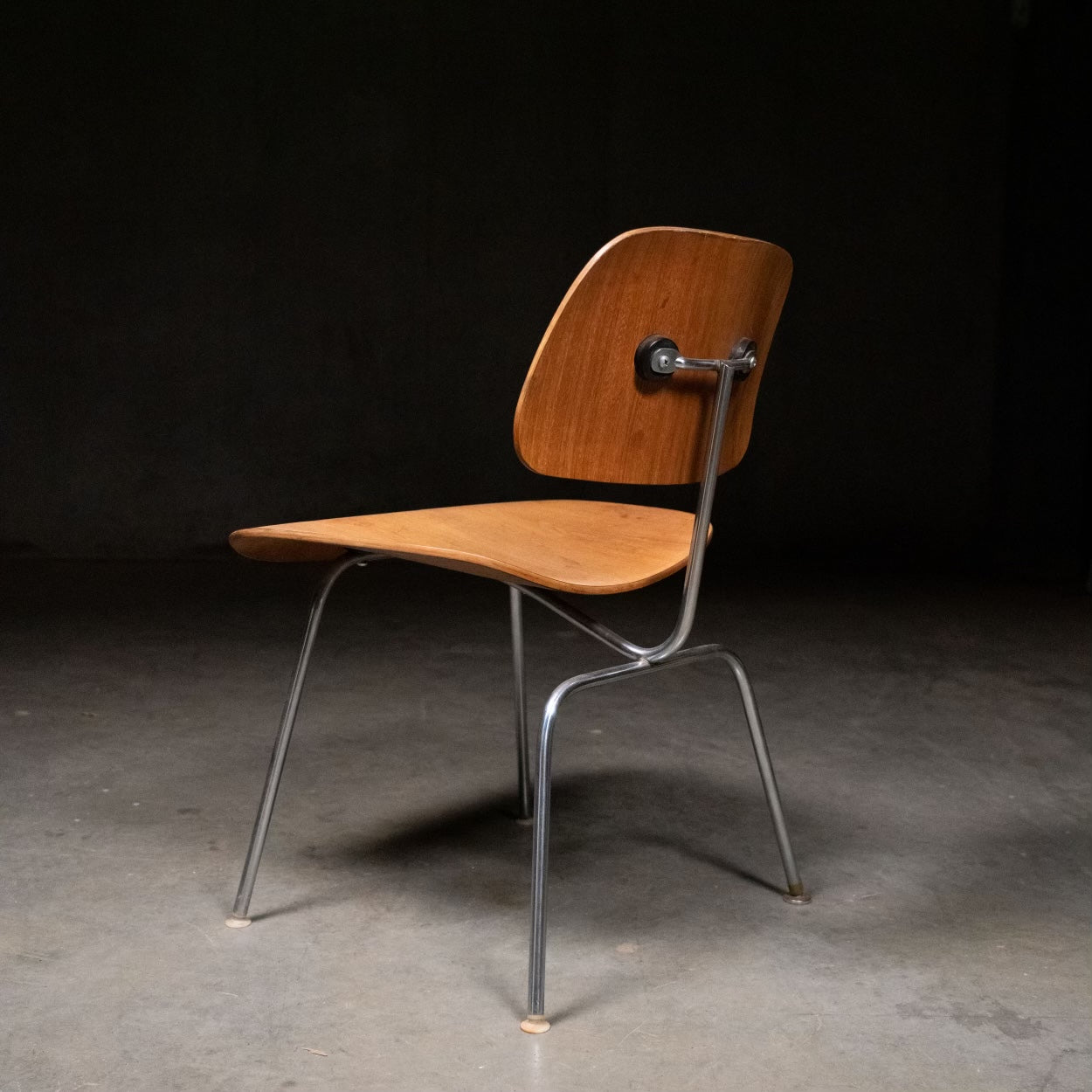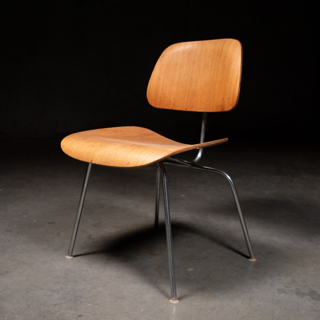 SOLD An Eames LCM lounge chair, Herman Miller, USA, 1950s. Ash plywood, chrome-plated steel and original rubber feet caps. With manufacturers label. The LCM was the lounger edition of the metal leg plywood chairs developed by Charles Eames in collaboration with the Evans Plywood Company. The end of the second world war enabled Charles to bring together the experimental plywood techniques he had helped to develop, and his long-time interest for furniture design. Label indicated 1951-58 production .