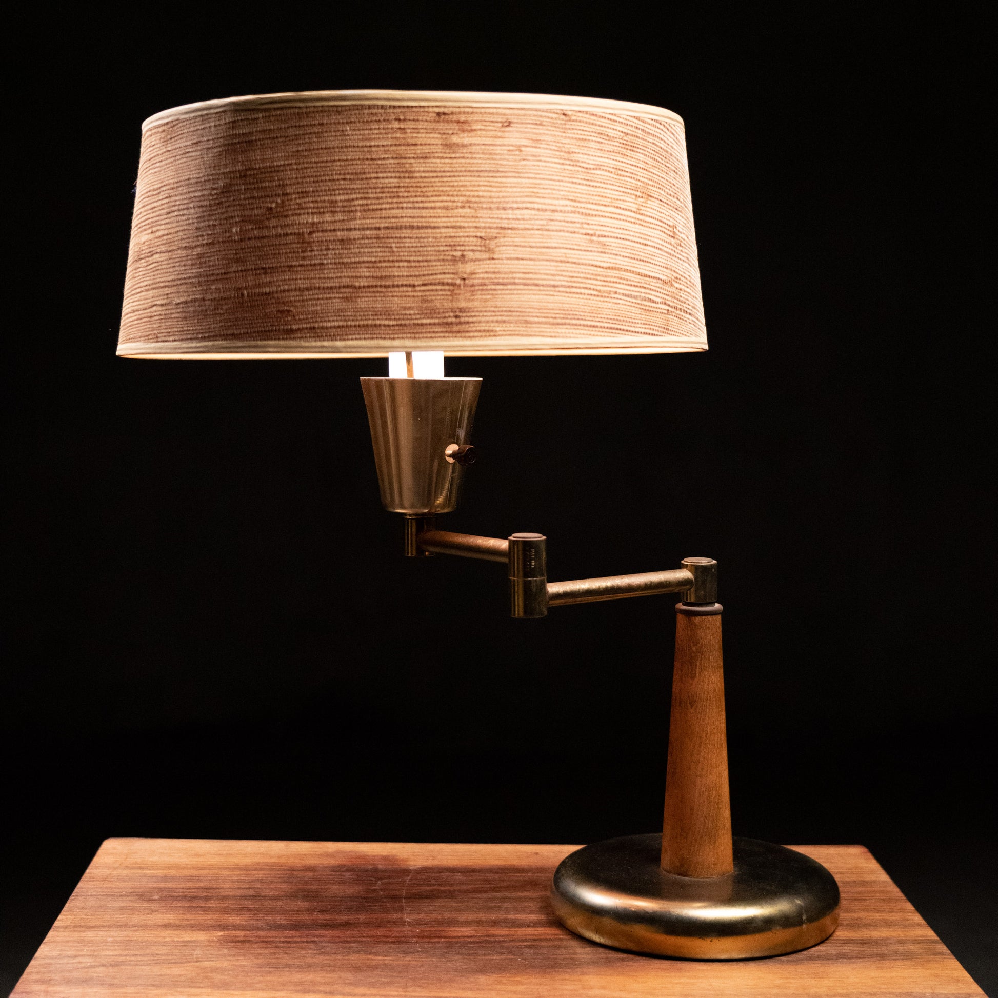 A nice simple authentic table lamps, in brass and walnut details with original shade. Found in a collection in LA. Rewired and functional.