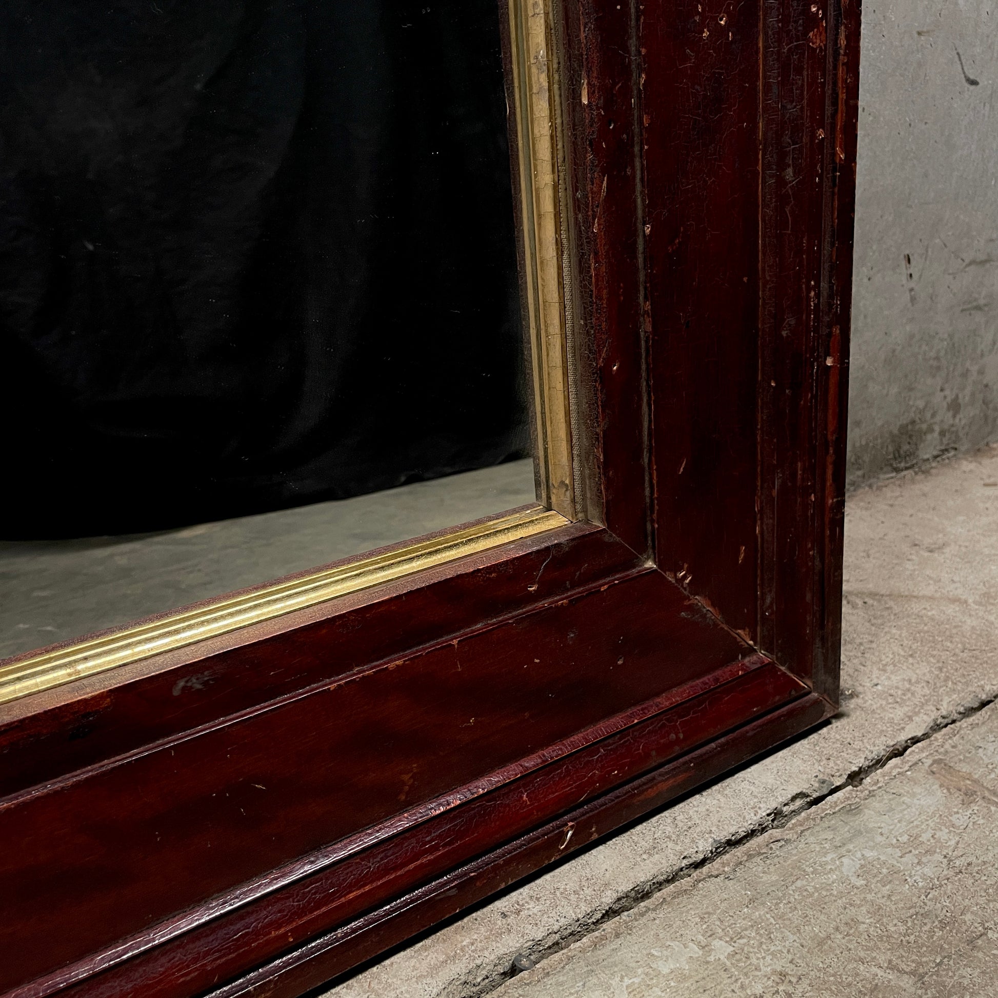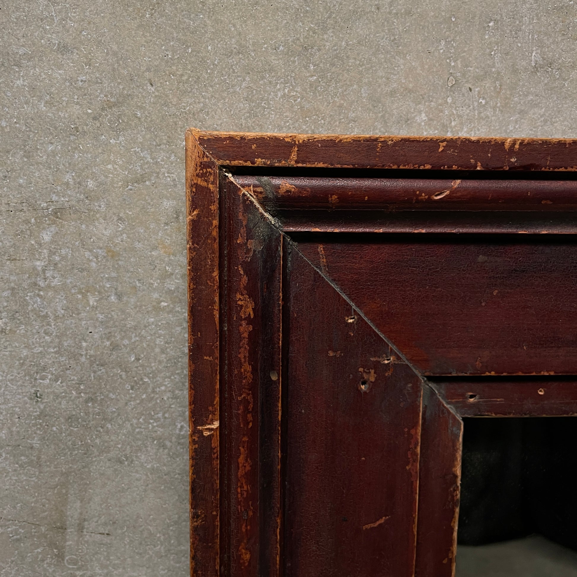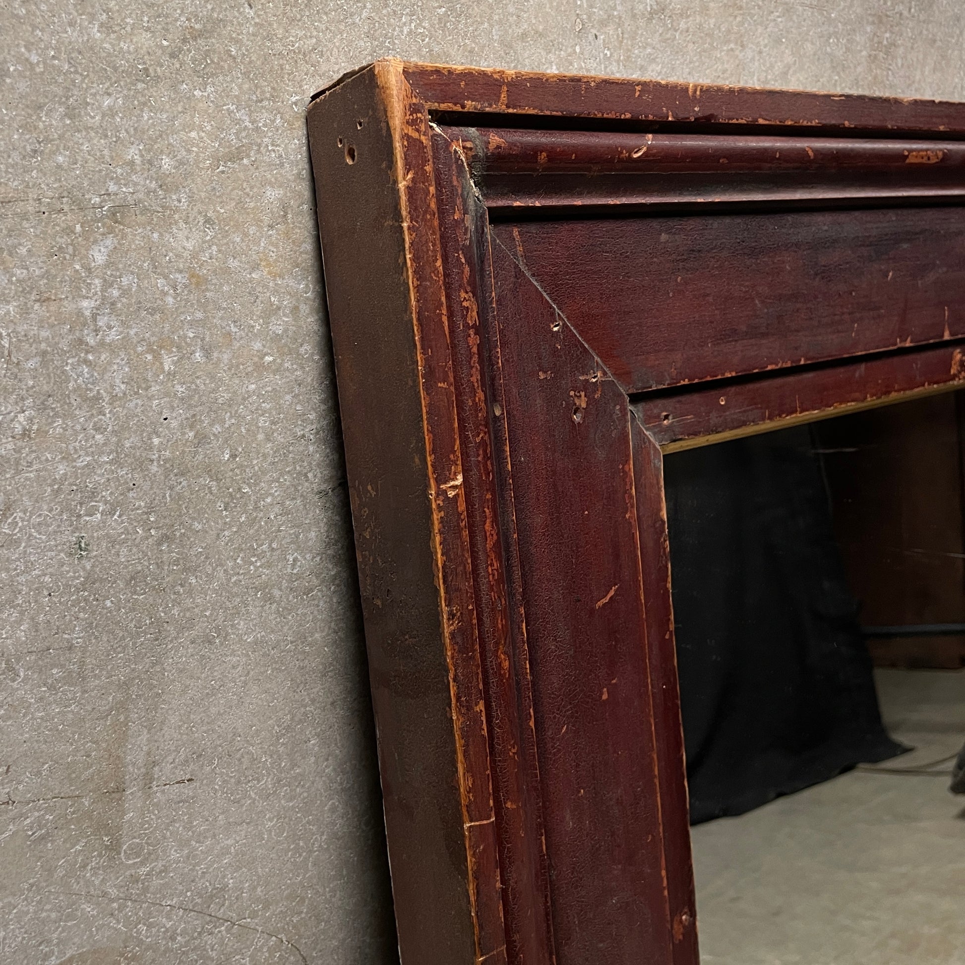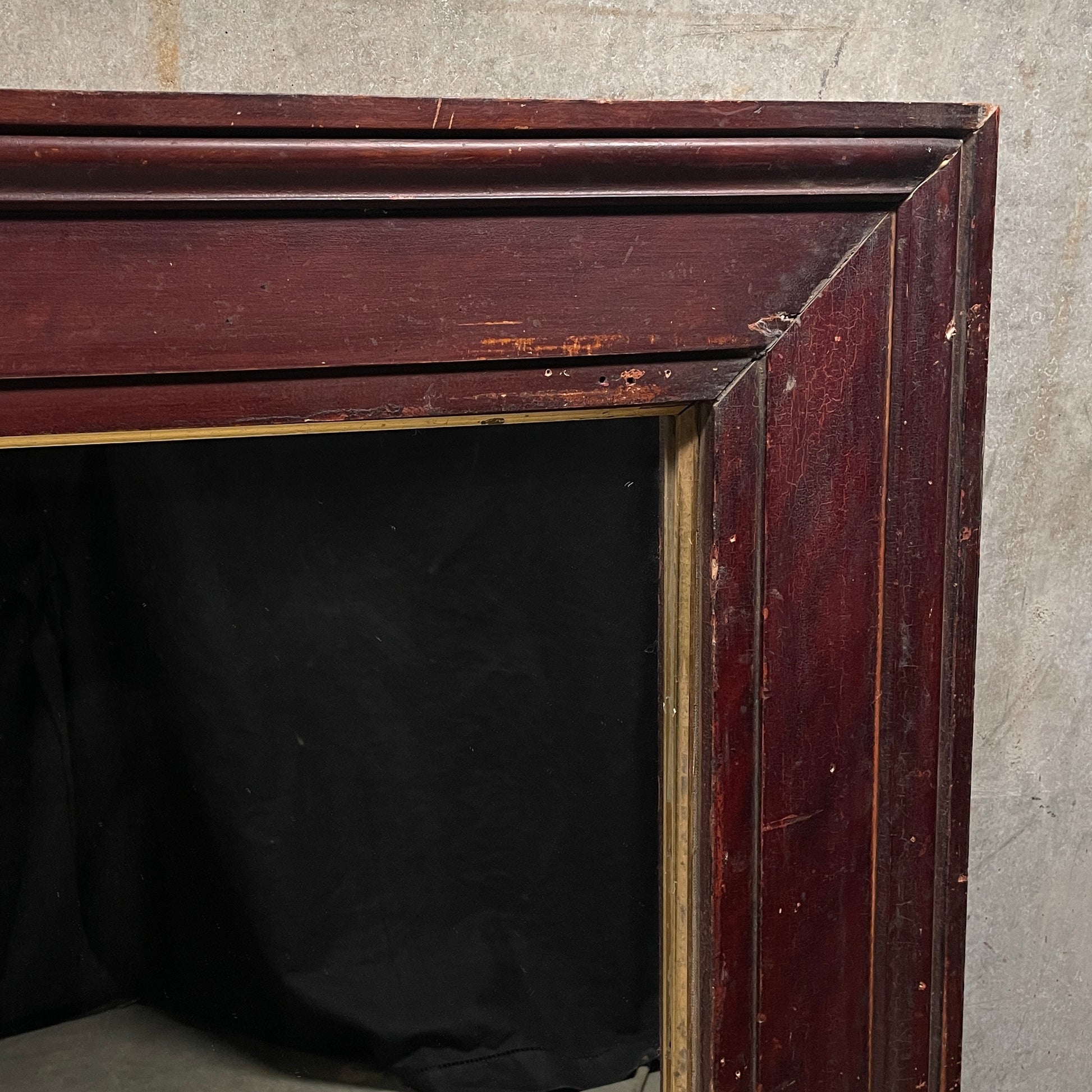 We acquired a group of very nice trim work from a 1890 building in upper NY the finish is showing perfect patina with very nice details. In this example an old mirror was used in the process. Only one left in stock.