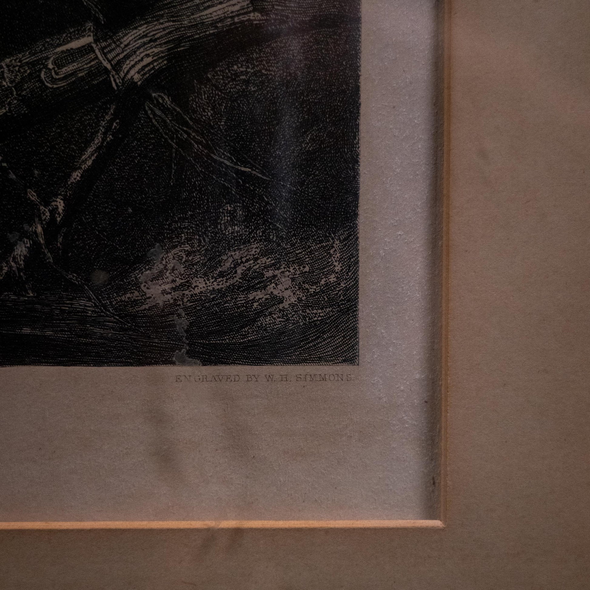 19th c English W. H SIMMONS ETCHING in birdseye frame