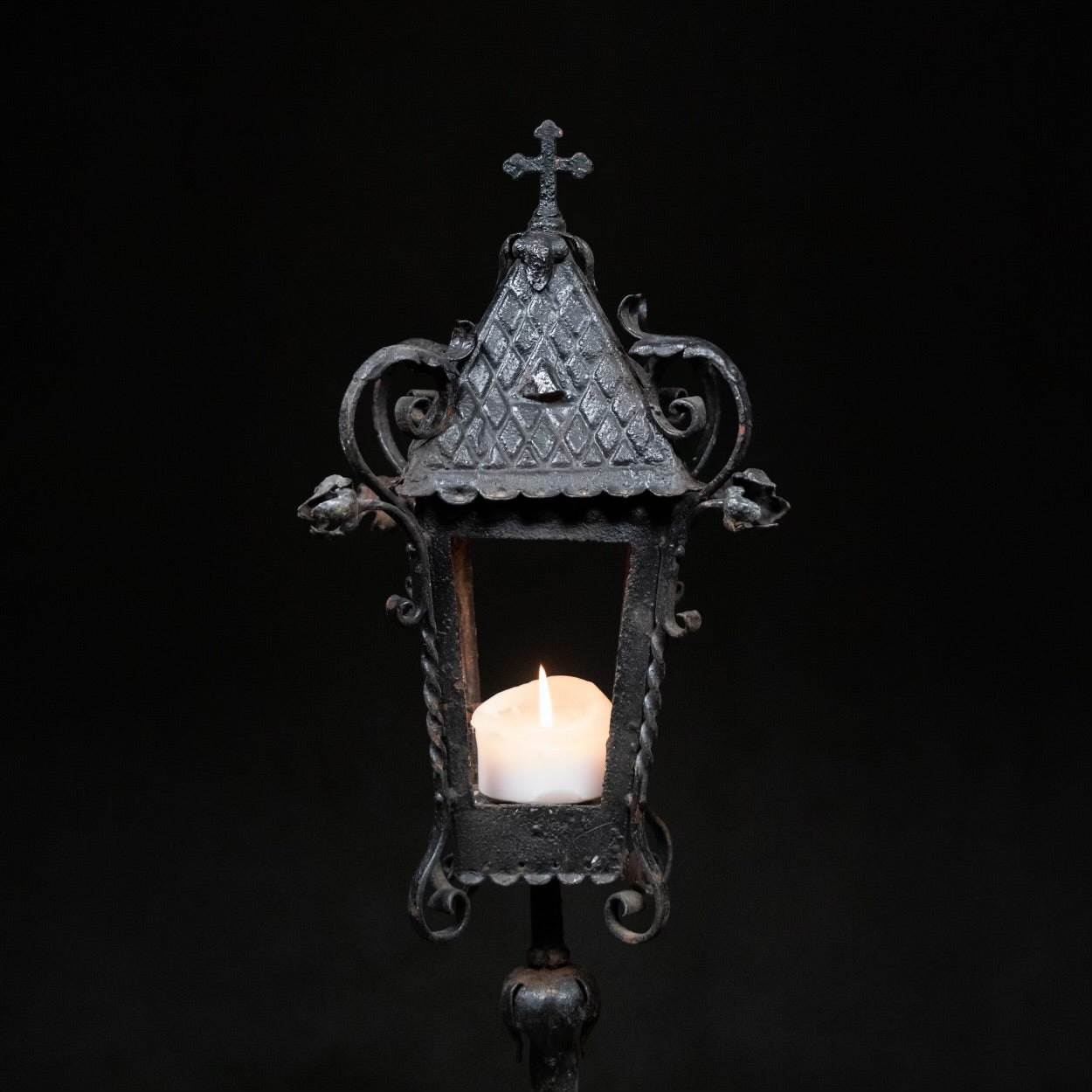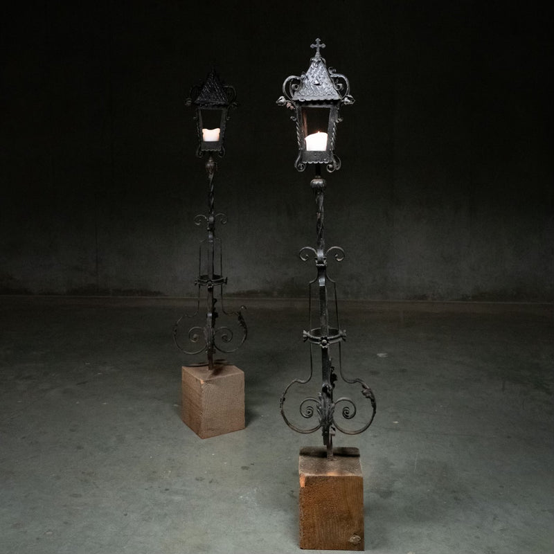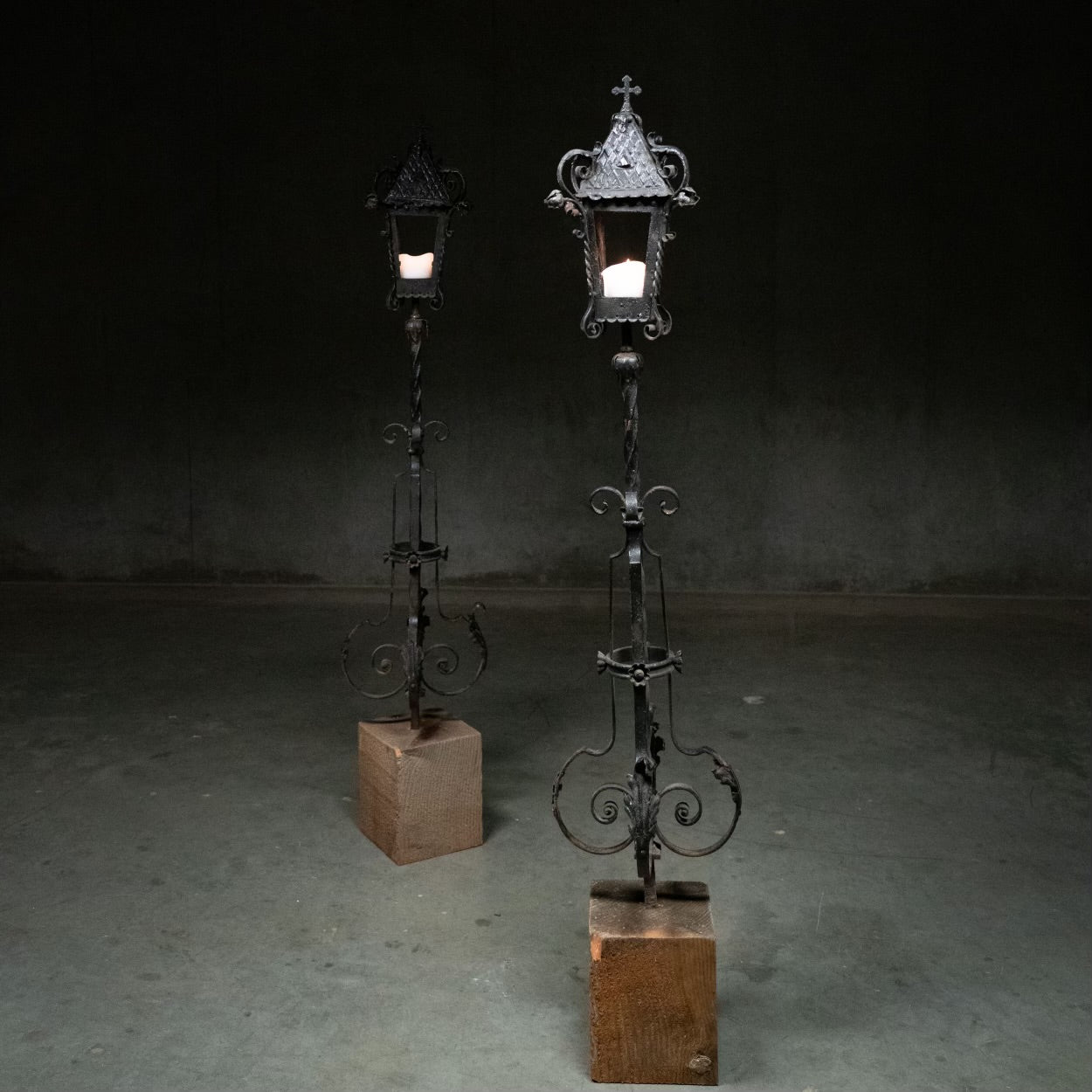 19th Century Wrought Iron Standard Religious Gothic Lanterns