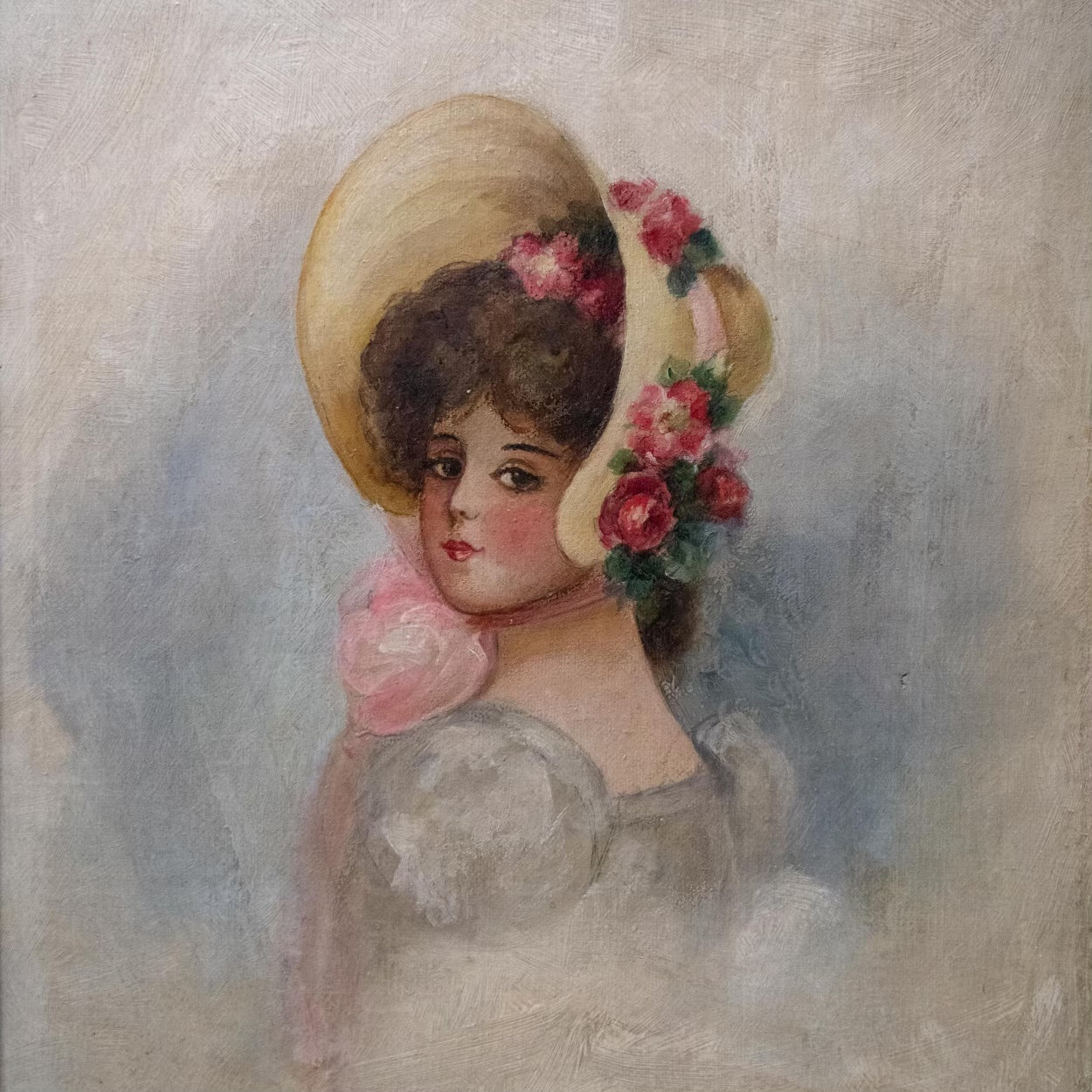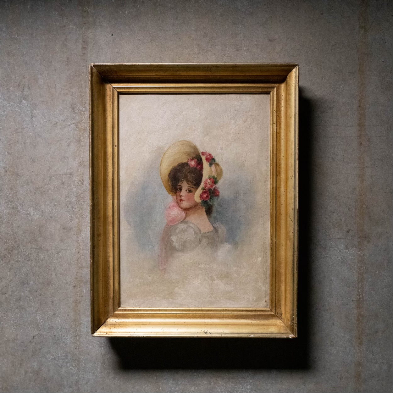 A beautiful small unsigned oils of a young lane , well executed .in a tight original frame .. Found in VERMONT.