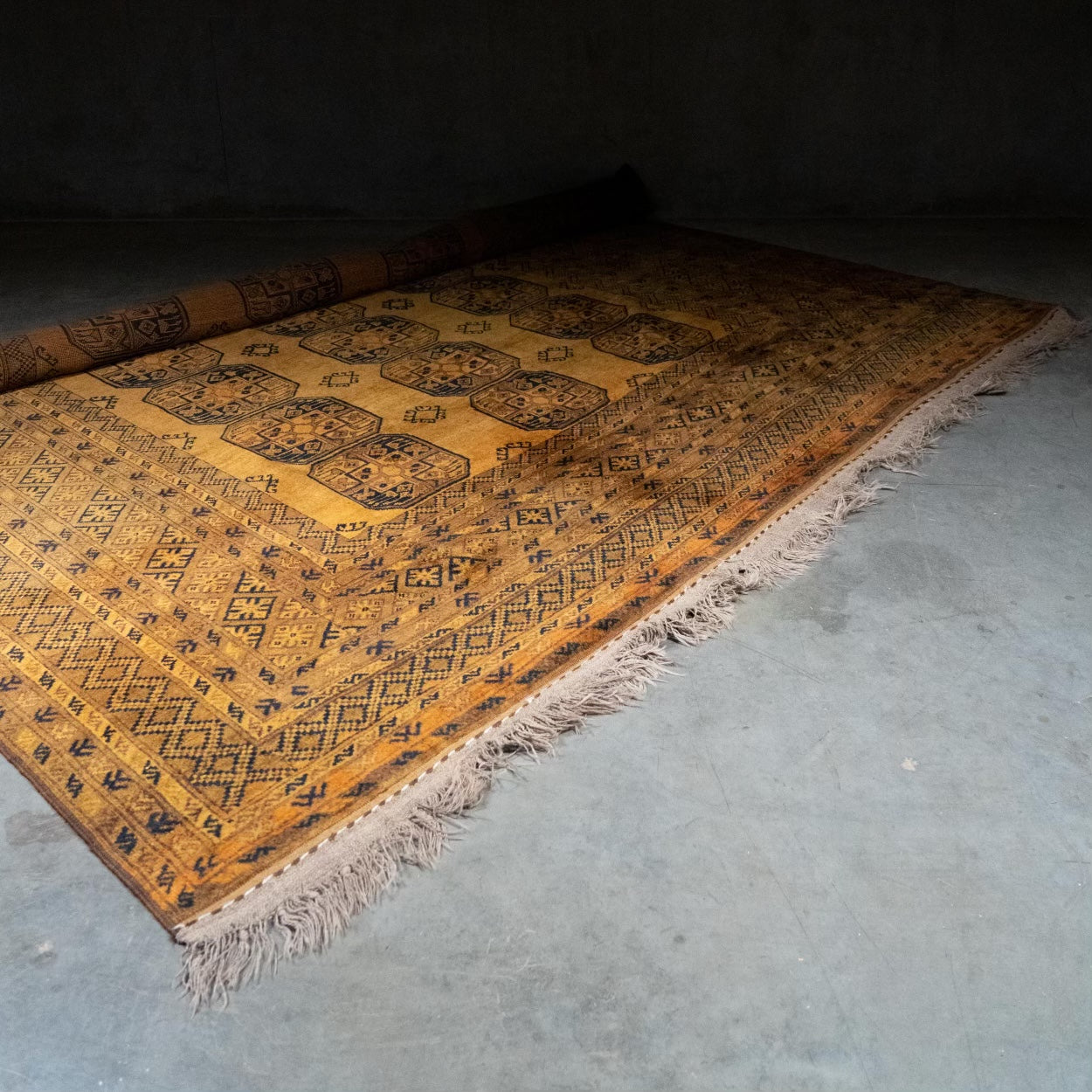 A beautiful tight woven hand made carpet in Afghan gold paternal . Excellent condition.