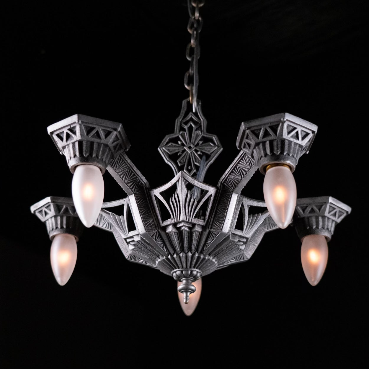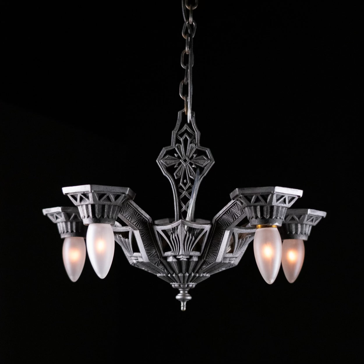 A fine example rewired and CSA approved light fixture found in Chicago. This one is all original with beautiful Art Deco details.