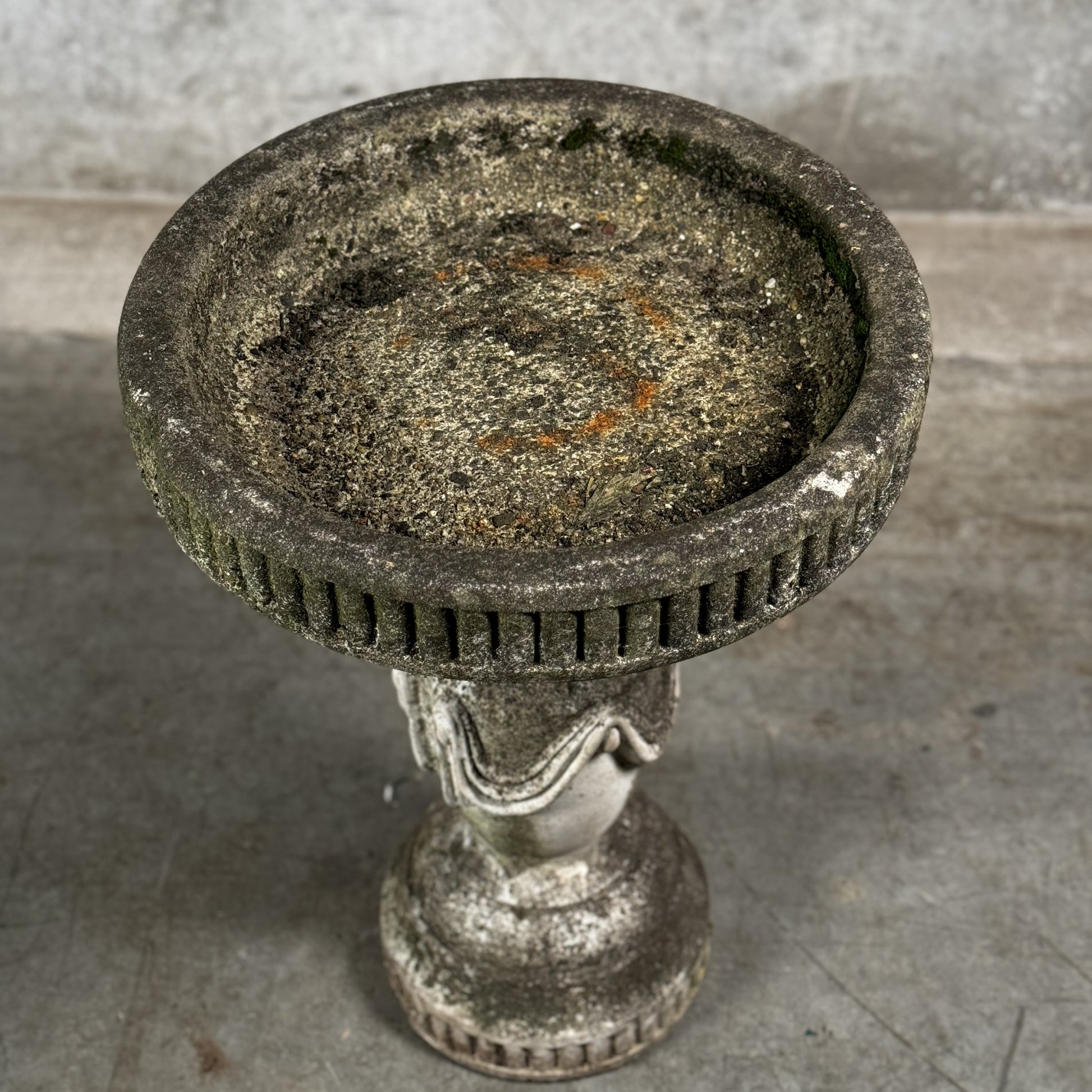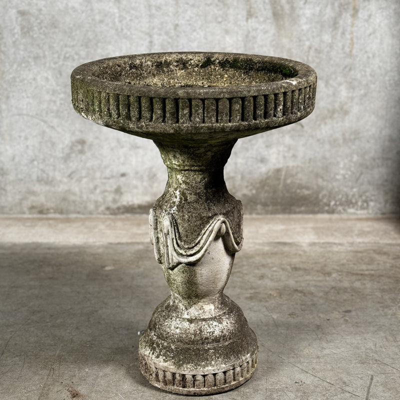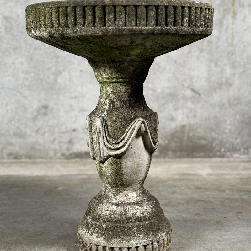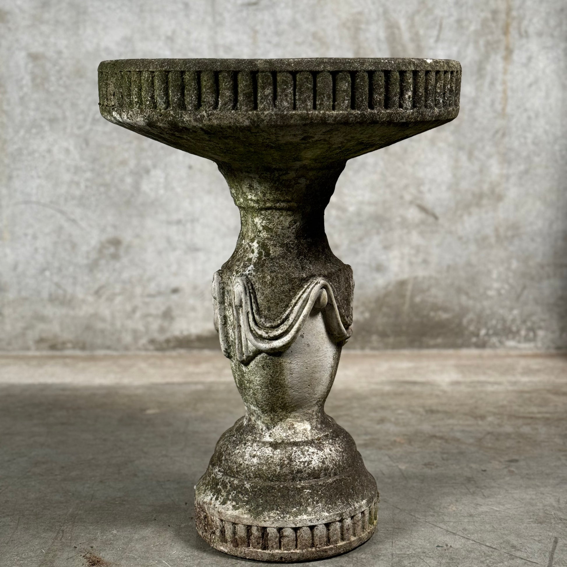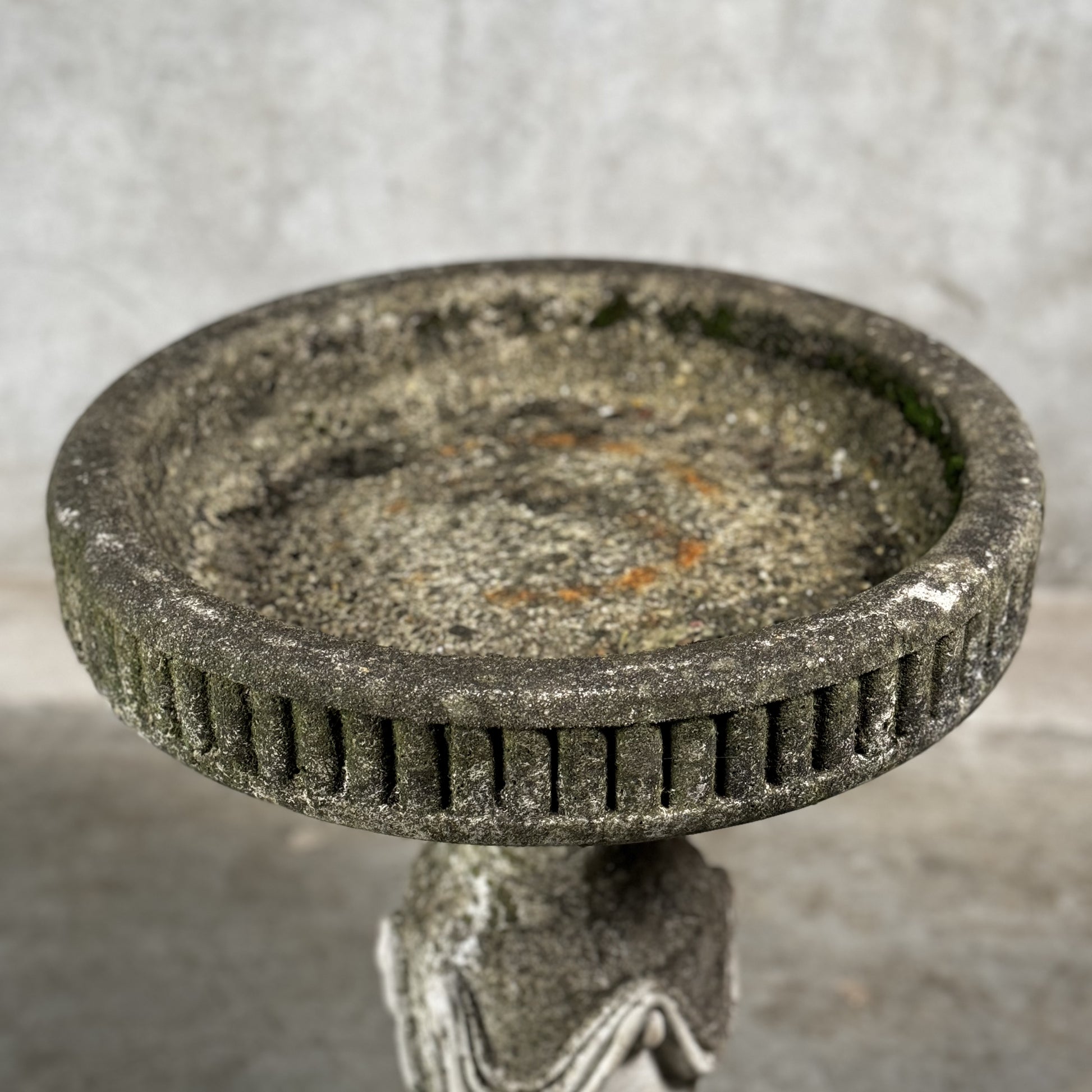 This antique cast stone garden bird bath exudes timeless beauty and rustic charm, with its weathered texture and intricate design, making it a perfect focal point for enhancing any garden or outdoor space.