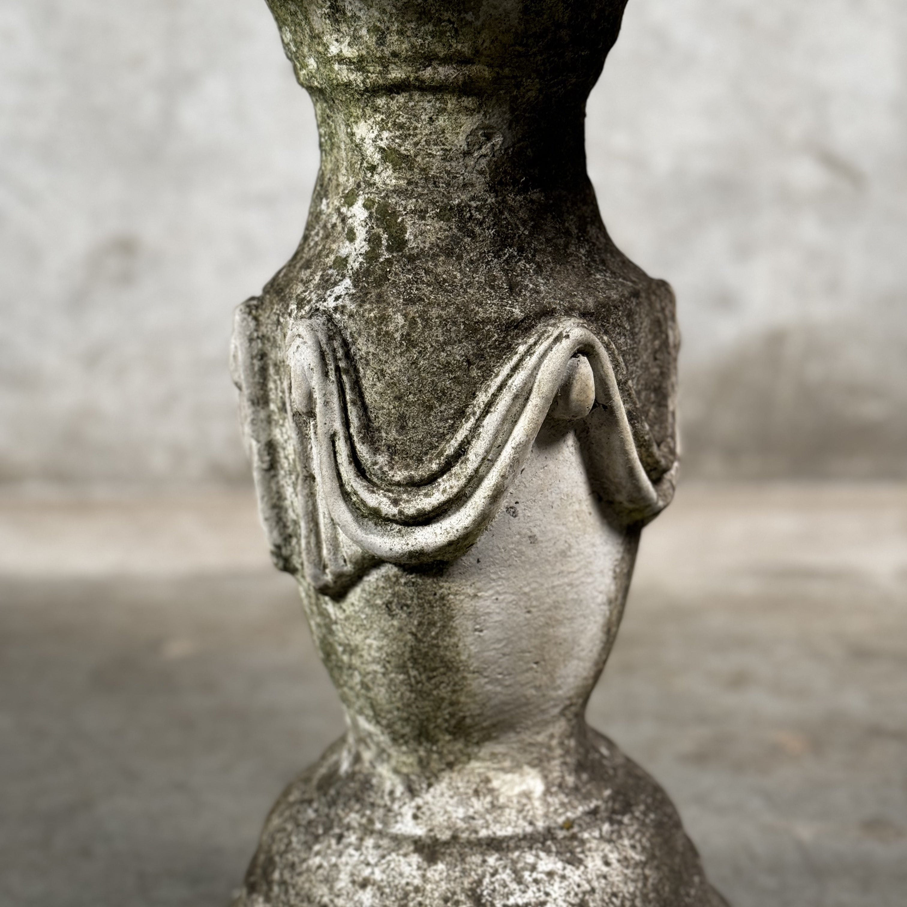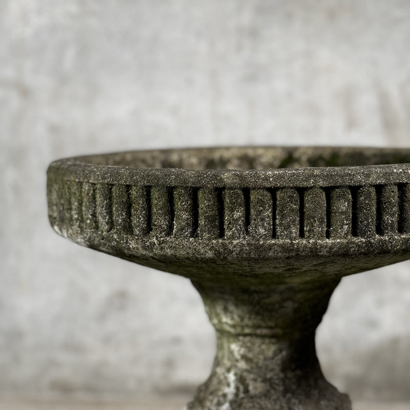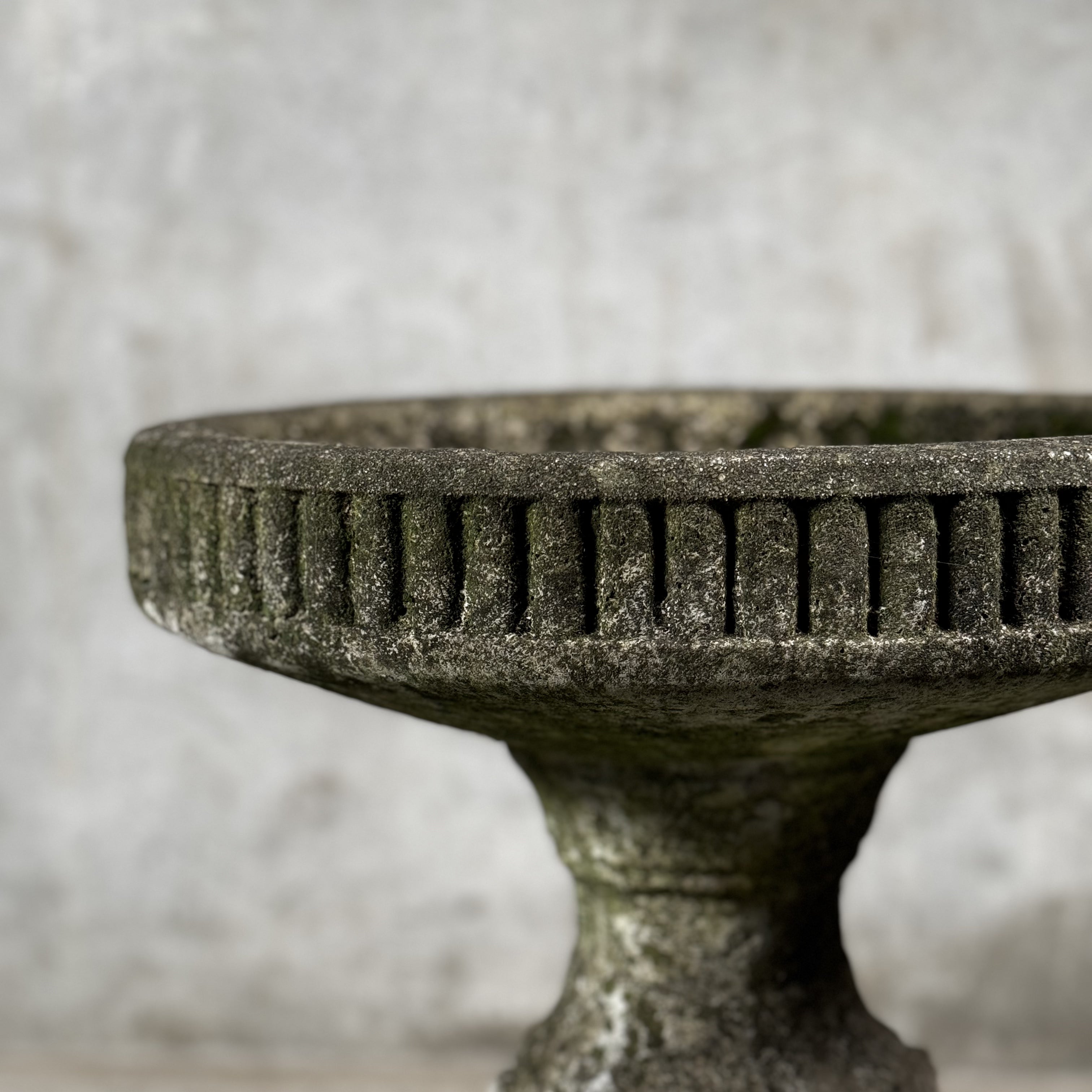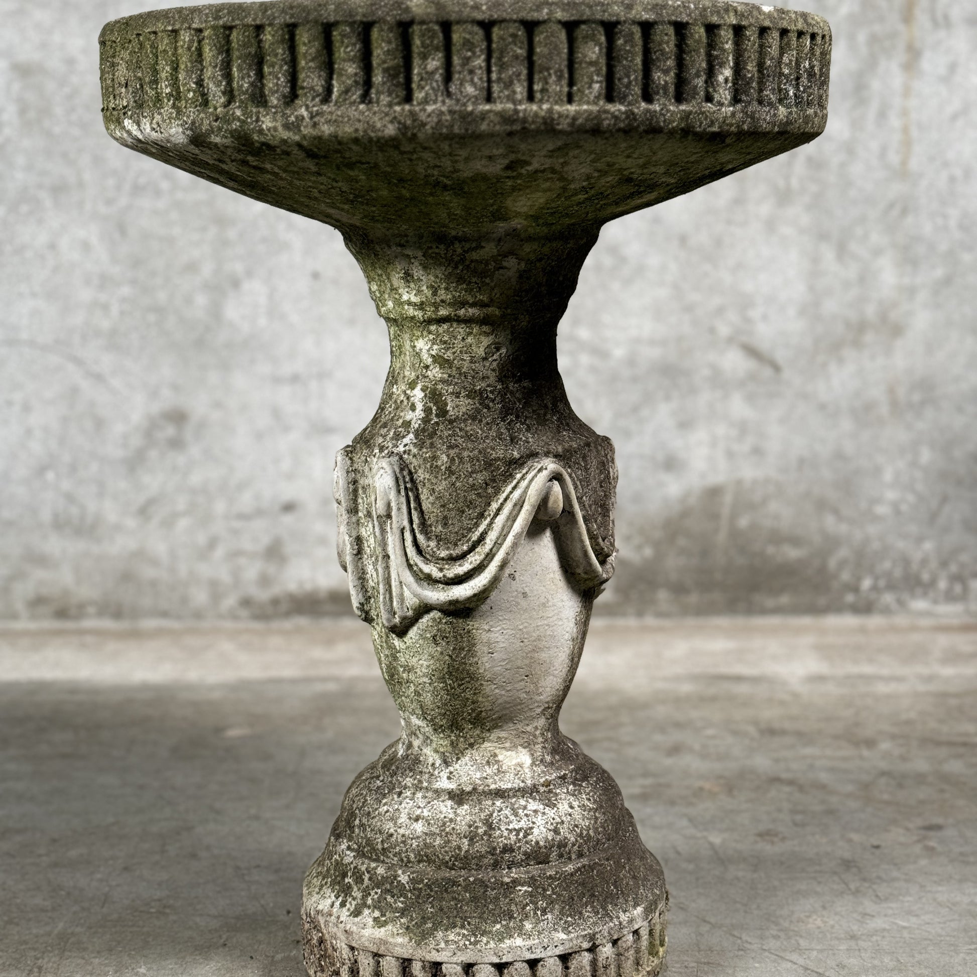 This antique cast stone garden bird bath exudes timeless beauty and rustic charm, with its weathered texture and intricate design, making it a perfect focal point for enhancing any garden or outdoor space.