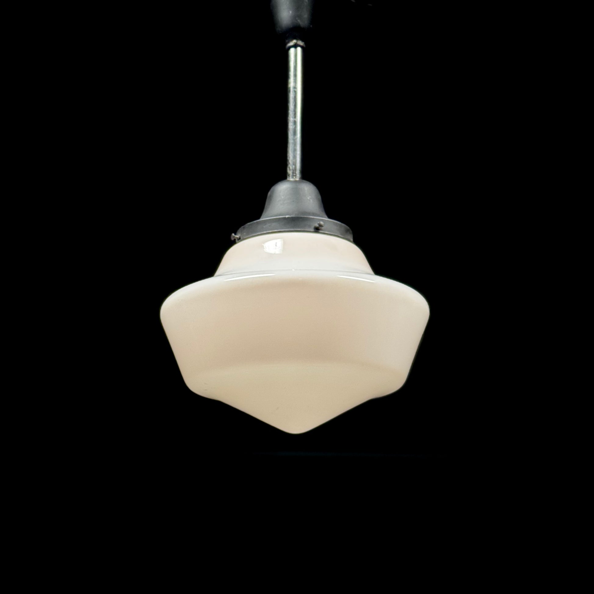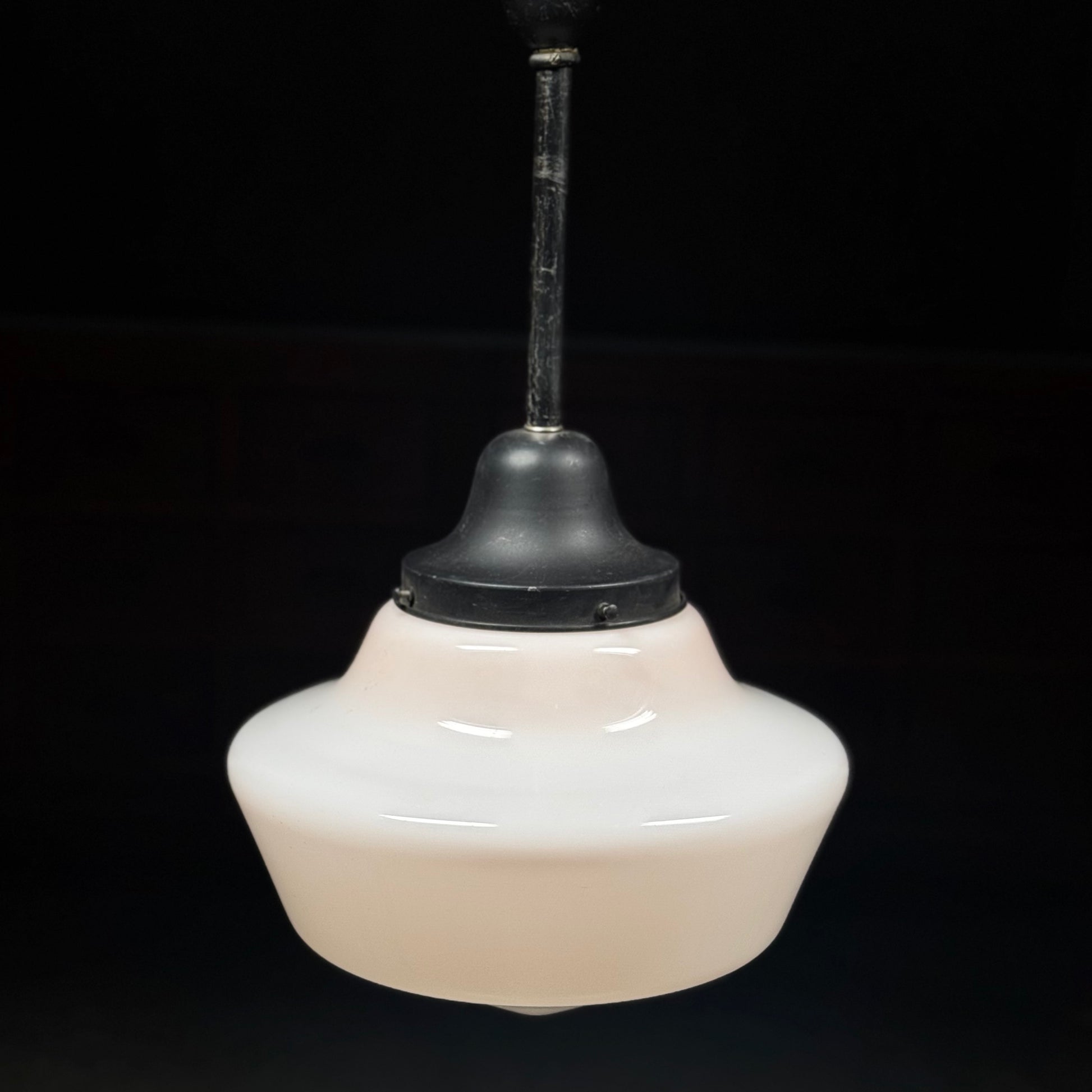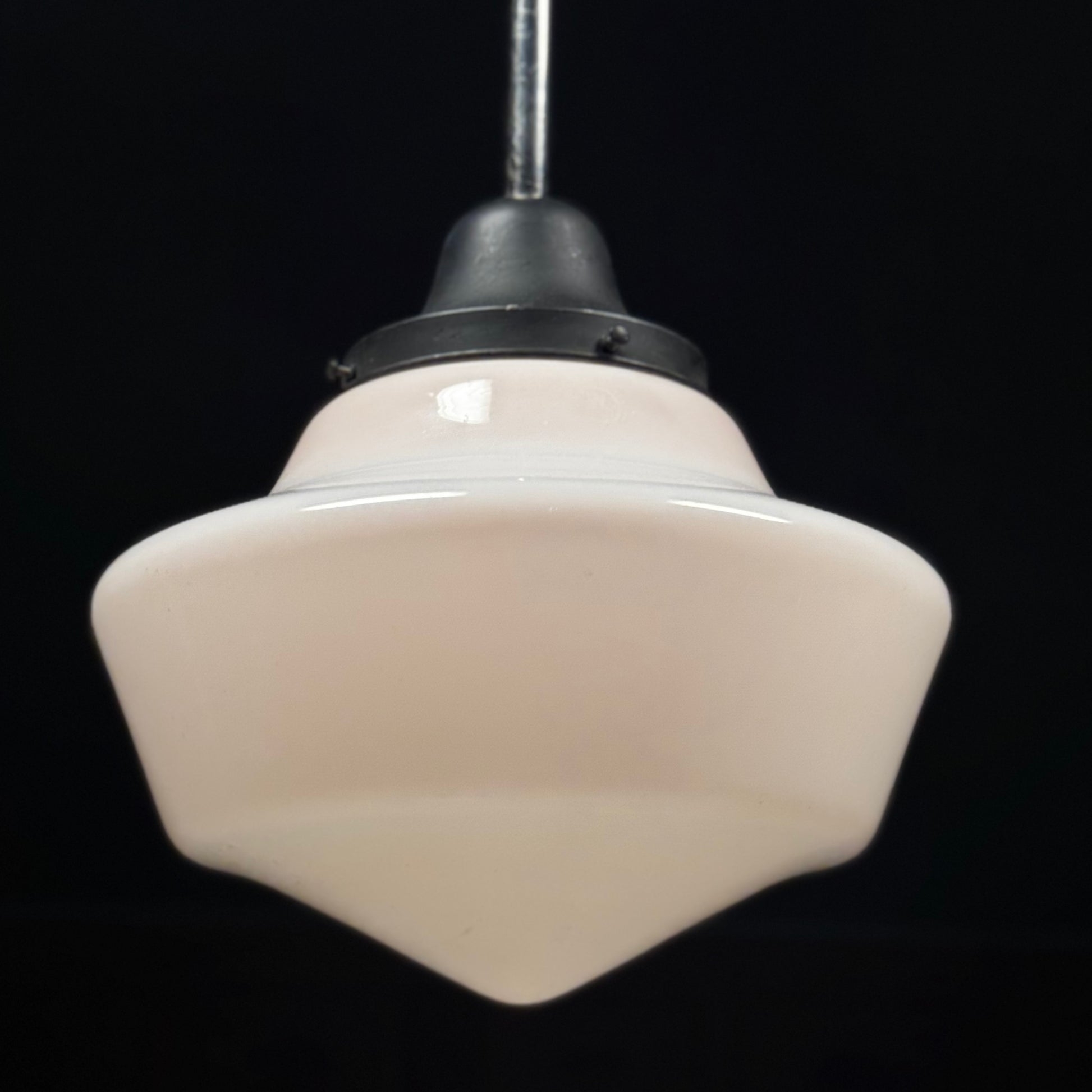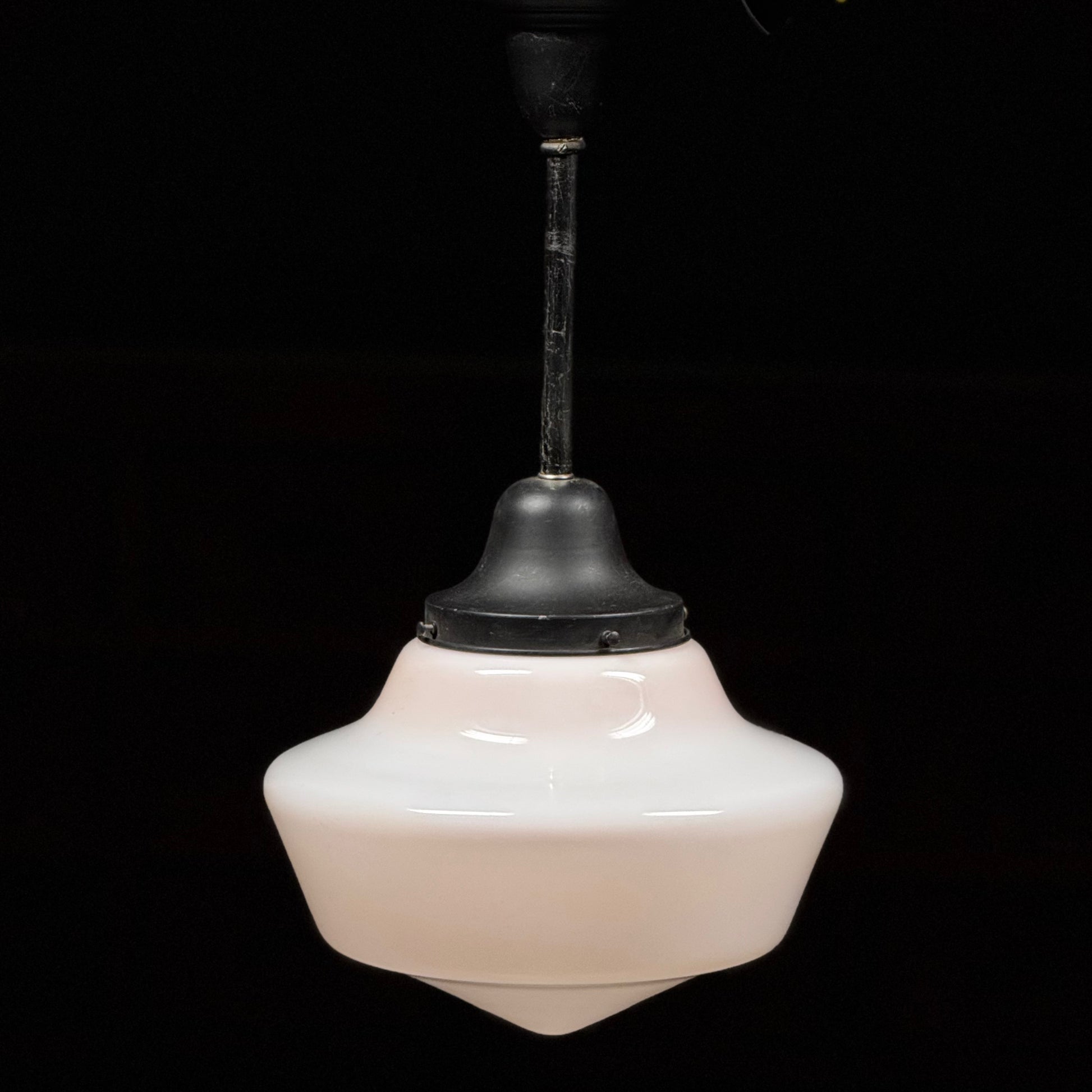 Original light C 1930, with an excellent glass shade on chrome pipe with decorative black fitter and cap.