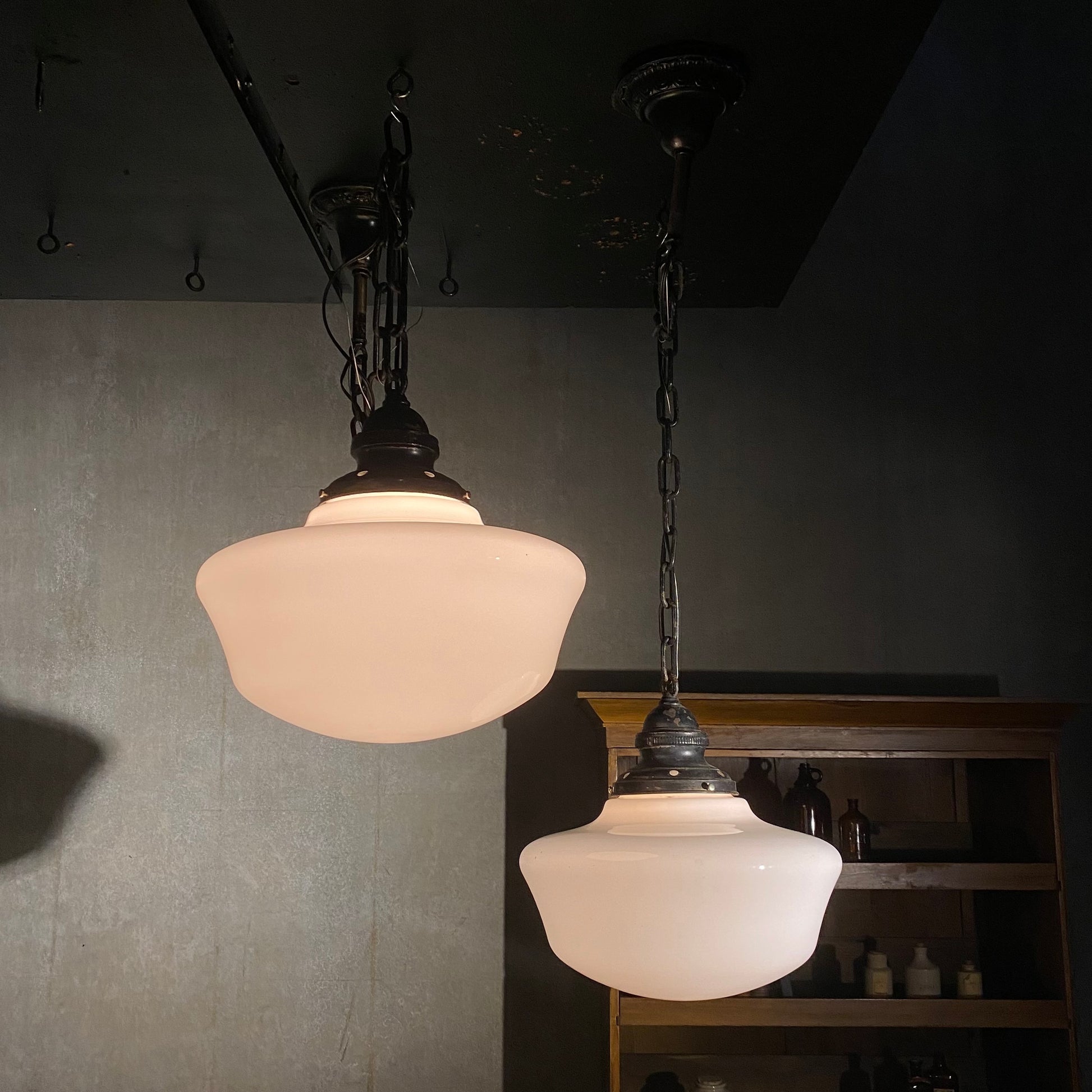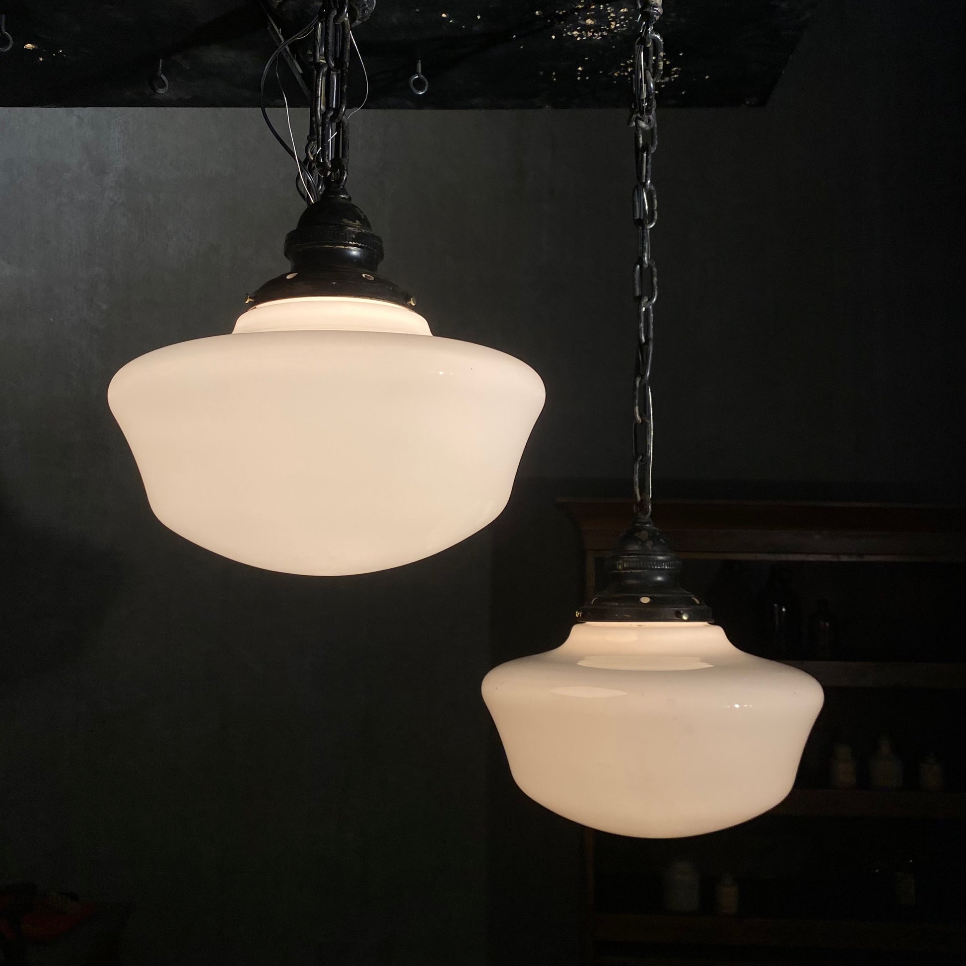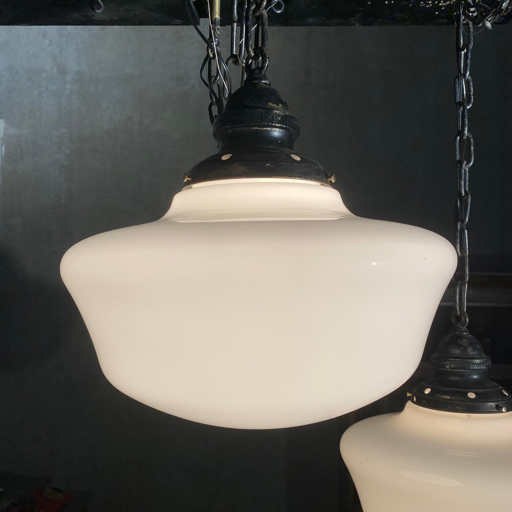 A great impressive group of large School house lights from Eastern USA, retaining black original finish. Some fitters are also period but not identical To these shown