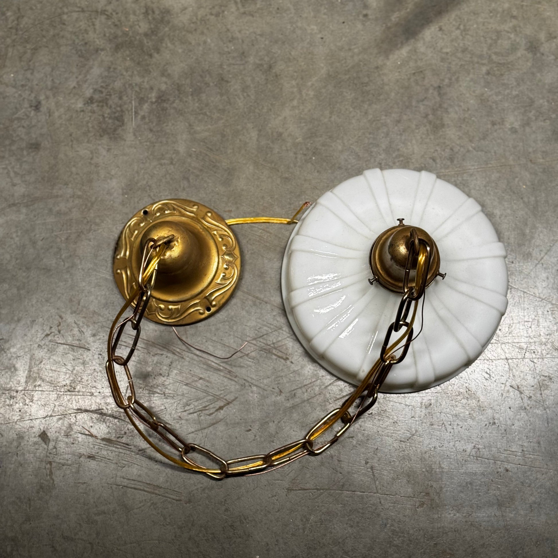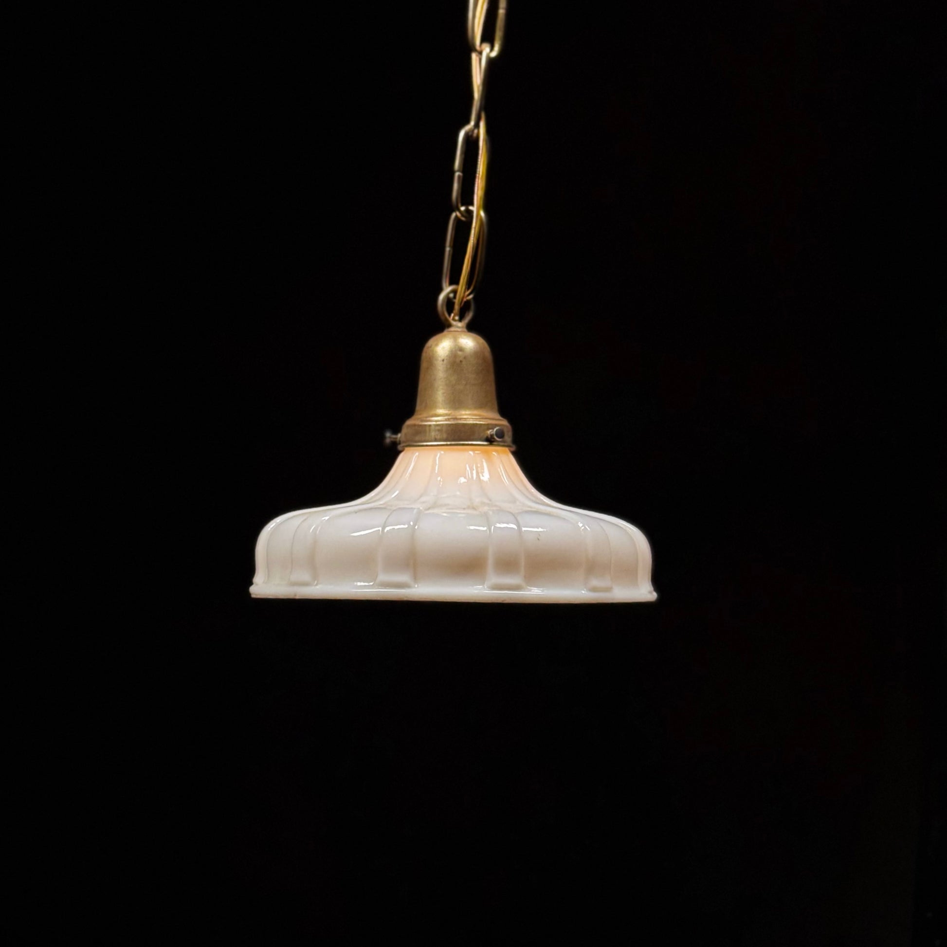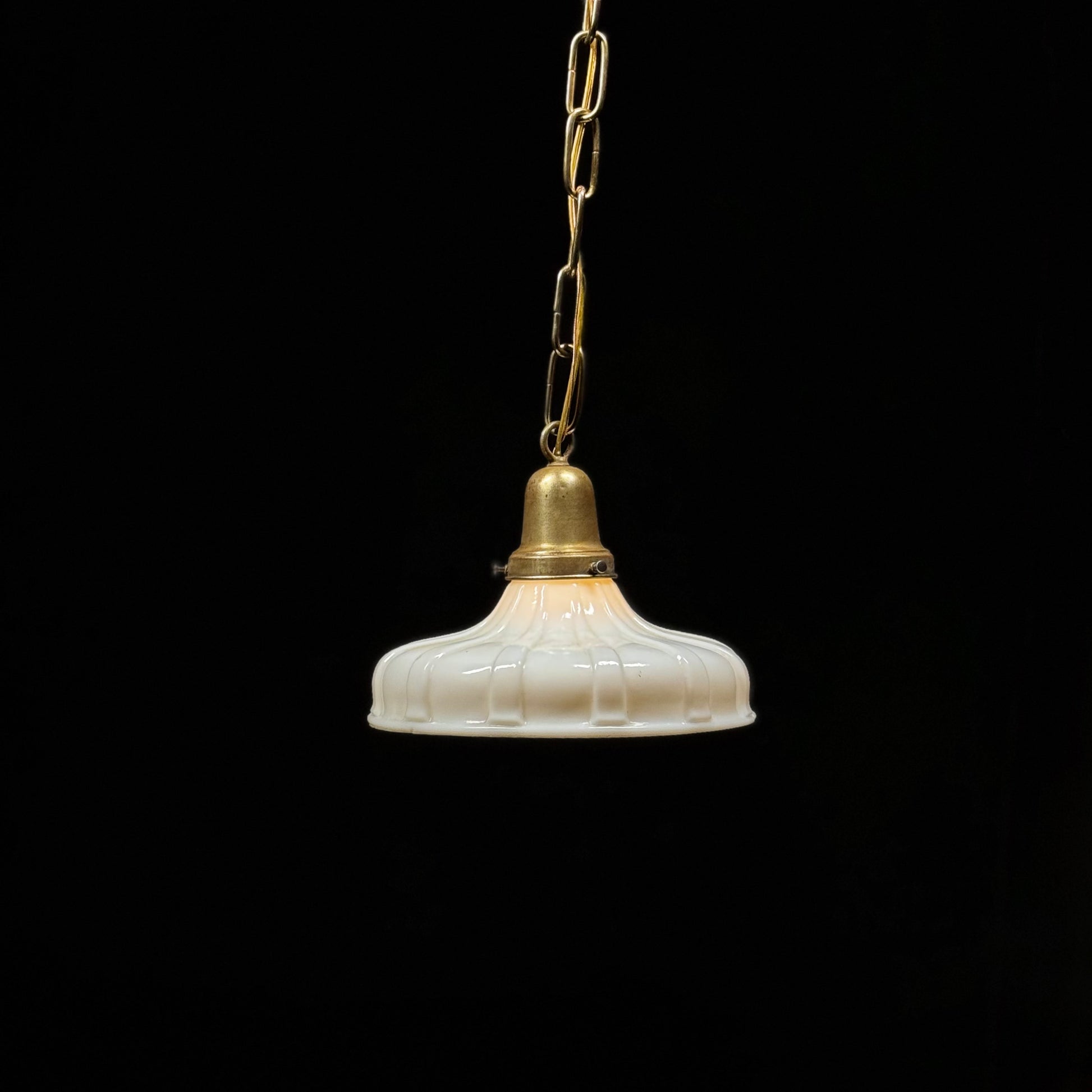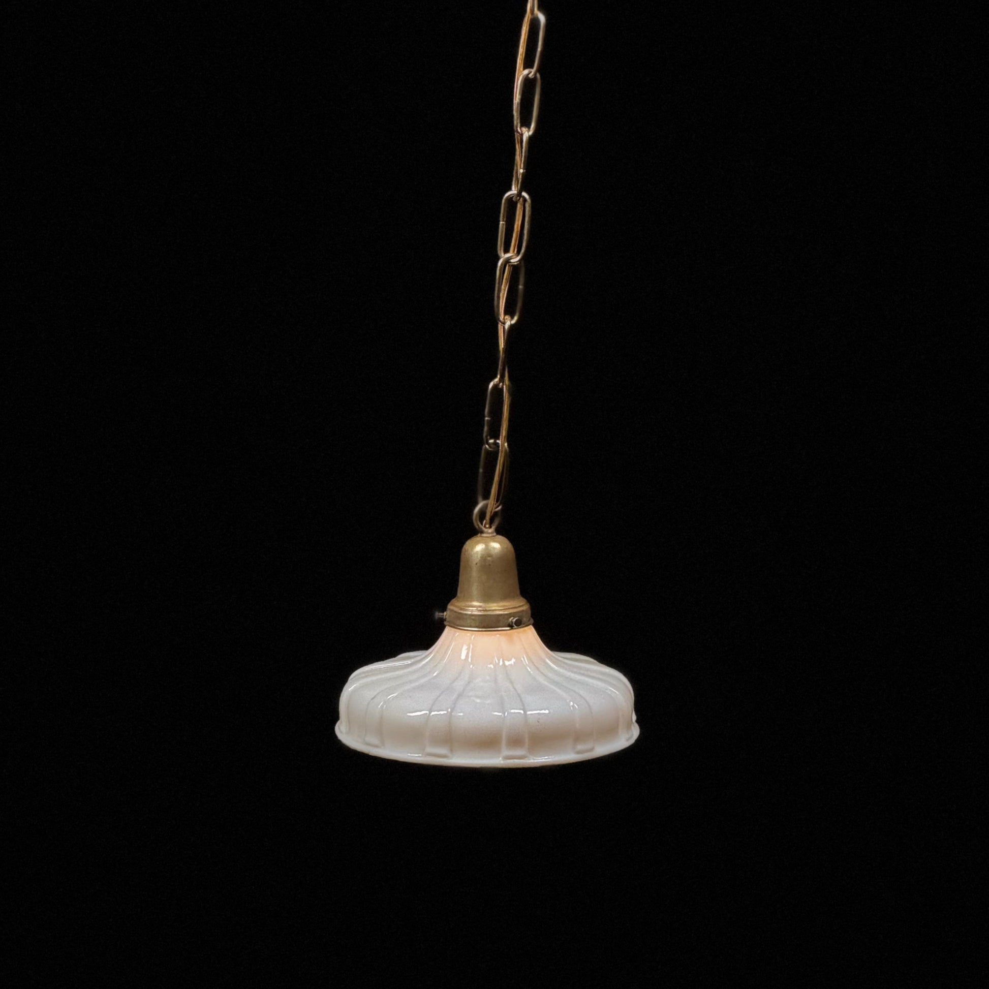 1920 Ribbed Milk Glass Brass Pendant Light