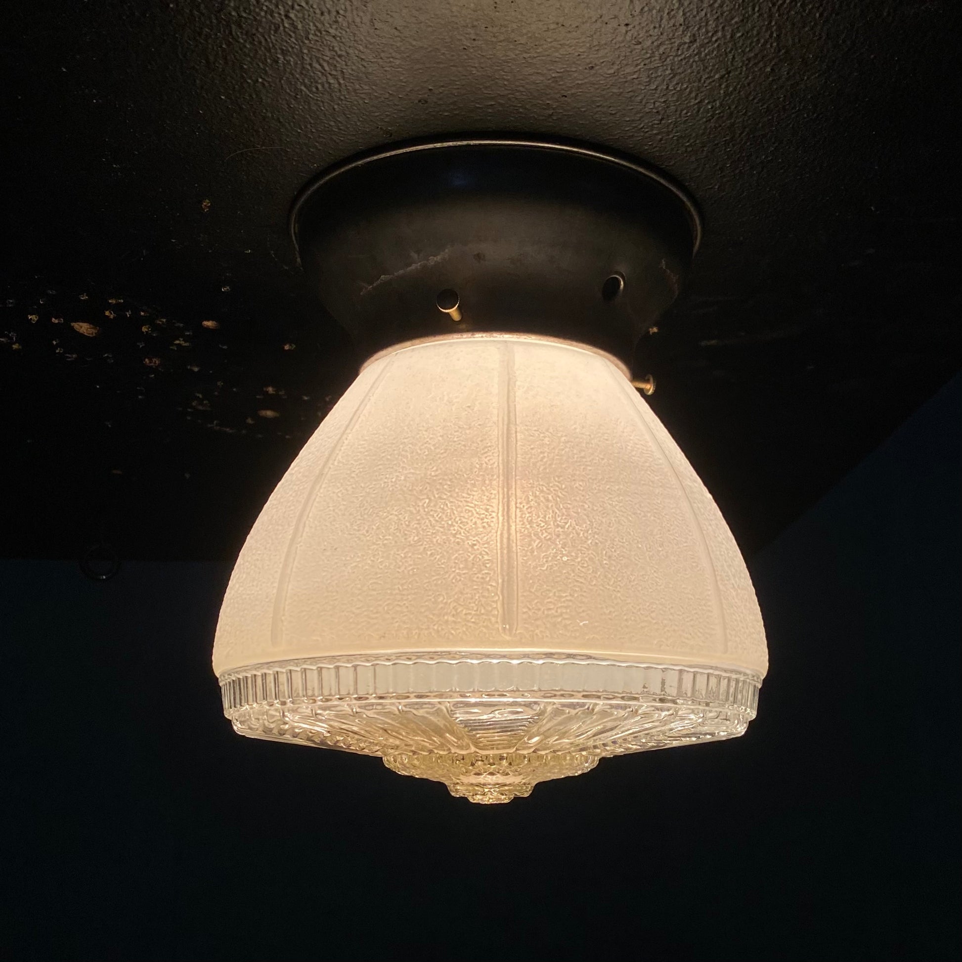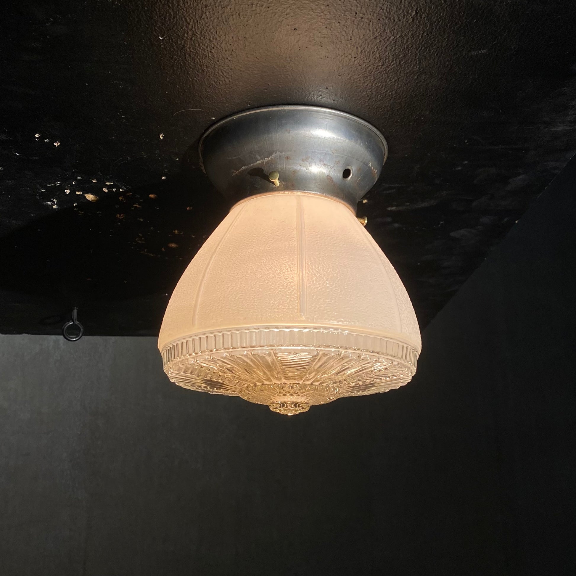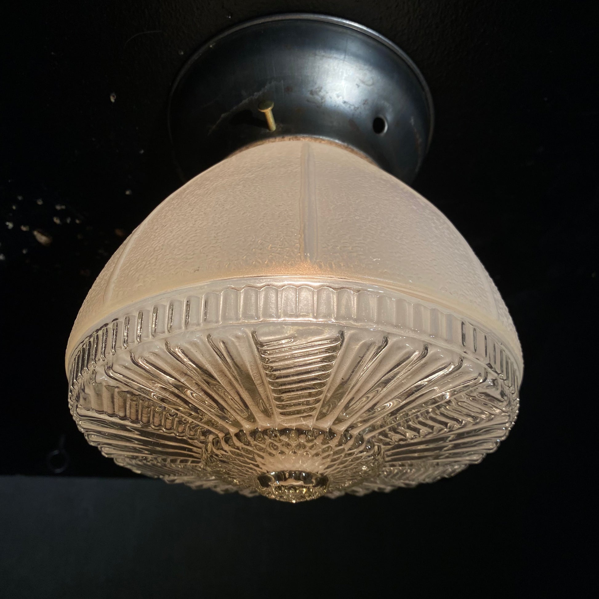 This light features beautiful textured glass & would be a lovely addition to any space.