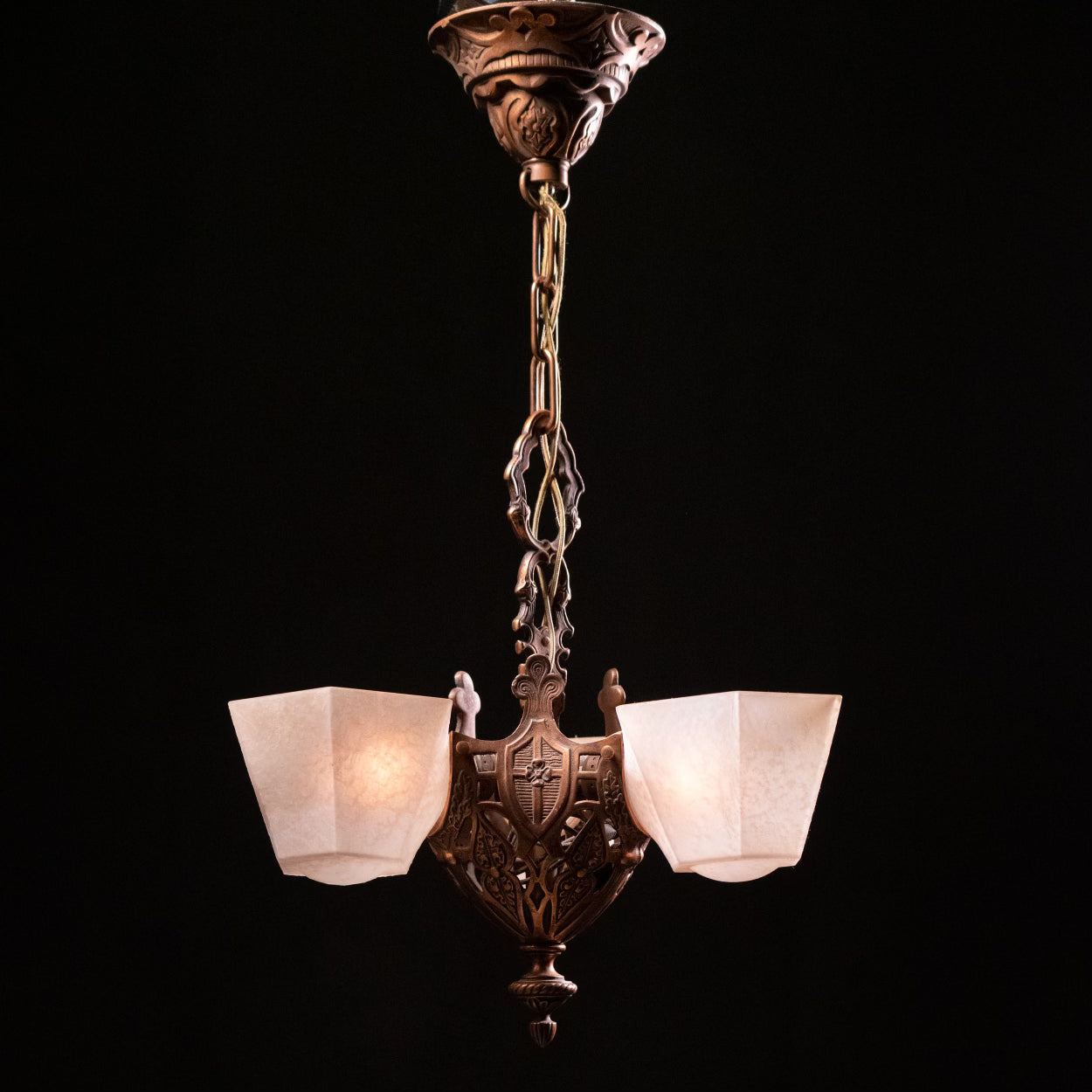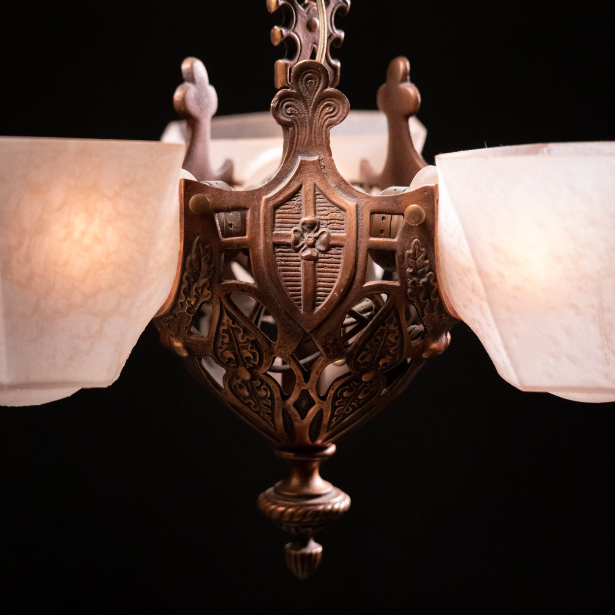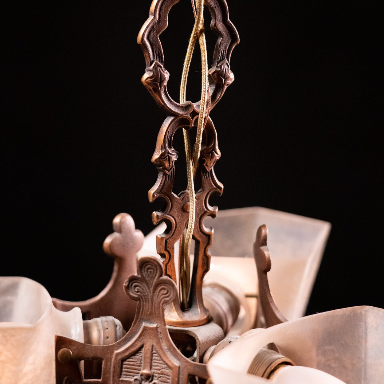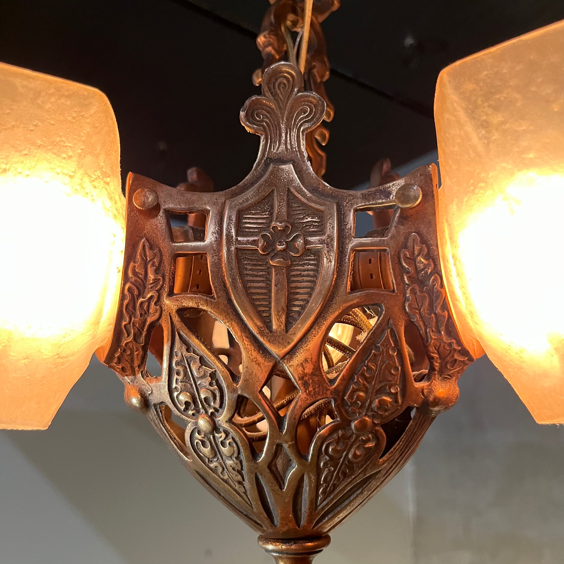 A very rare light in excellent condition with original globes and perfect patina . This light is ready for install and CSA approved.