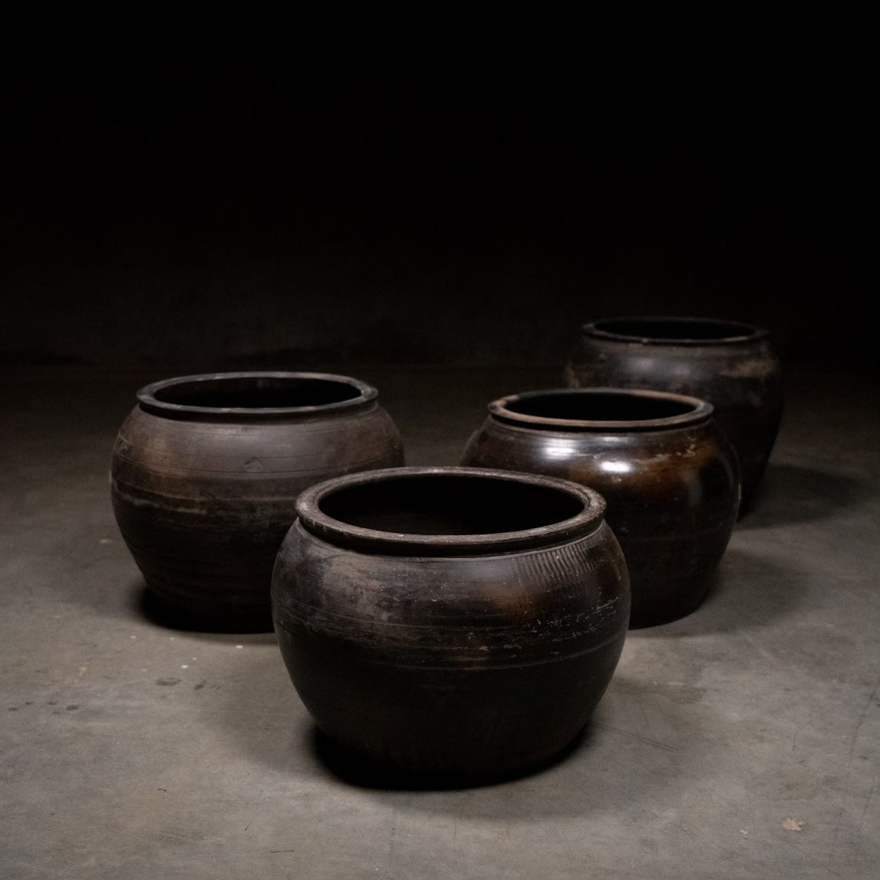 These age-old clay pots are one of our favourite things . They are from Shanxi province in China’s northern countryside and distinctive of the region because of their form and deep charcoal colour. No two Shanxi pots will ever be the same and will always show slight variations in their finish and patina.