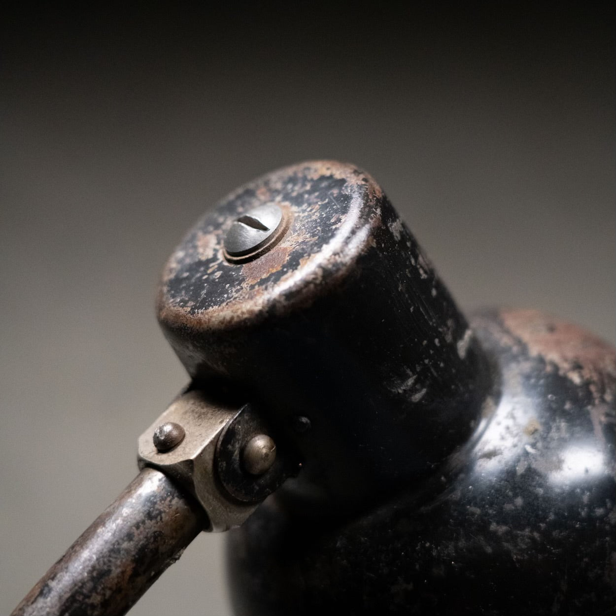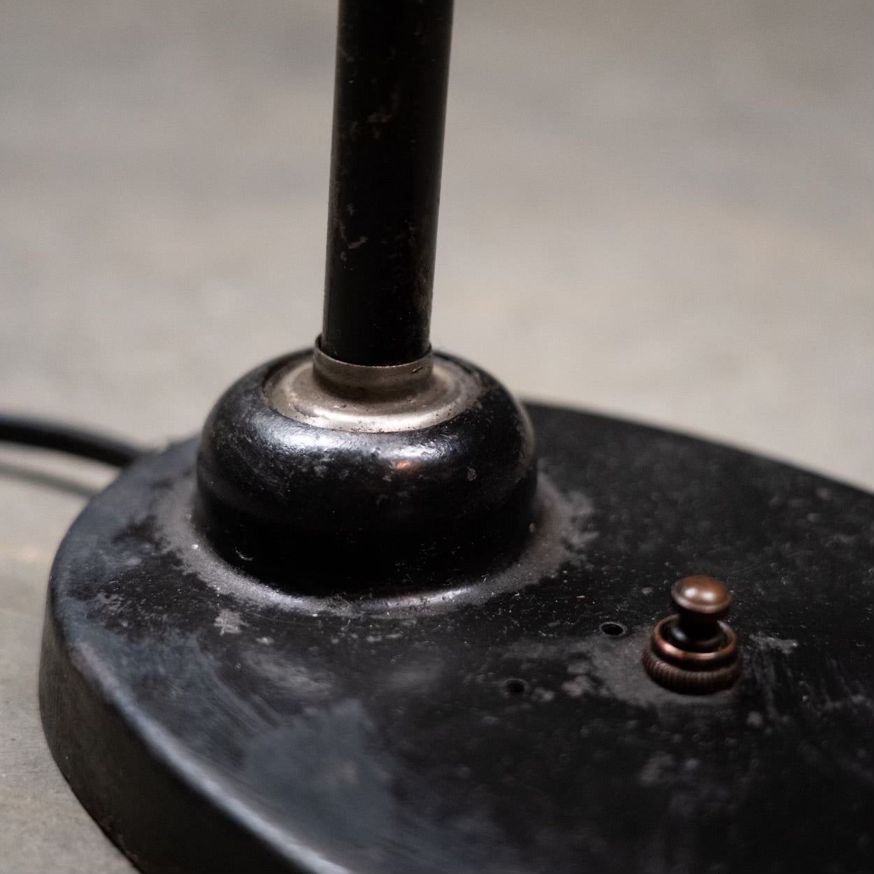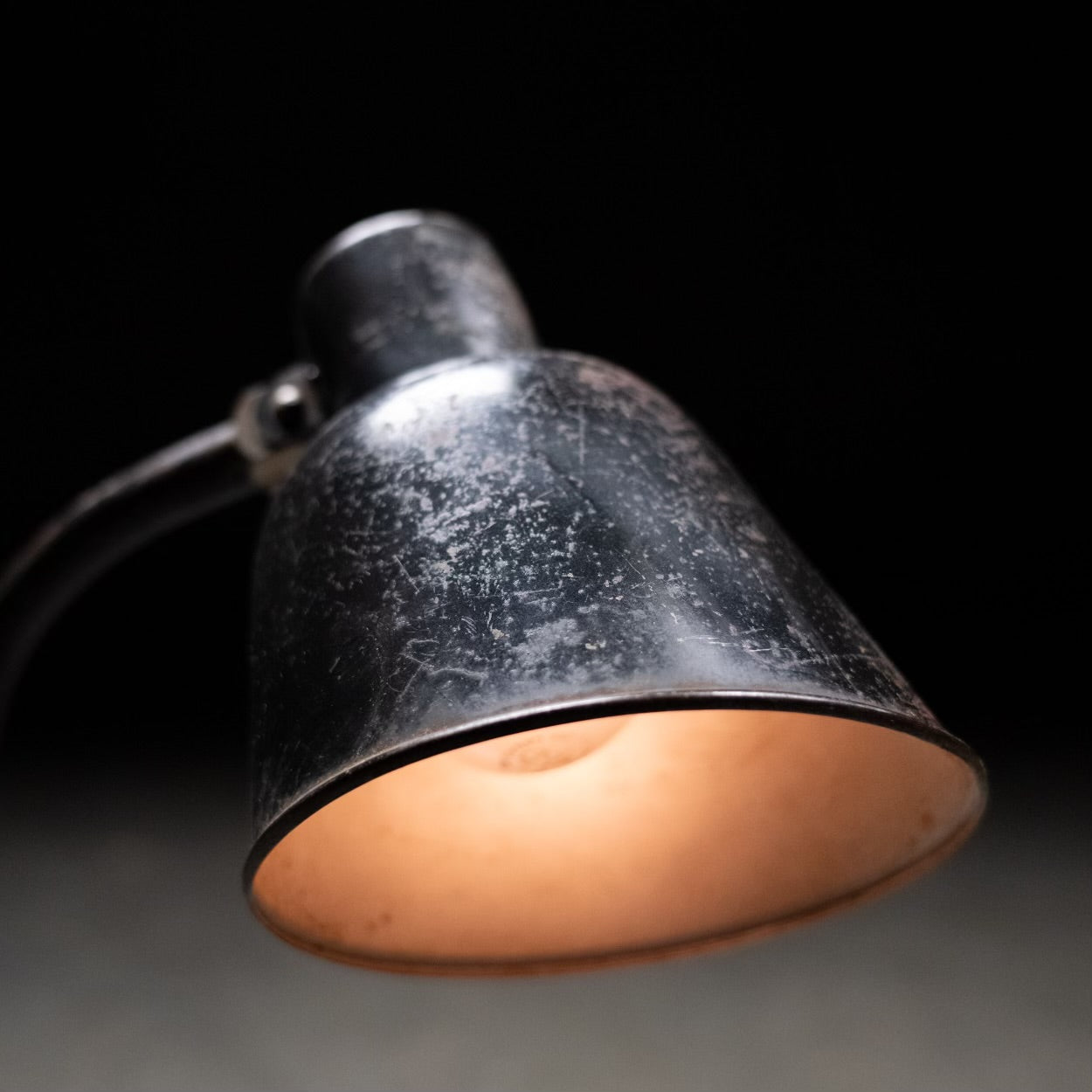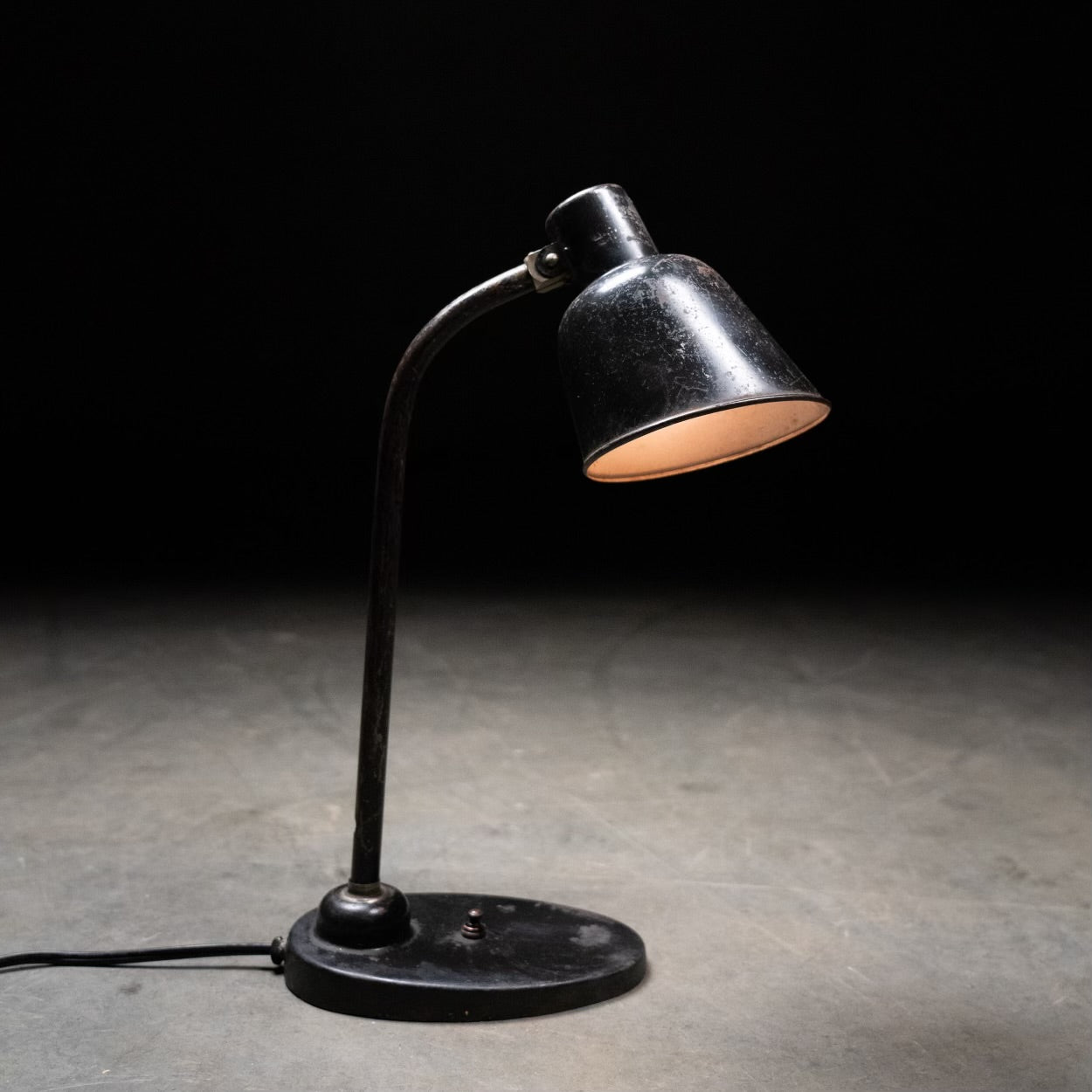 Vintage 1930s BUR Model 2700 table lamp designed by famous BAUHAUS designer Christian Dell For BUR Bunte & Remmler Lighting Company Germany. It features a black iron body with adjustable arm and shade. The socket requires standard Bulbs .