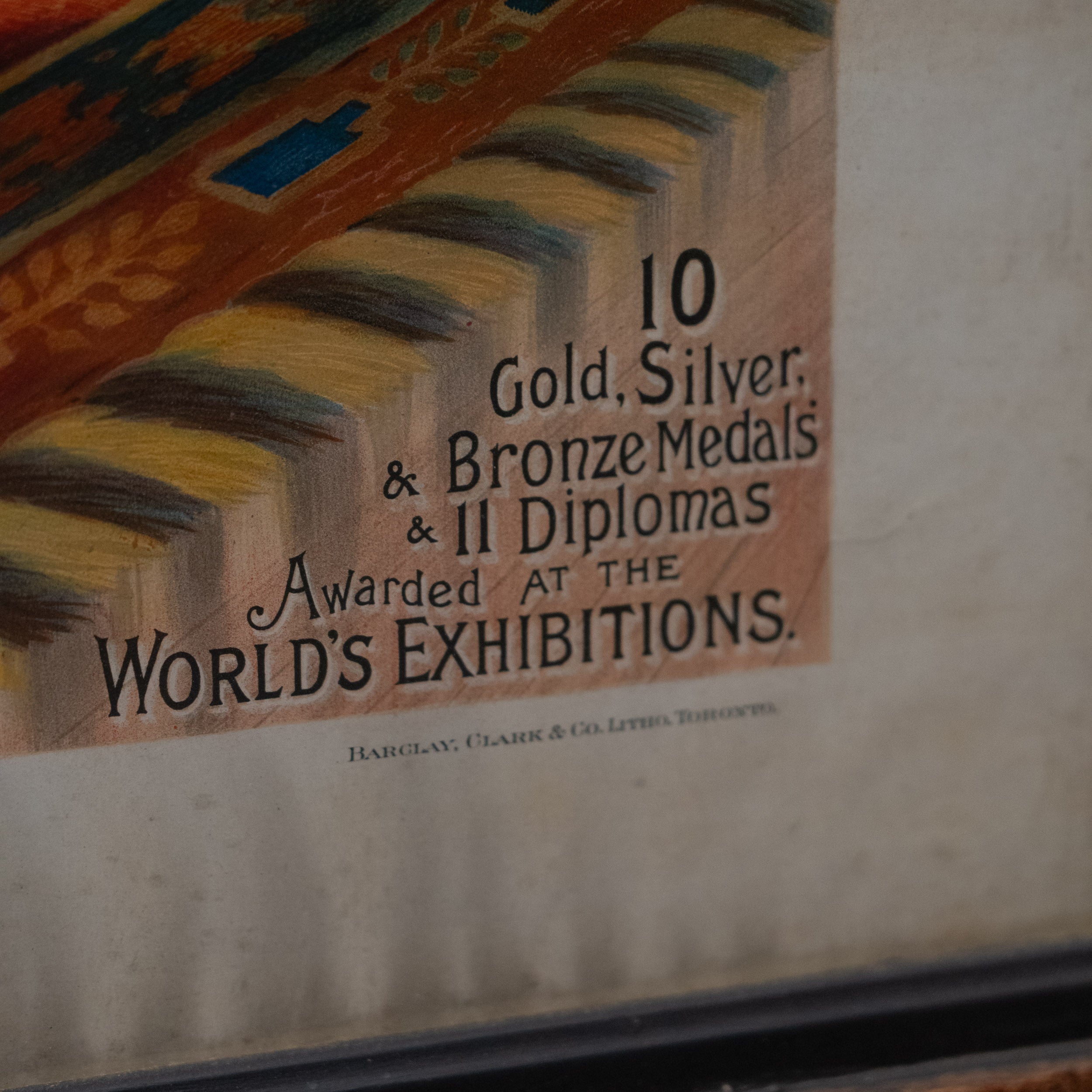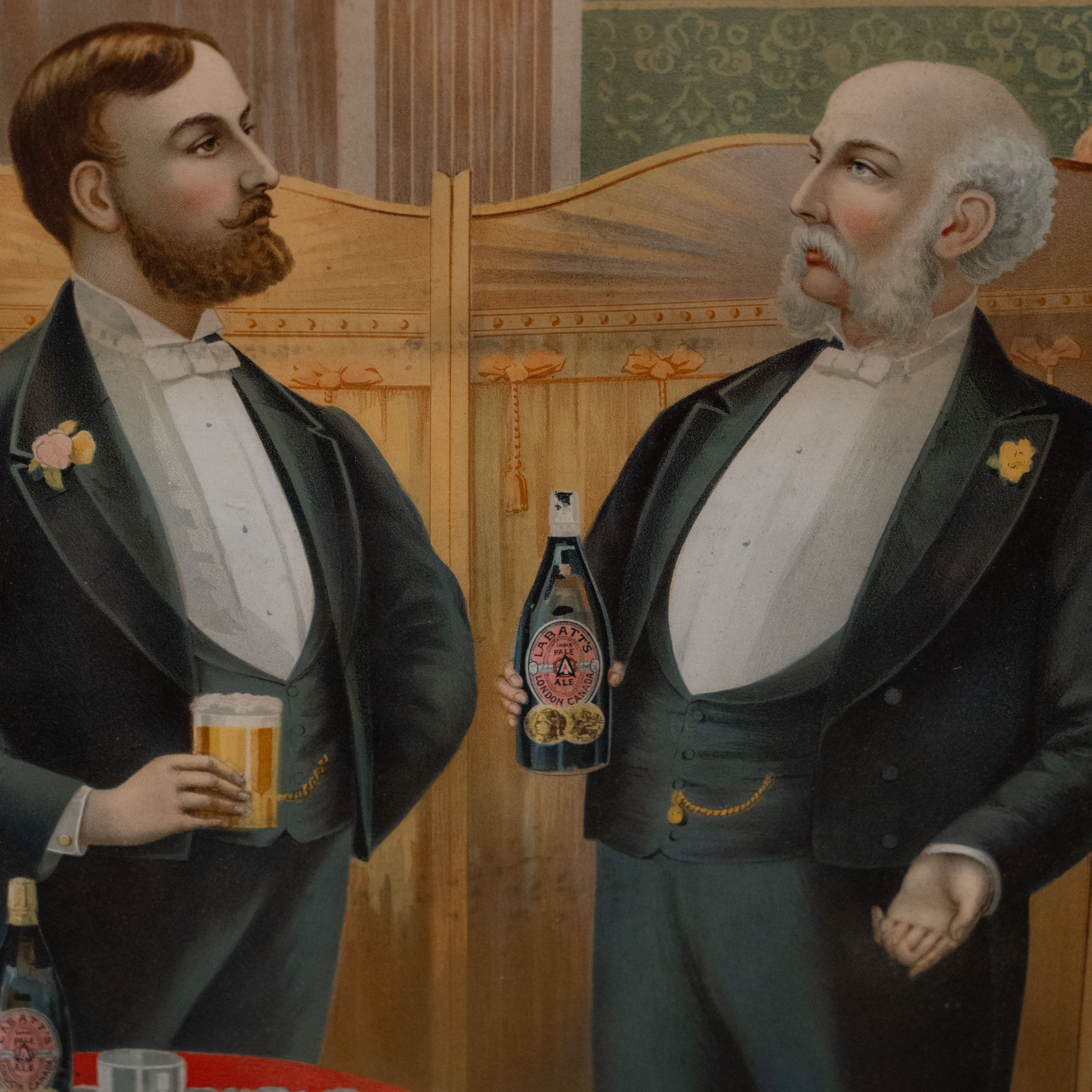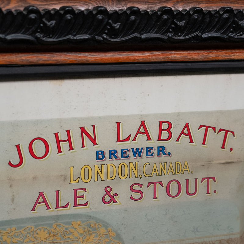 This sign is 1890's. Print is signed "ENTERED ACCORDING TO ACT OF PARLIMENT OF CANADA IN THE YEAR 1894 BY JOHN LABATT IN THE DEPARTMENT OF AGRICULTURE". Poster lists their achievements of 10 gold, silver and bronze medals & 11 diplomas awarded at the Worlds Exhibitions.