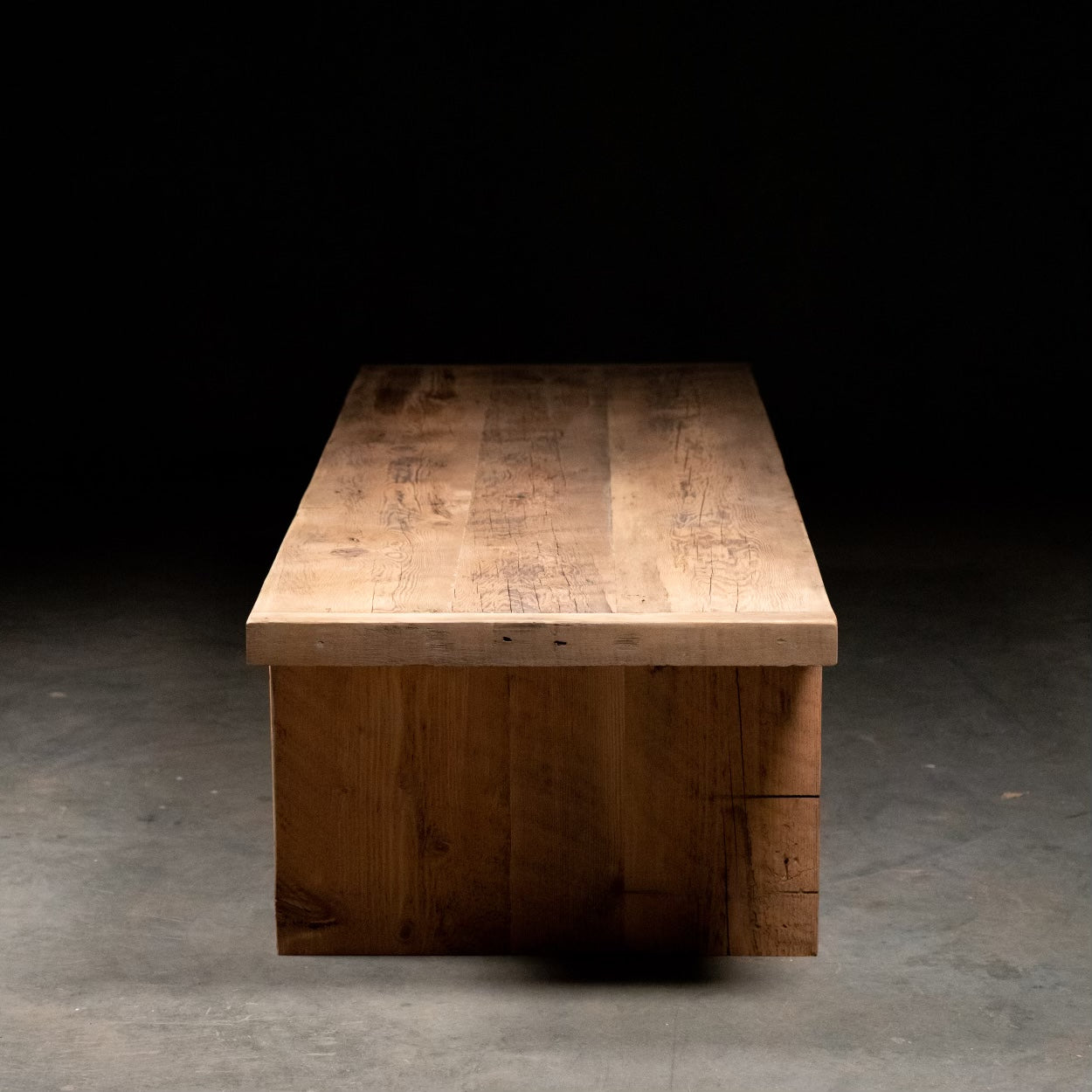Custom done in house using various width in hand selected materials gives this simple rustic coffee table that contemporary vibe in a natural organic raw state.. get it. We don’t have build bulk.