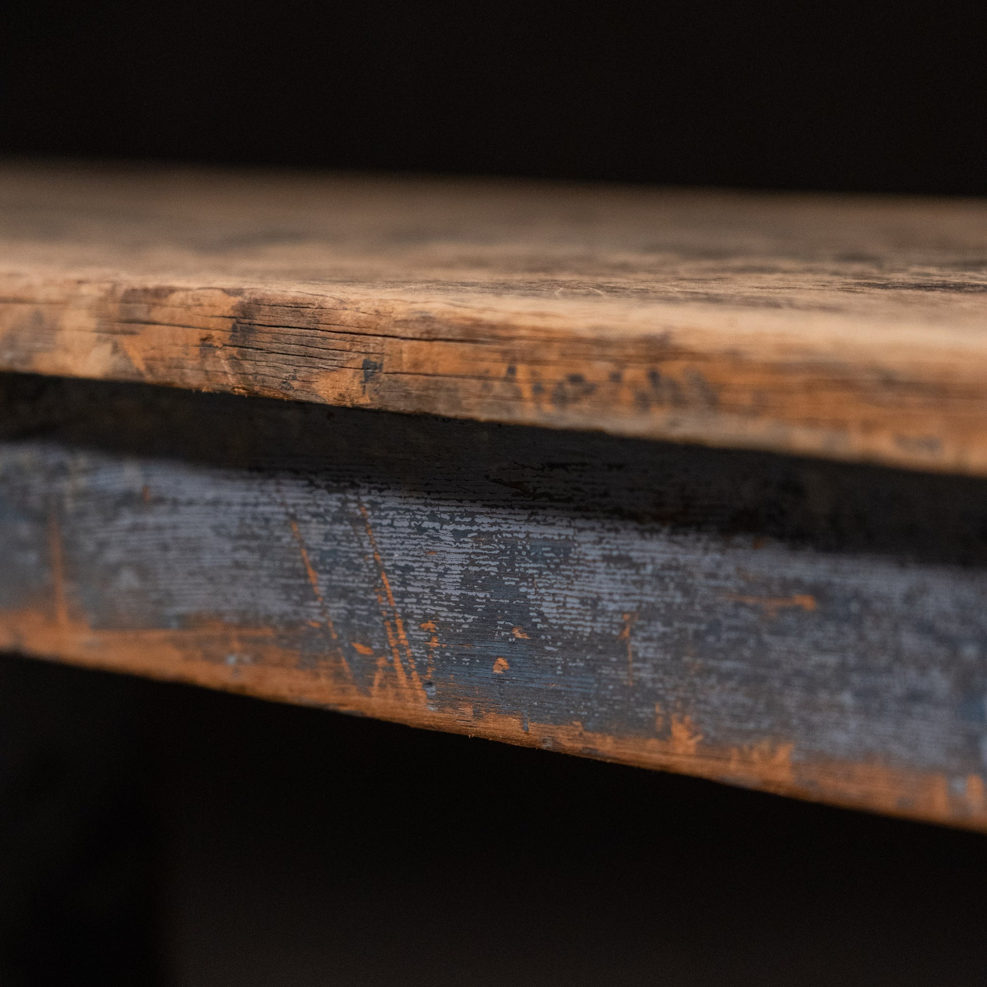 A rare bench with perfect age cracked dry surface. A form not very commonly found in square nailed construction.
