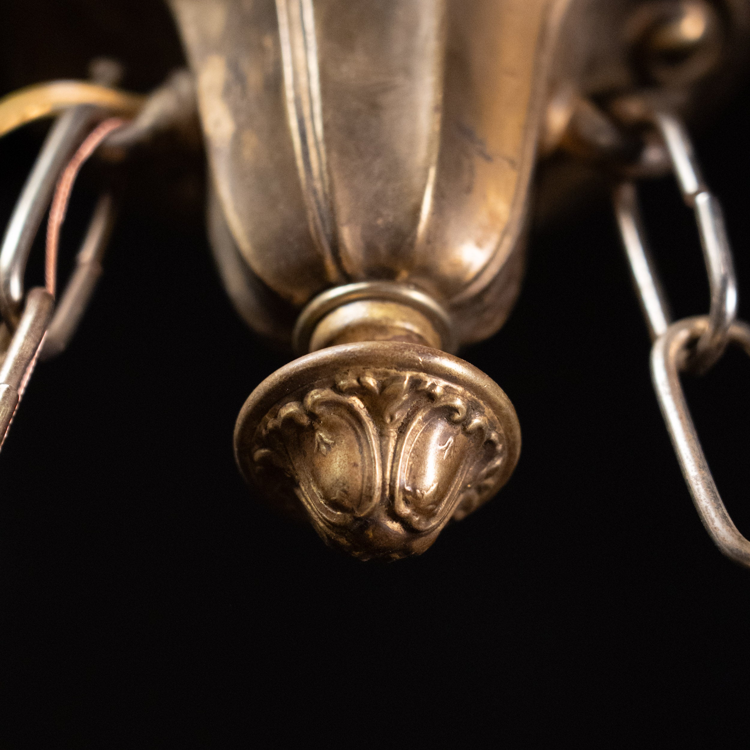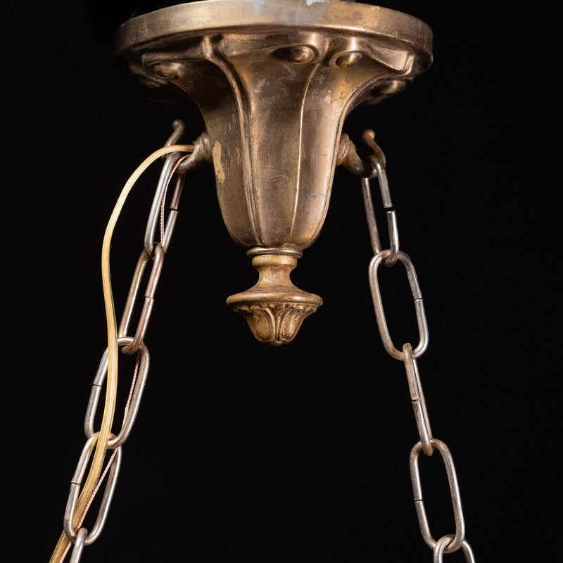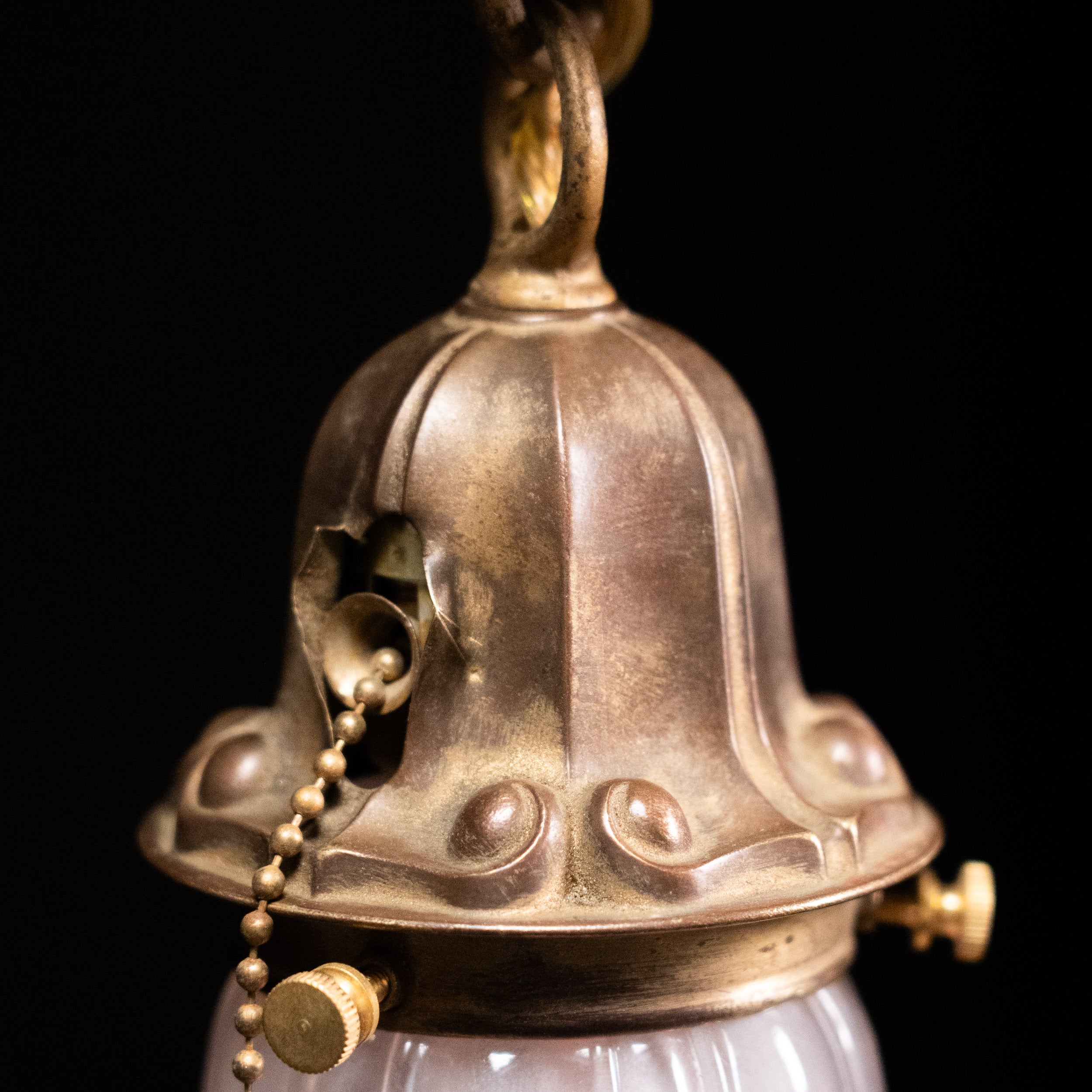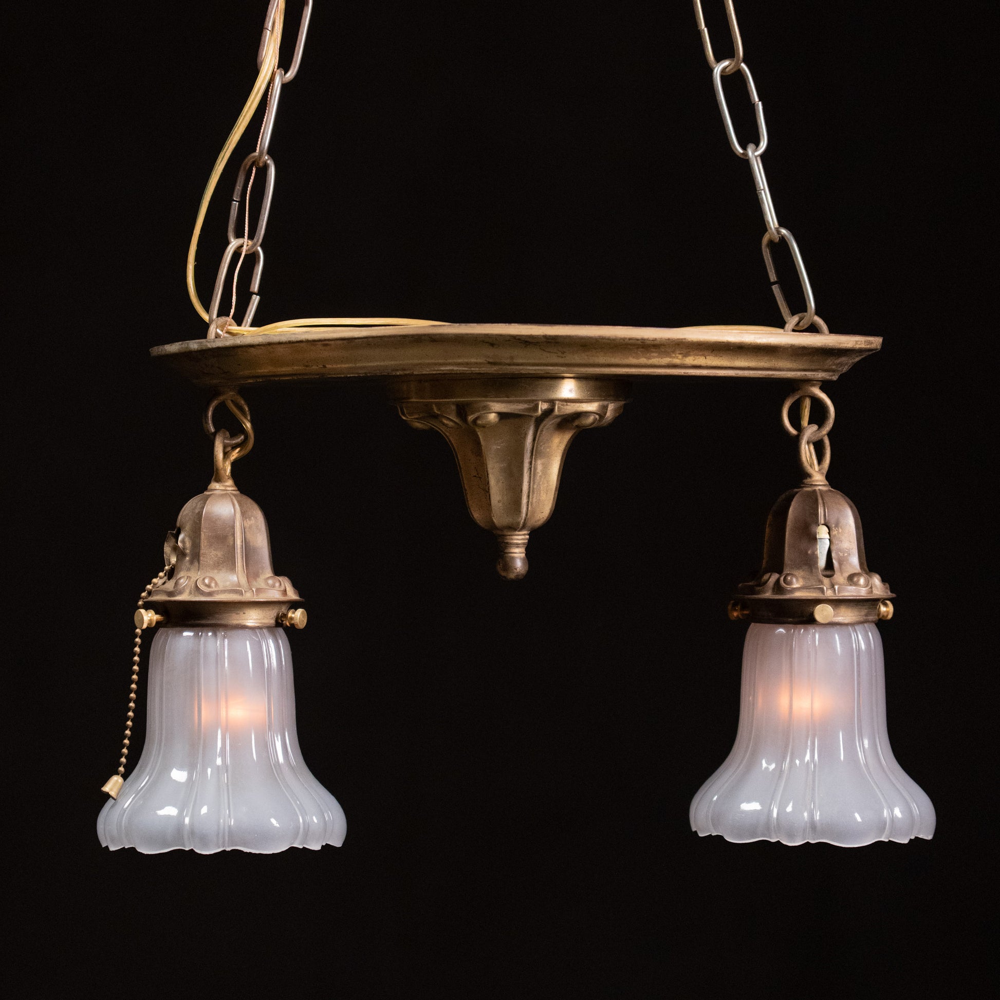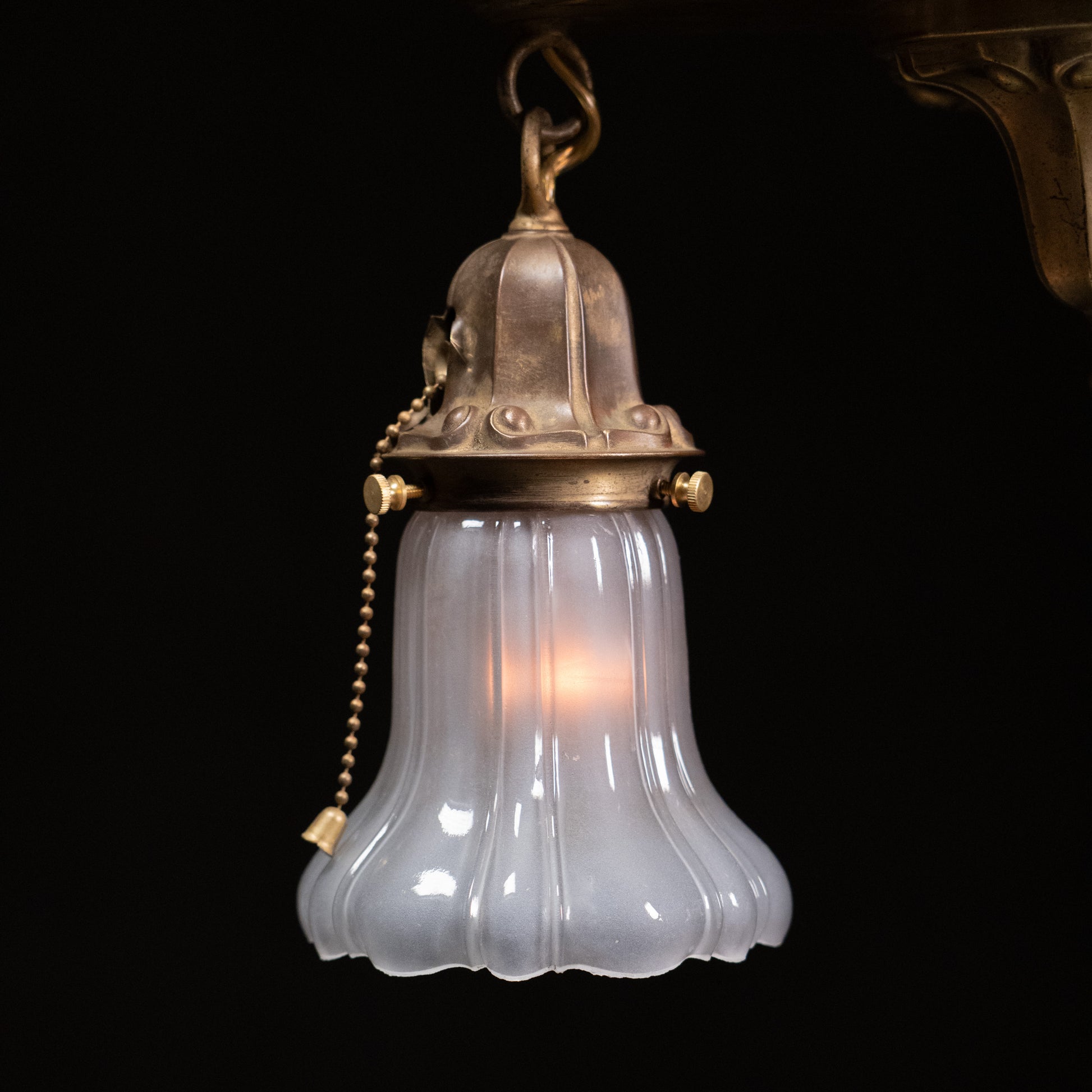 A beautiful pressed brass light fixture, likely American made and in excellent condition. This has been rewired and fully refurbished accenting the details of this light.