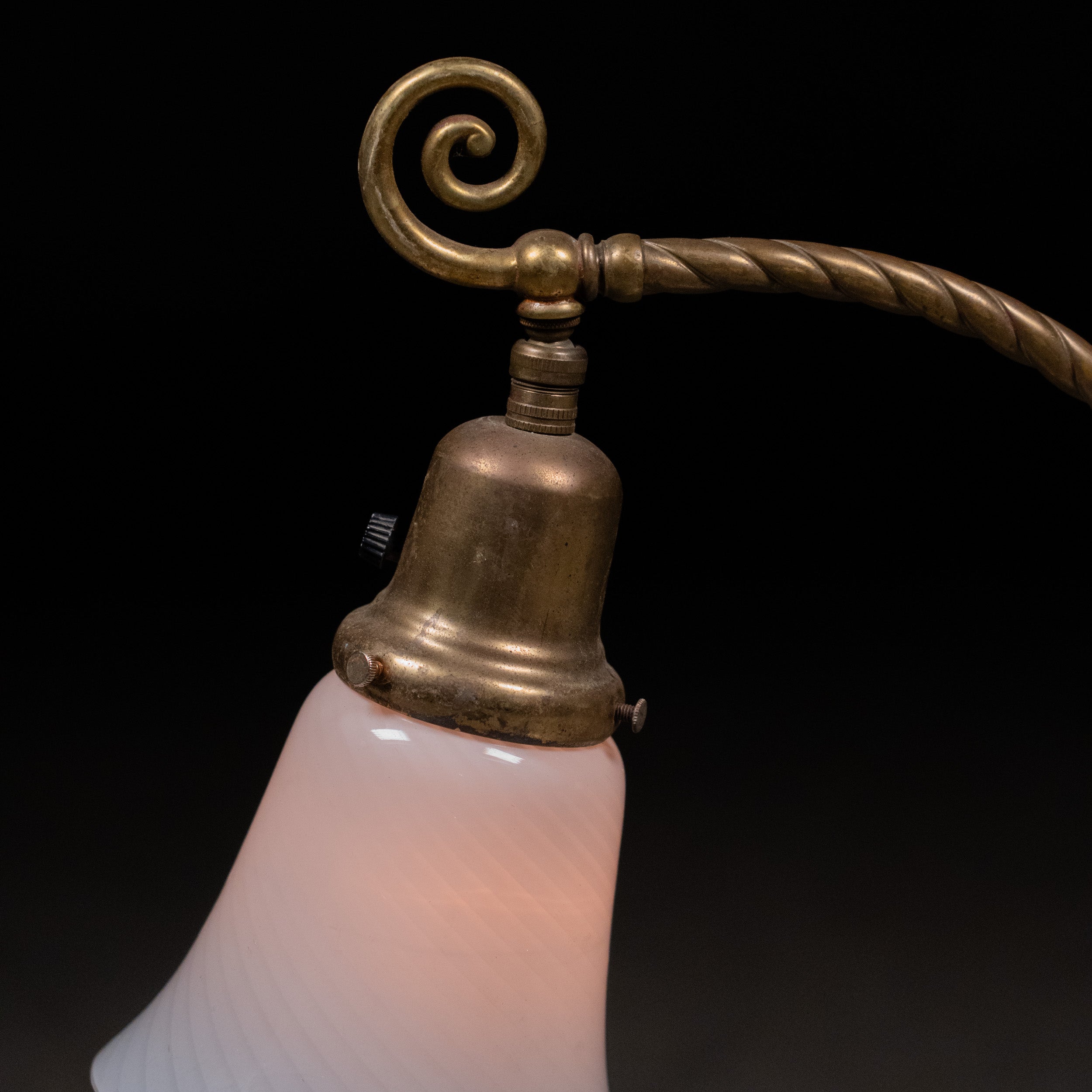1920 Art Nouveau Brass Table Lamp with Murano Shade