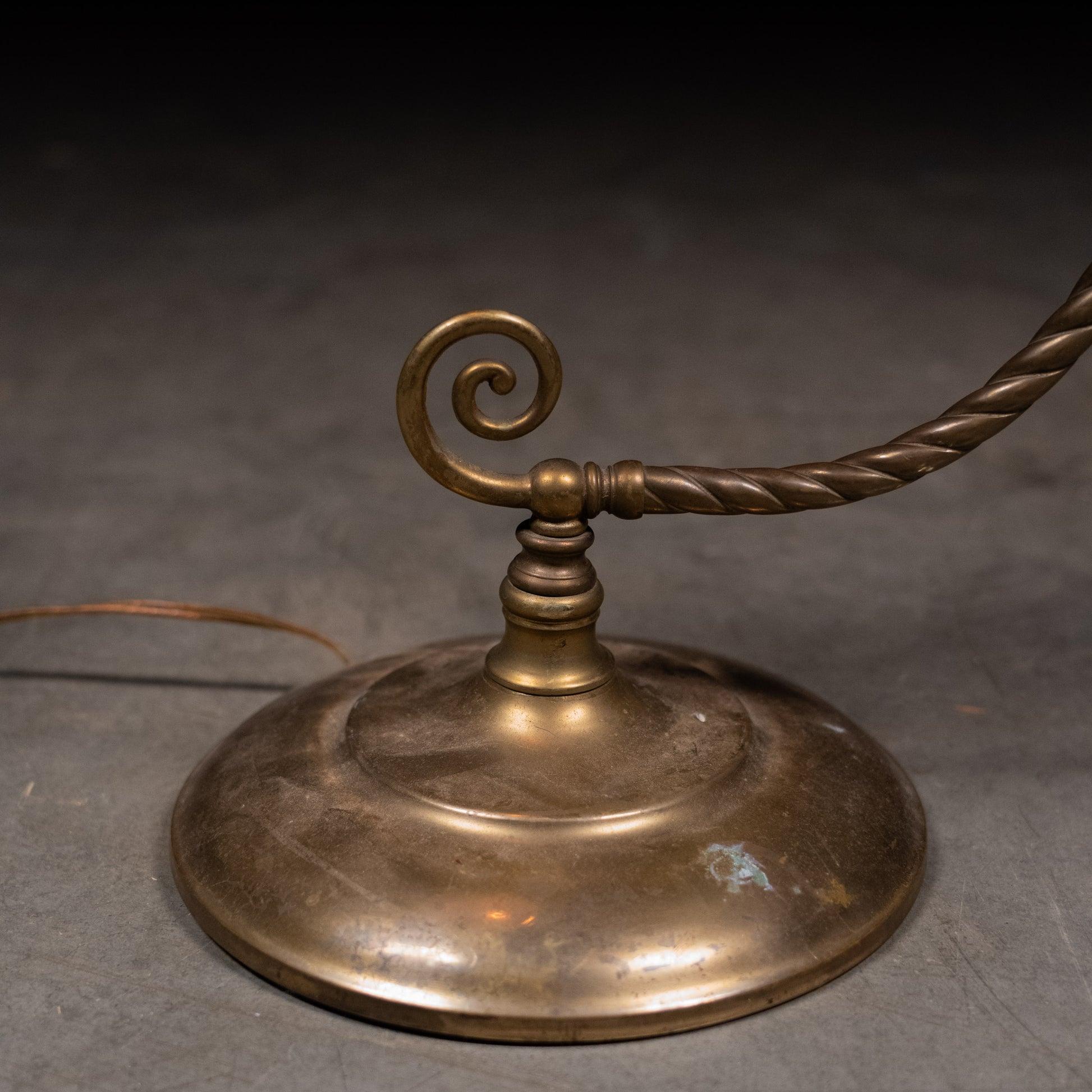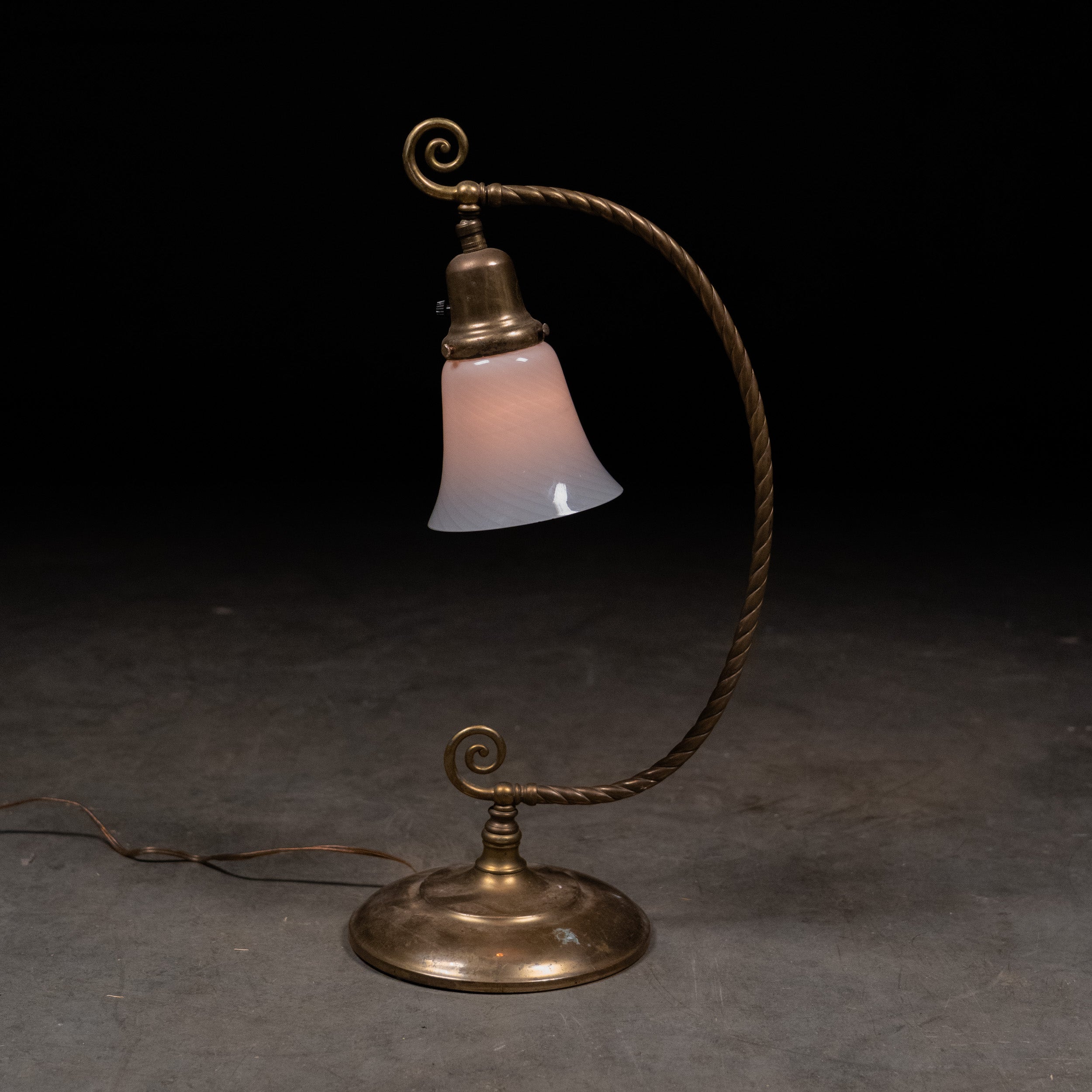 A fine example of solid brass lamp, with decorative scroll details coupled with a Murano quality shade.