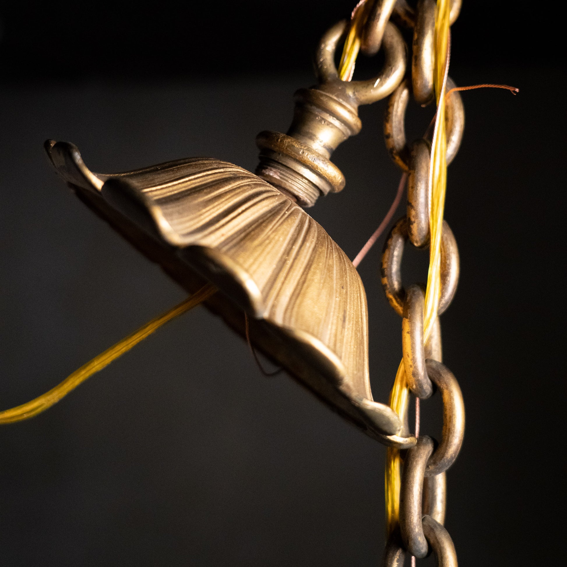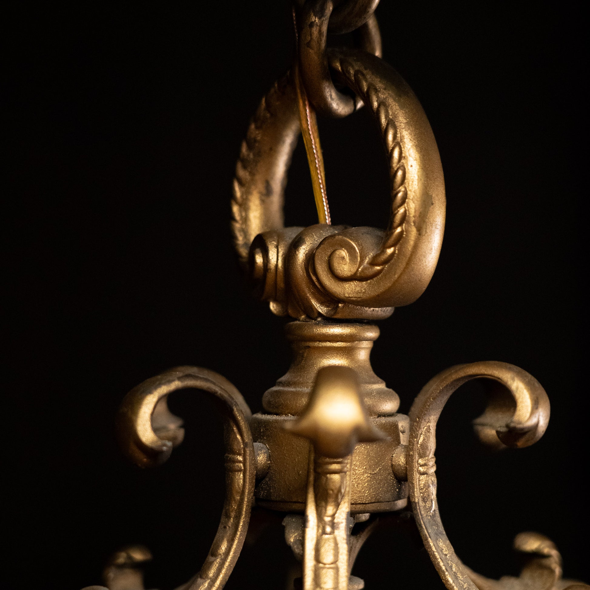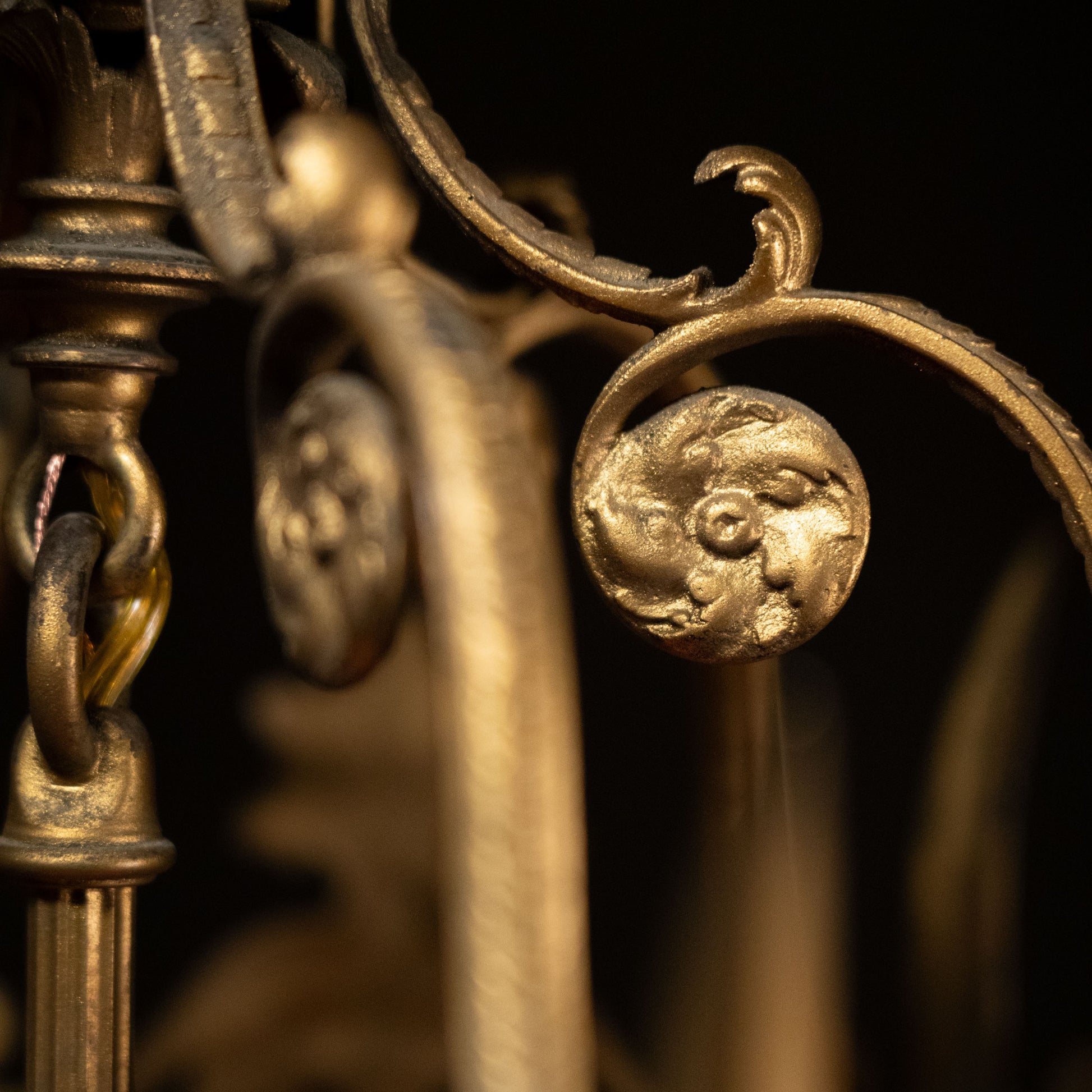 Very high quality light fixture in a gothic style lantern with incredible details. This was found in a bank building in Chicago.