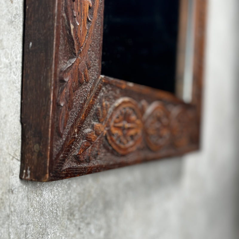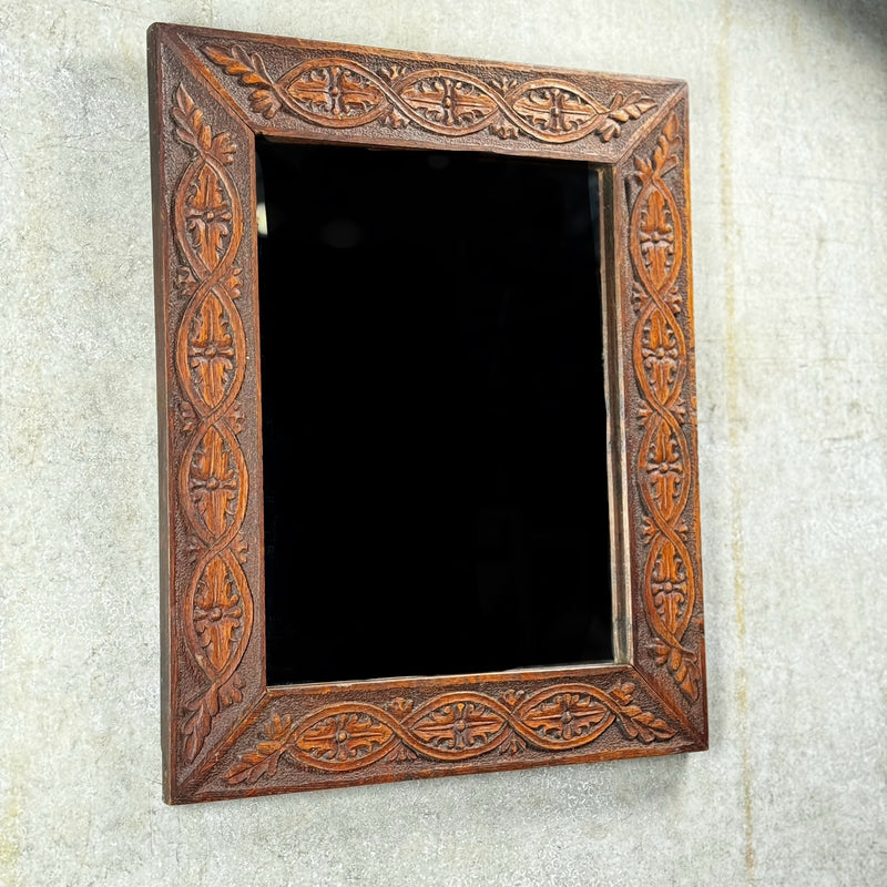 1920 Canadian Prairies Antique Carved Wood Wall Mirror